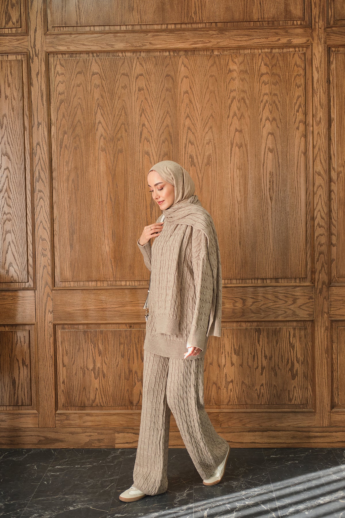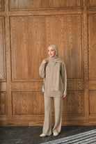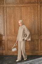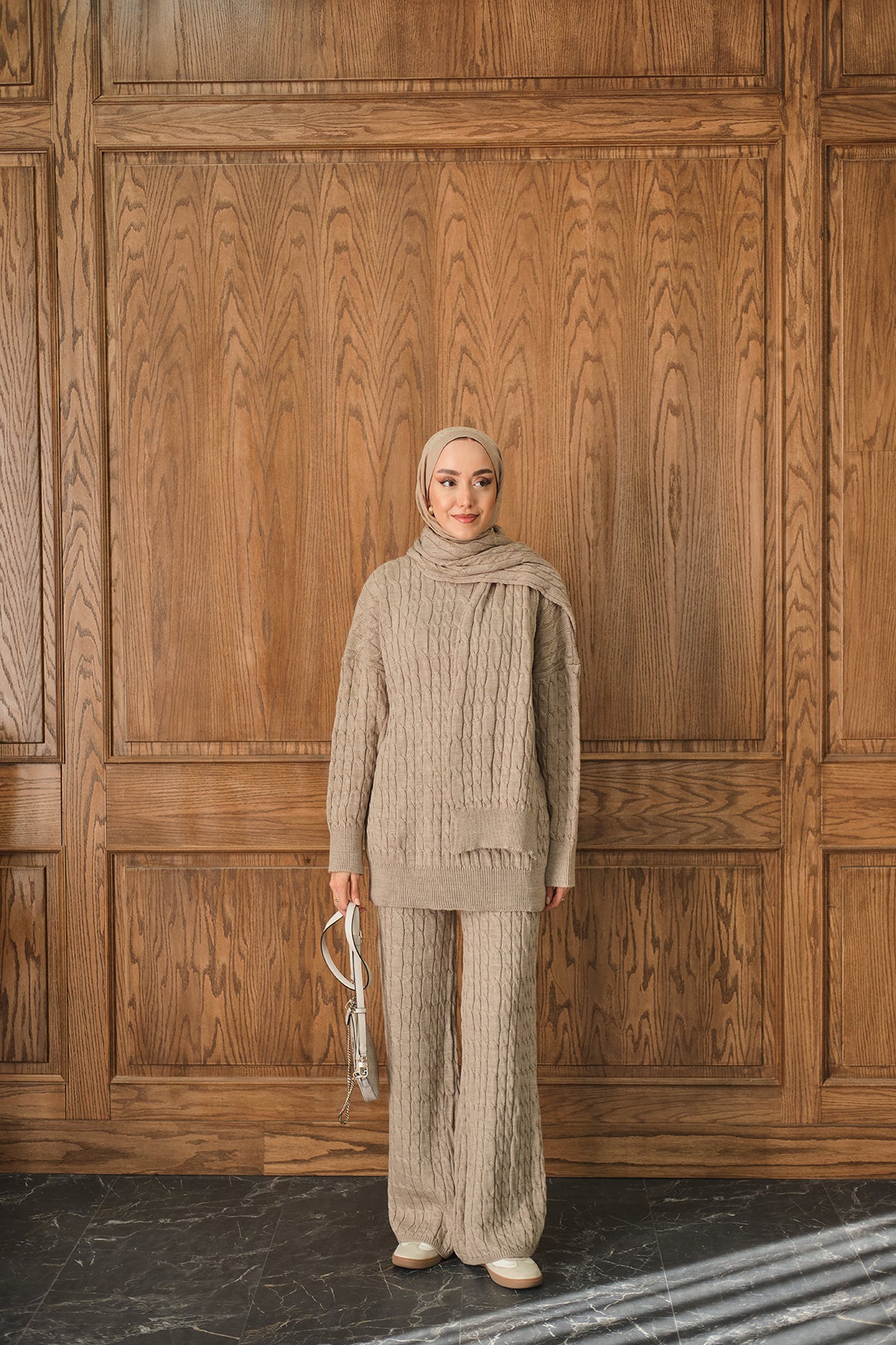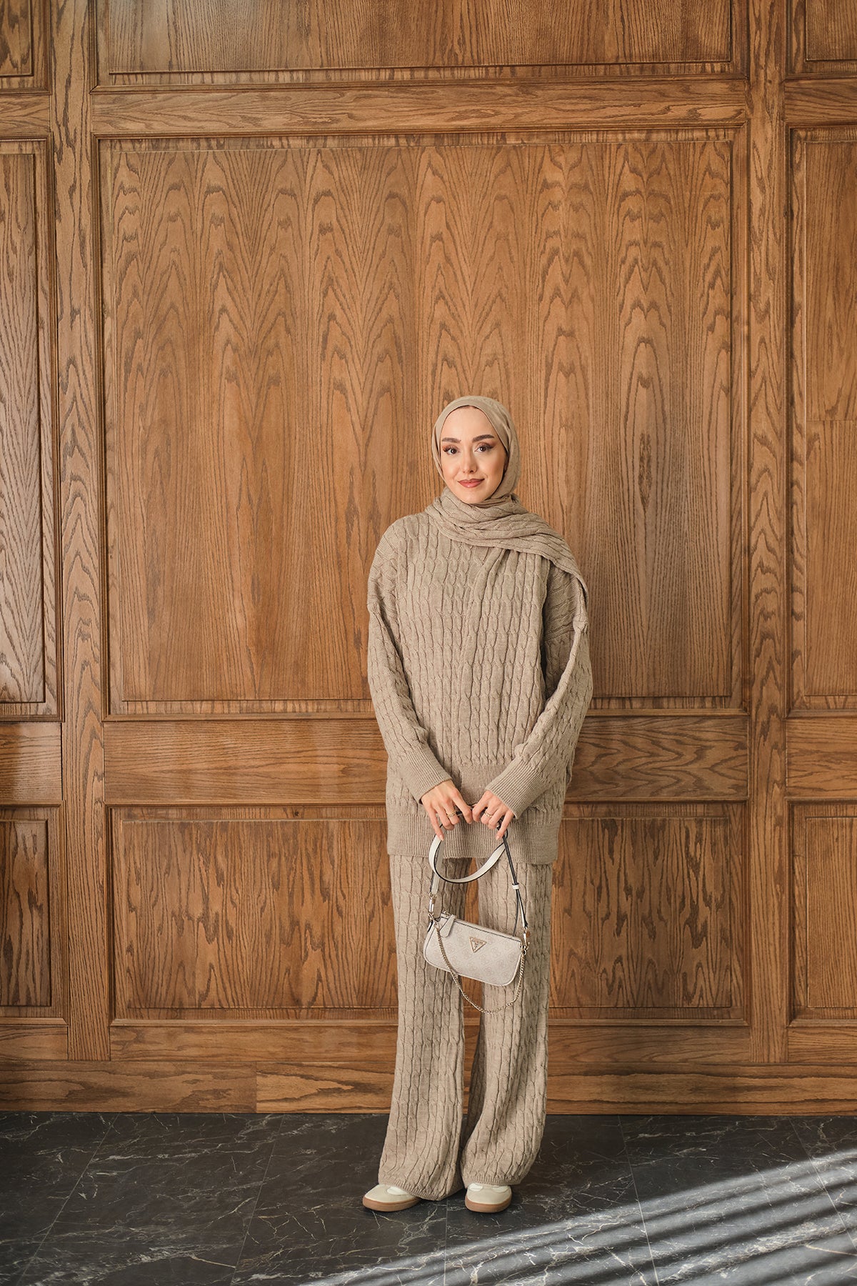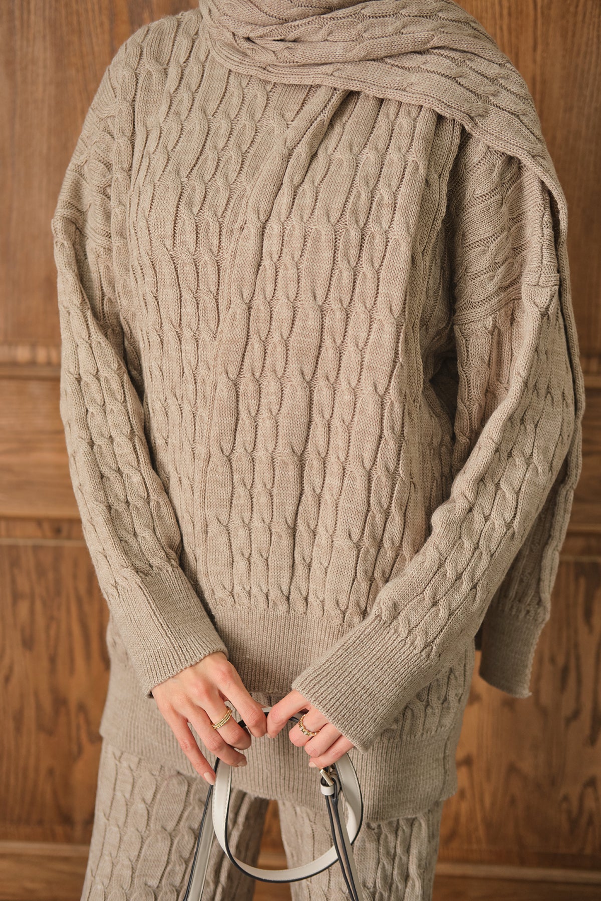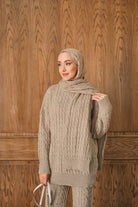 Atkı Detaylı Örgü Takım Vizon