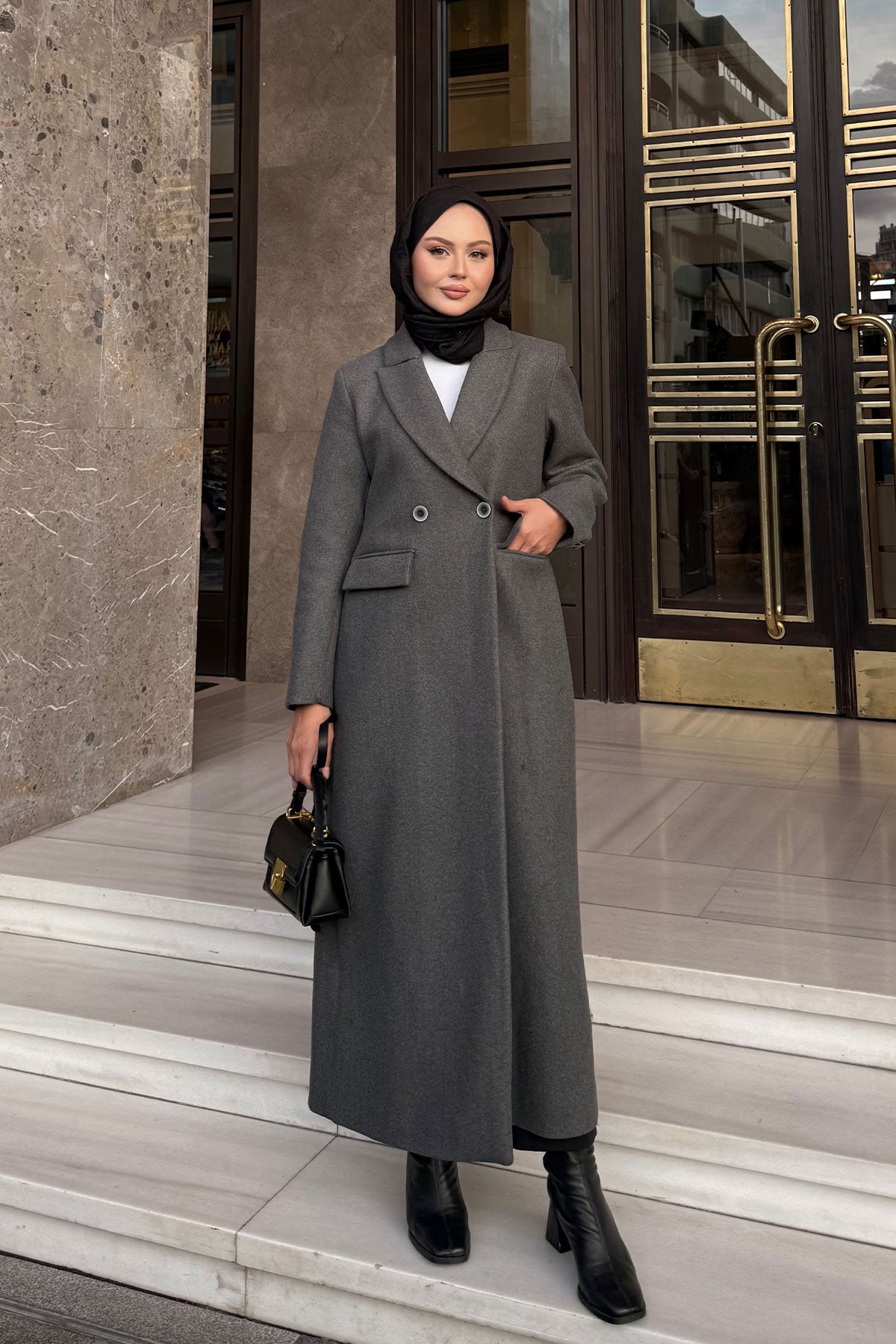 Back Button Detail Wool Coat – Anthracite
