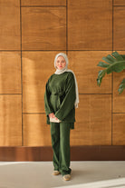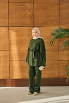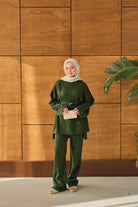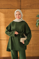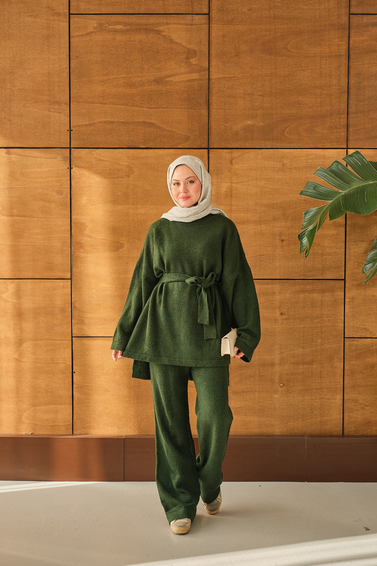 Bel Bağlamalı Triko Takım Zümrüt Yeşil