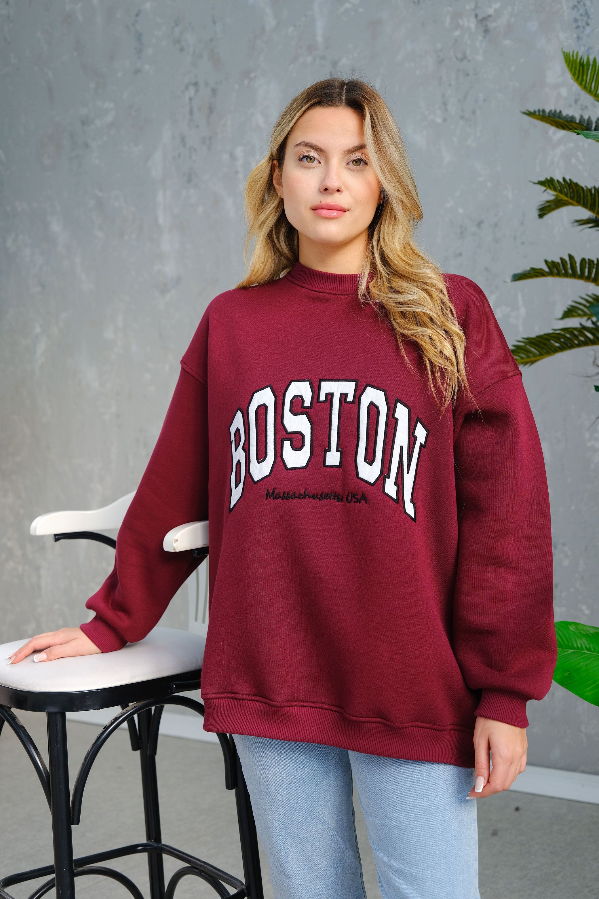 Boston Printed Sweatshirt in Burgundy