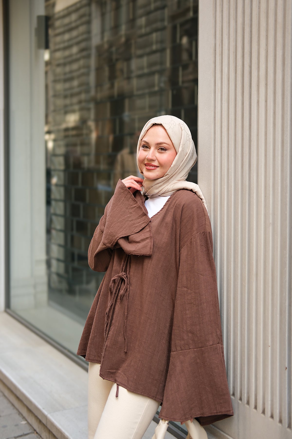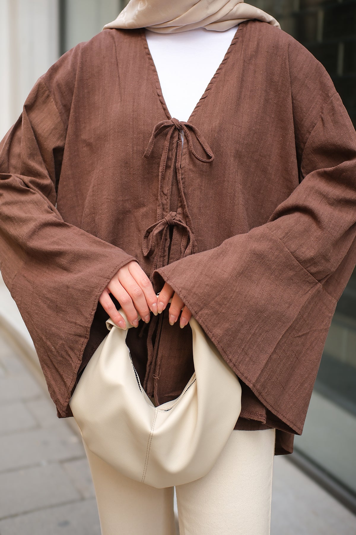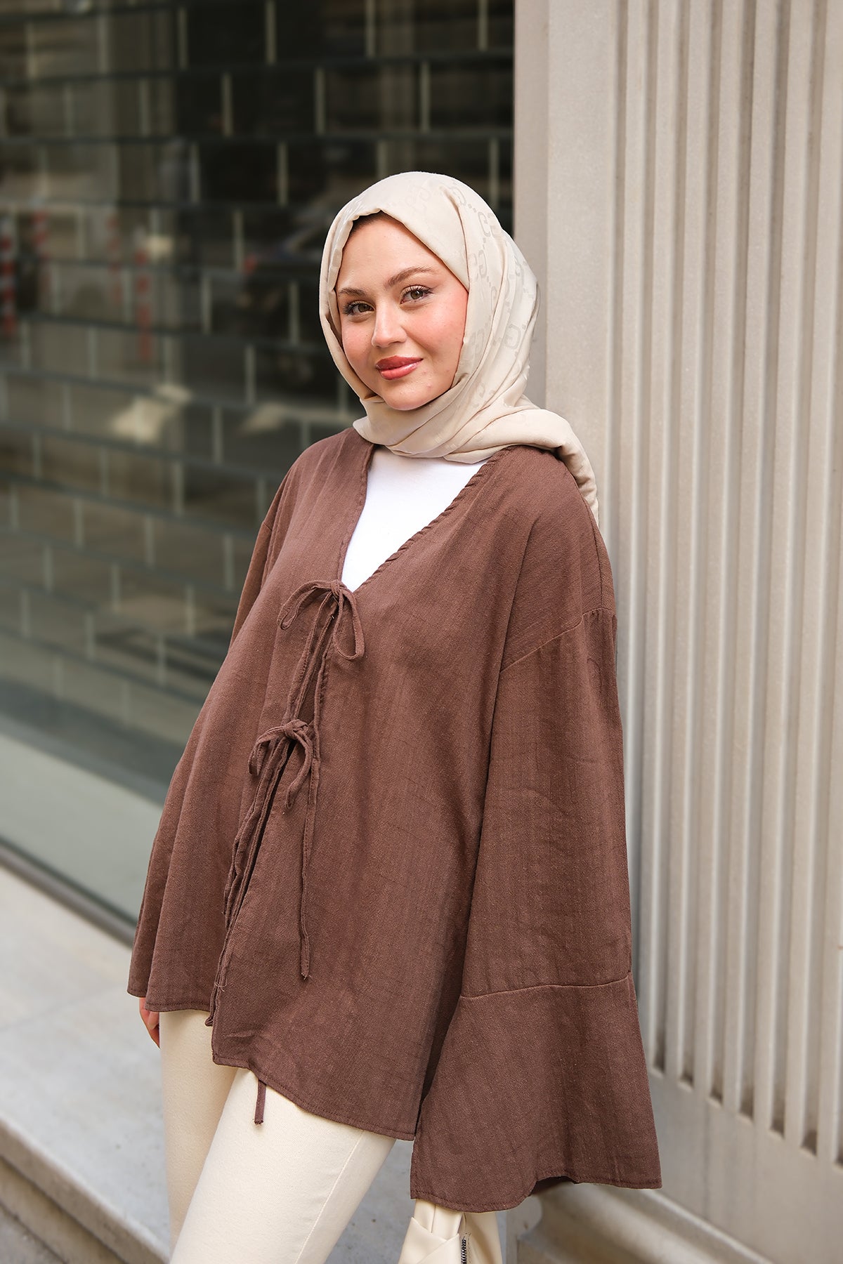 Brown Tie Cotton Shirt