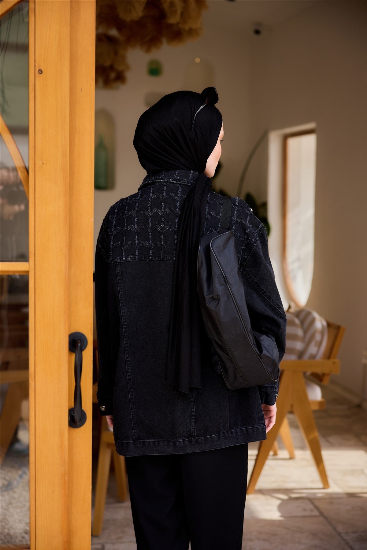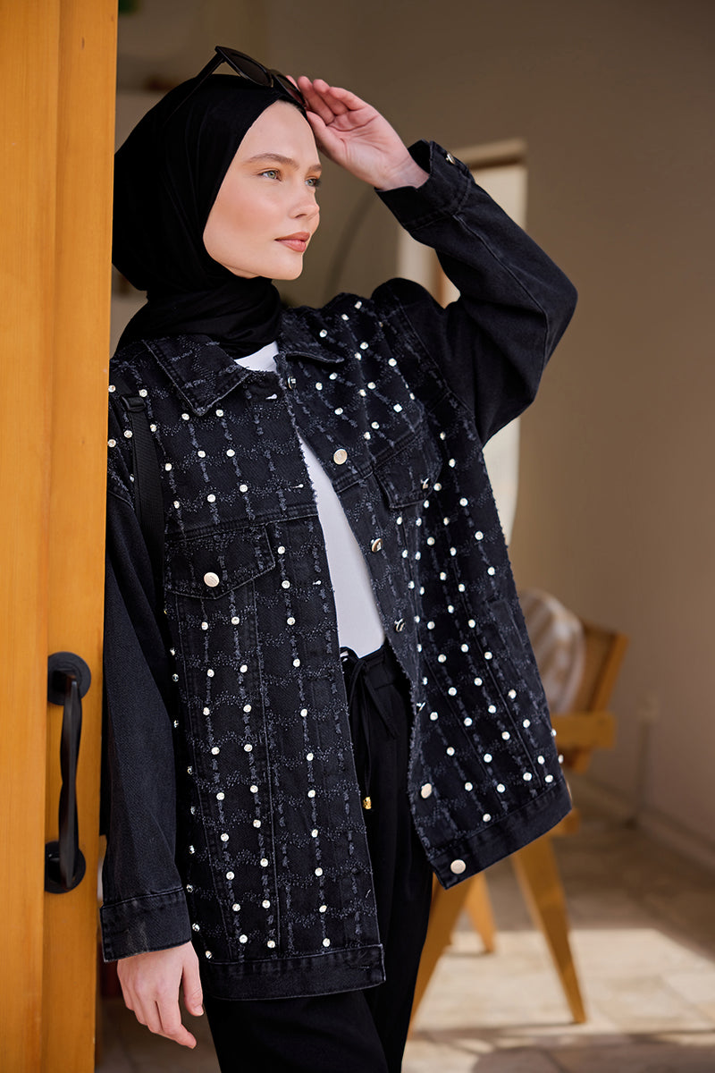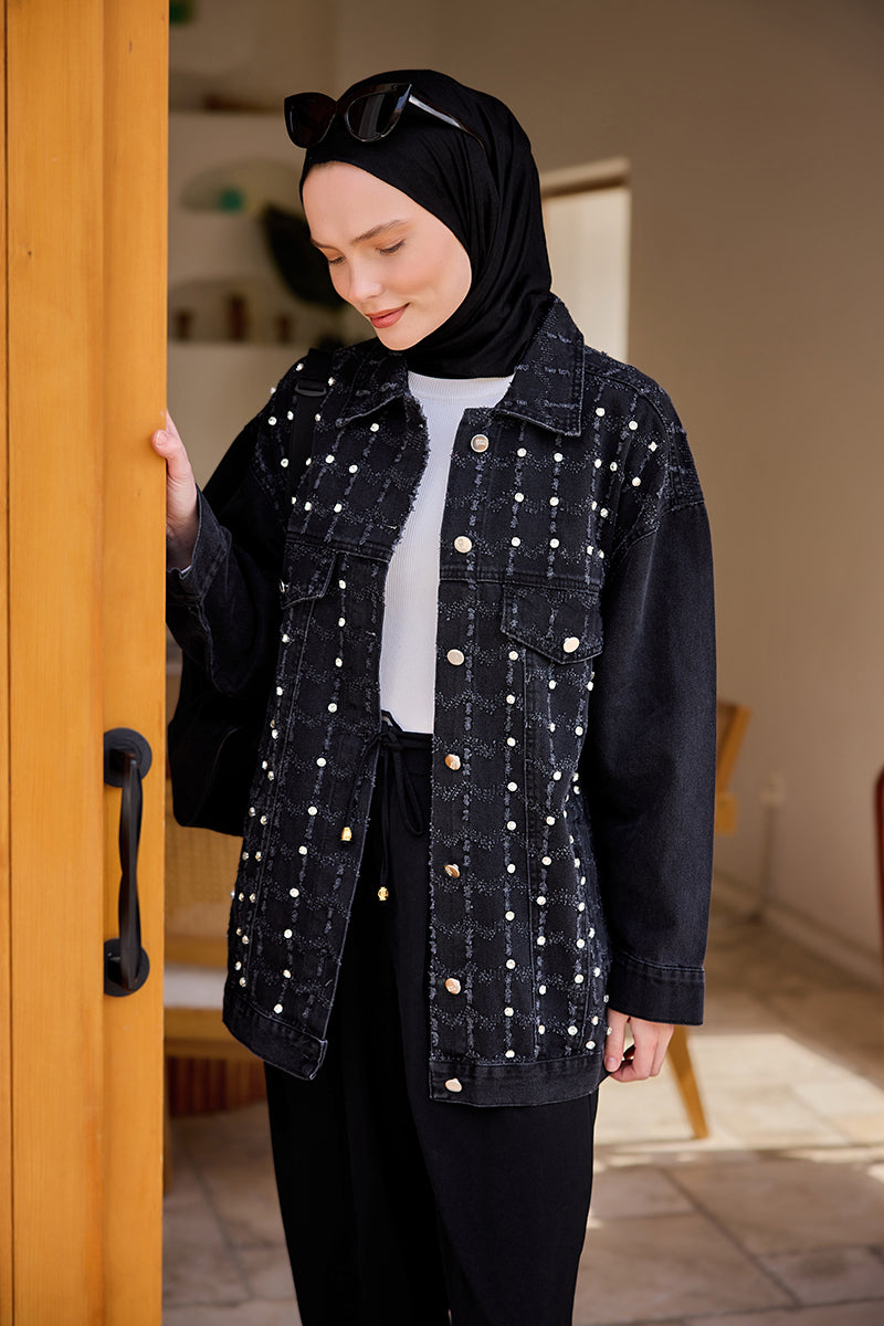 Burnout Square Pattern Jean Jacket Black