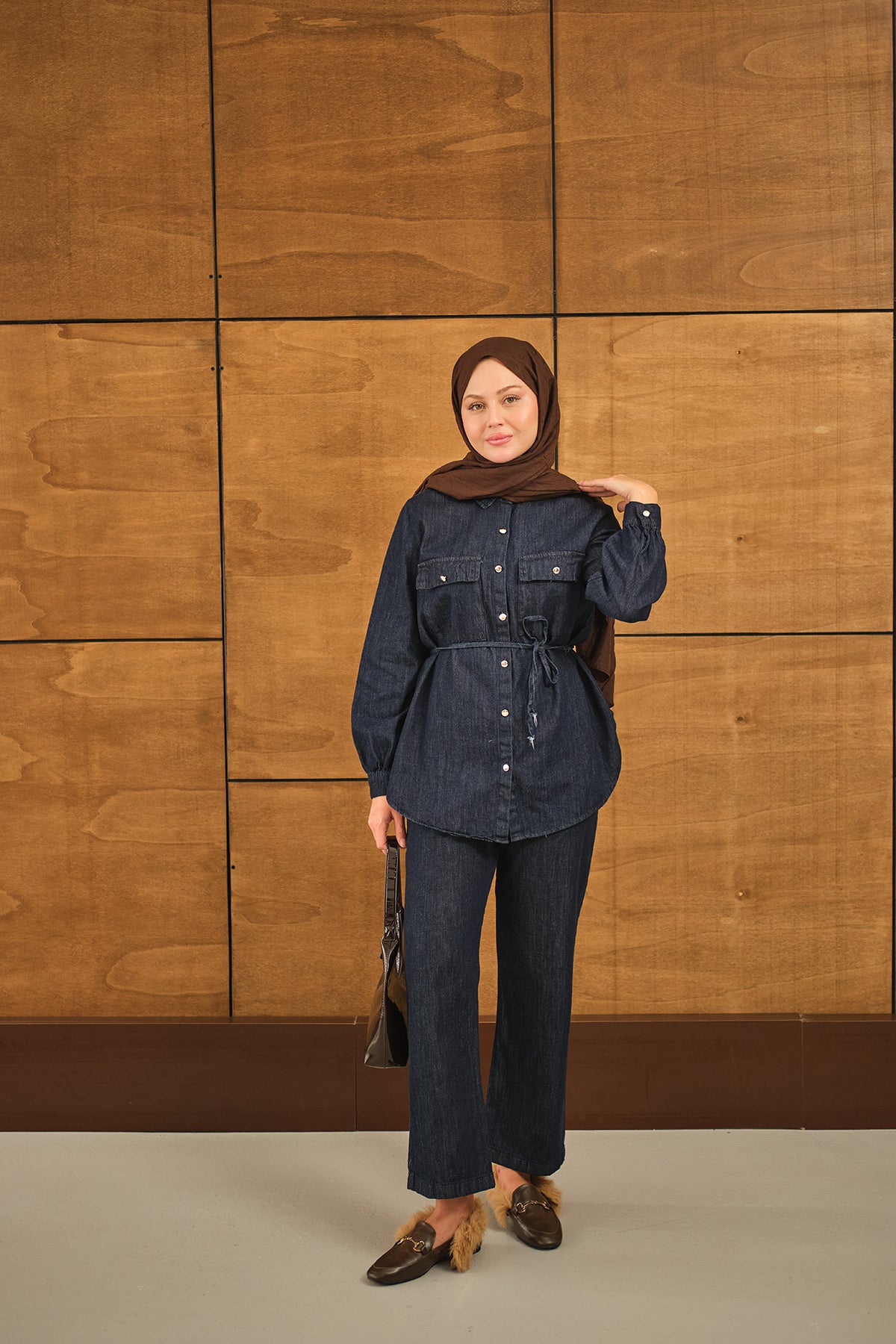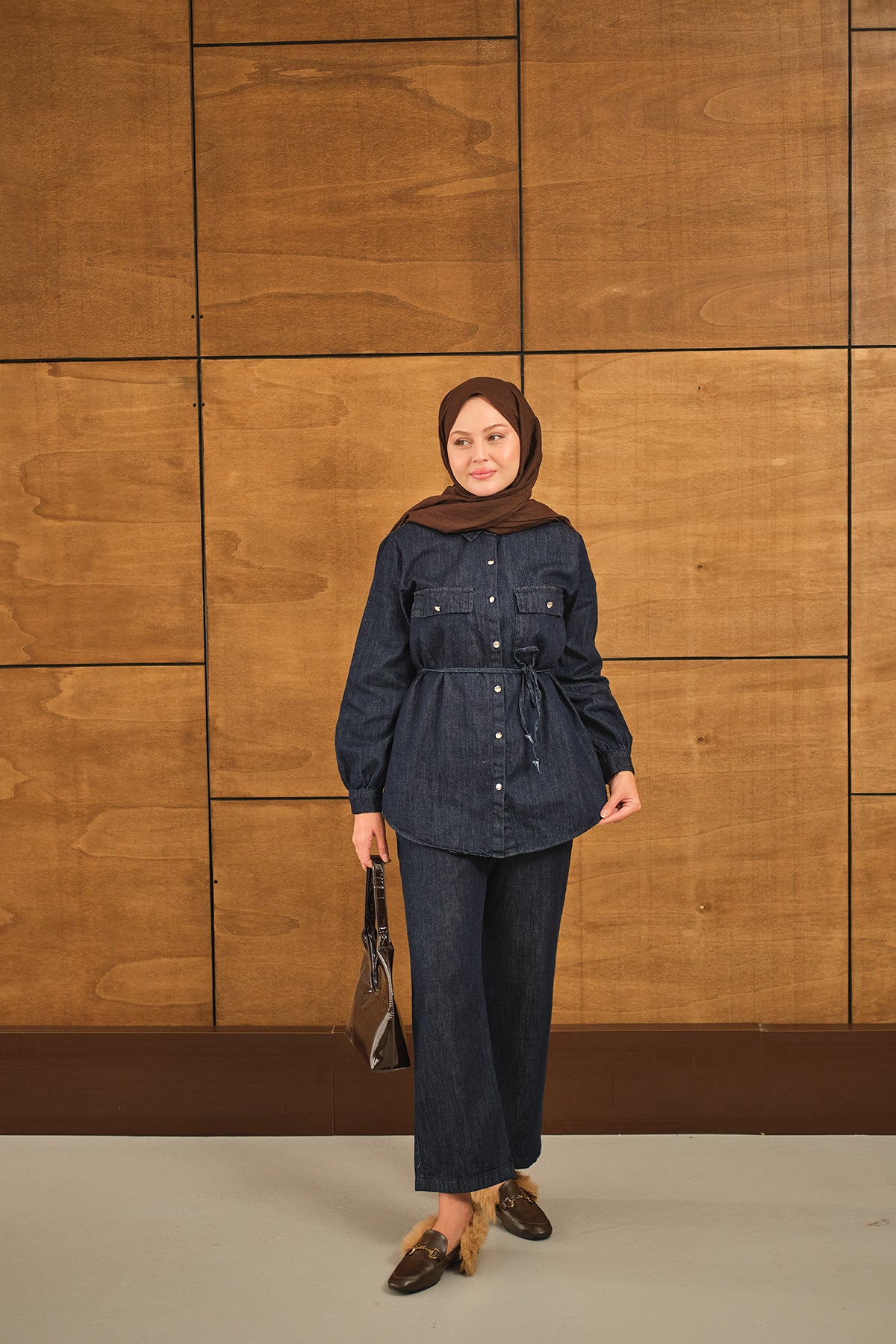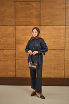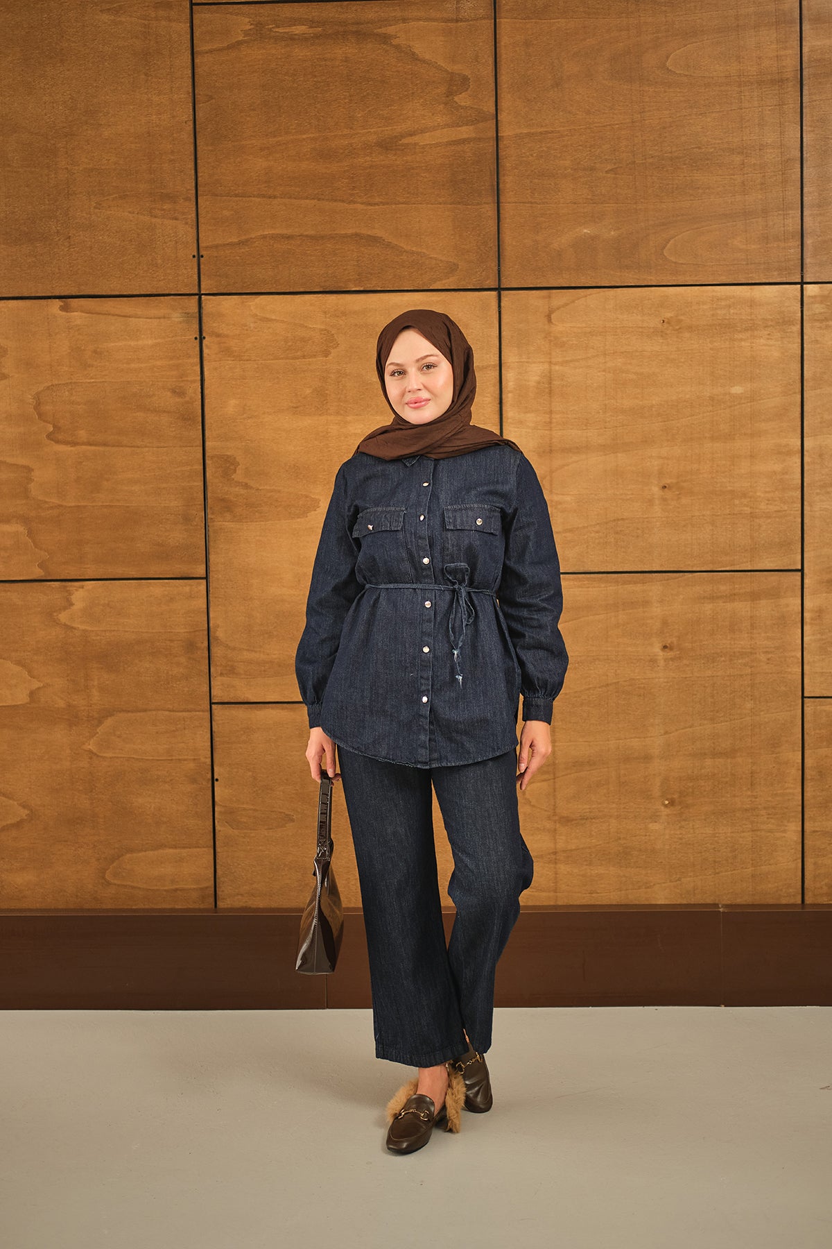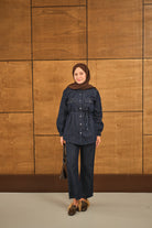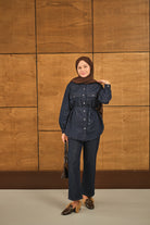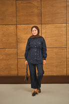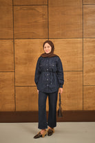 Çift Cepli Bel Bağlamalı Kot Takım Lacivert