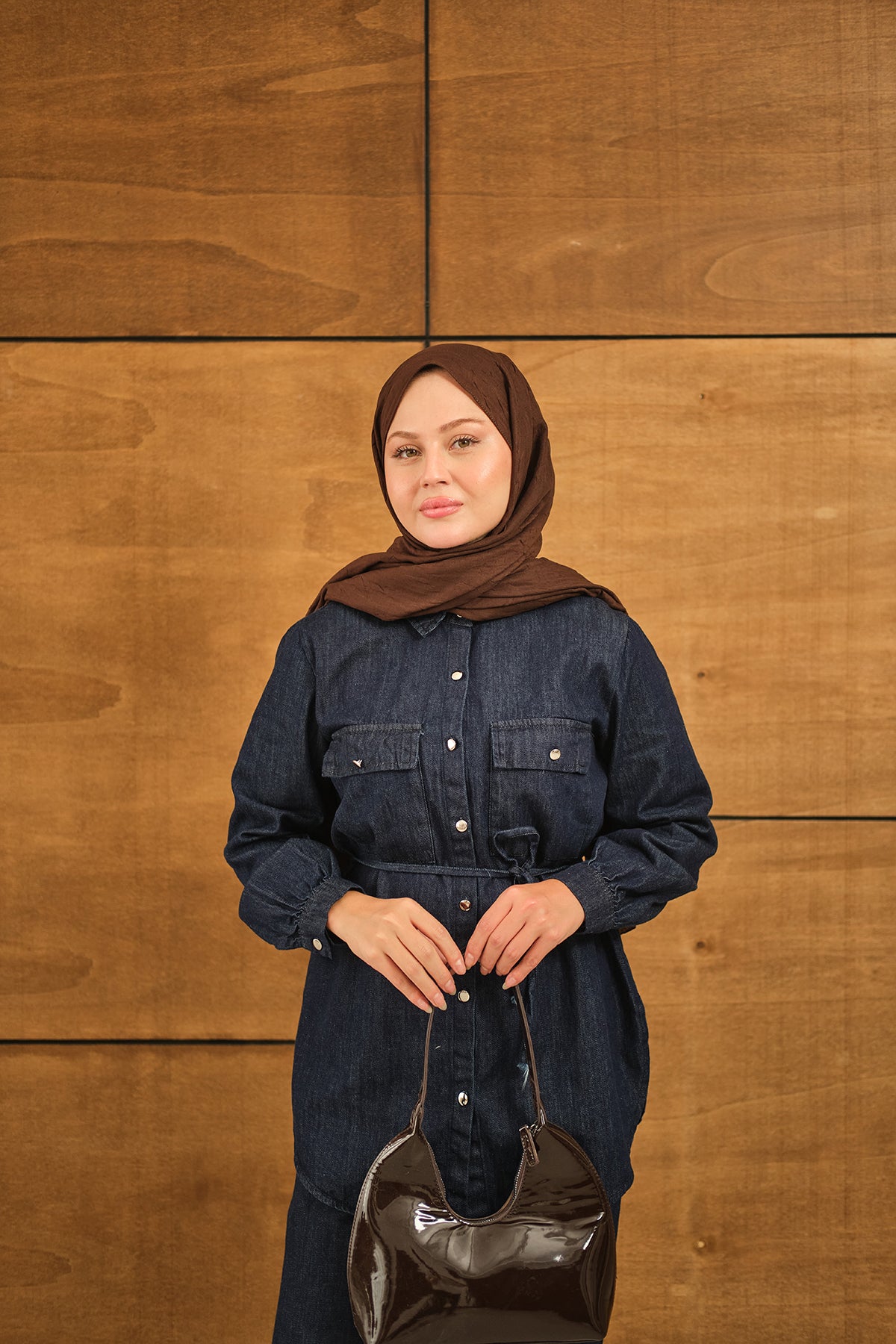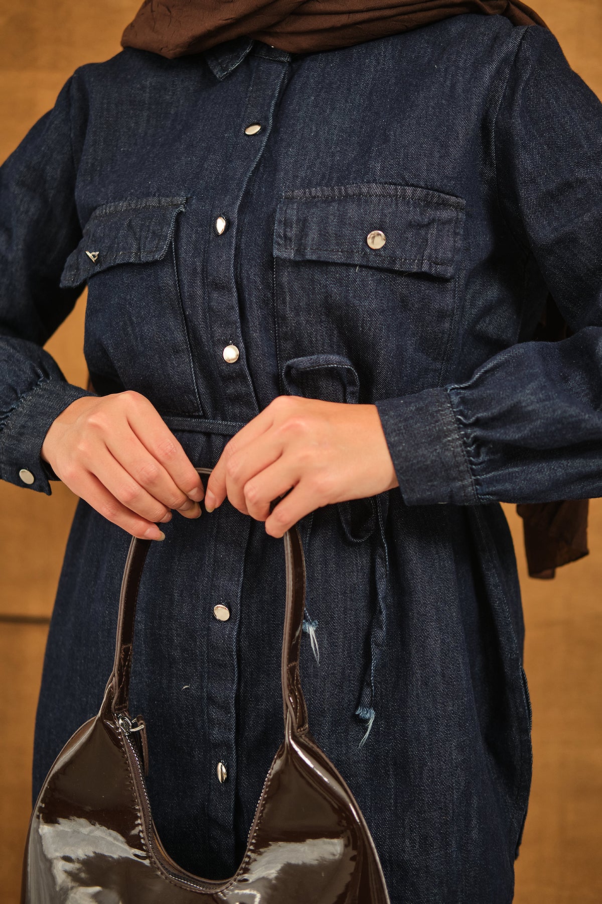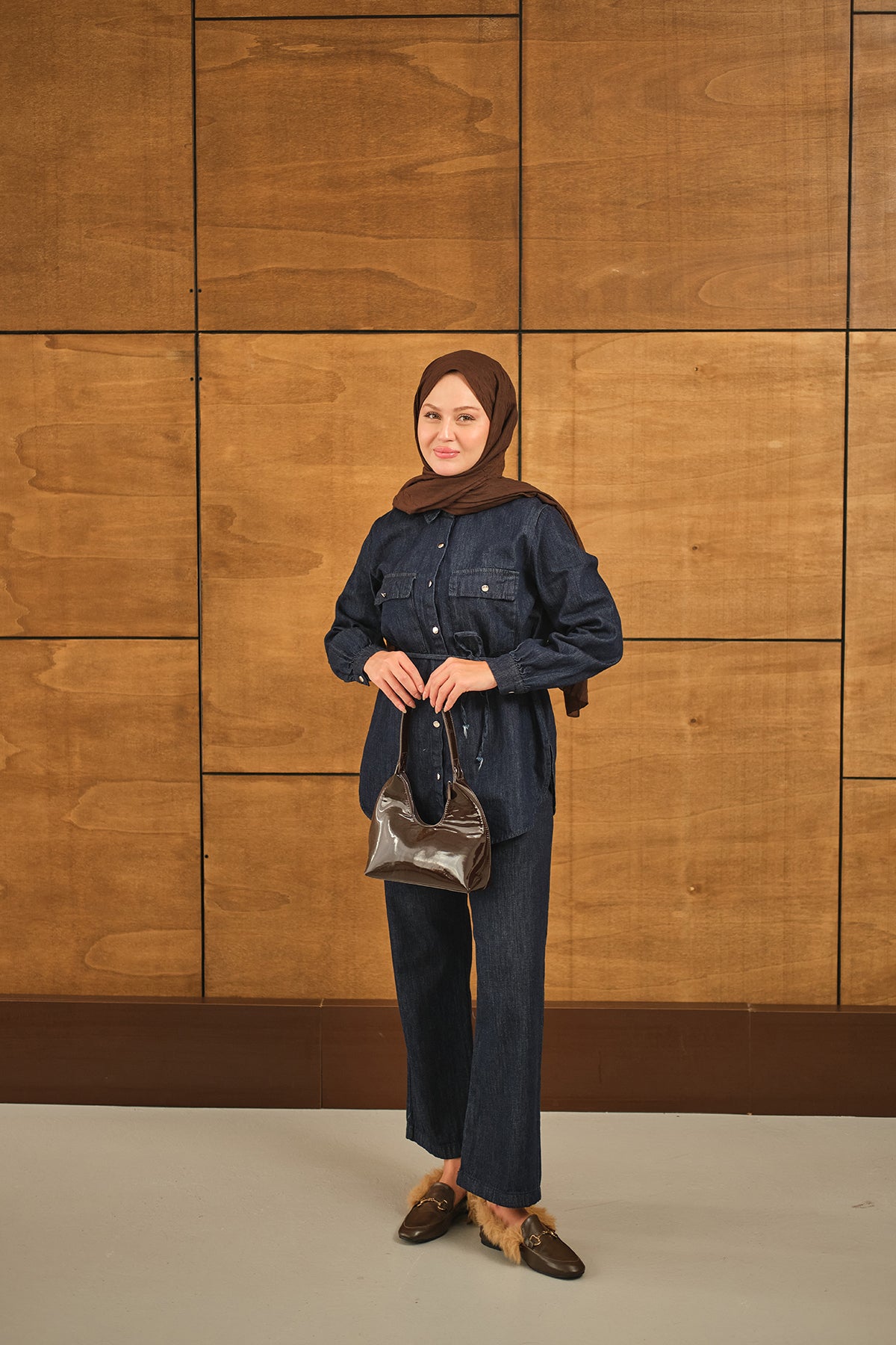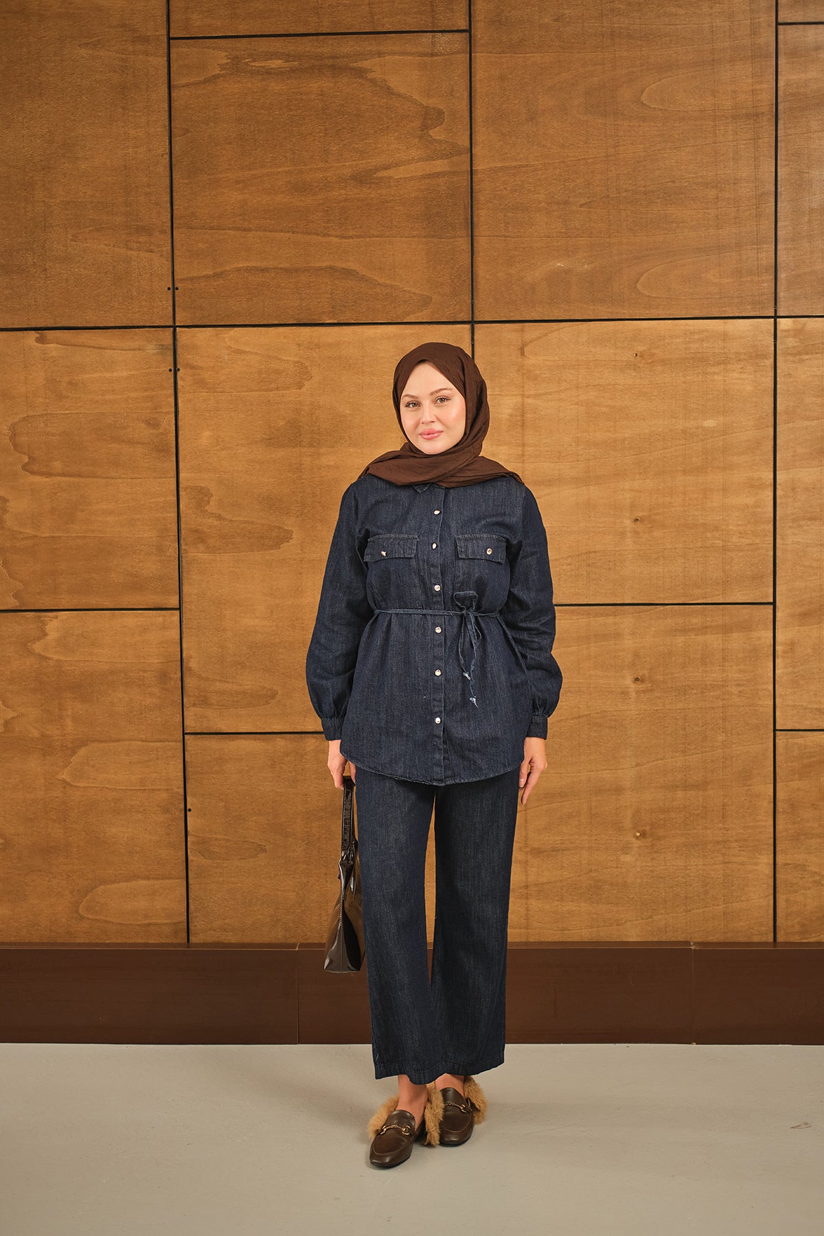Çift Cepli Bel Bağlamalı Kot Takım Lacivert