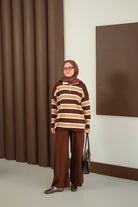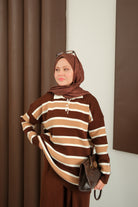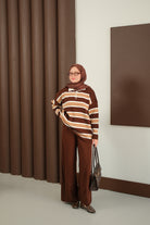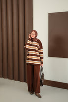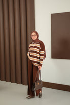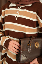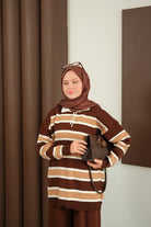 Çizgi Düğme Detay Takım Kahverengi