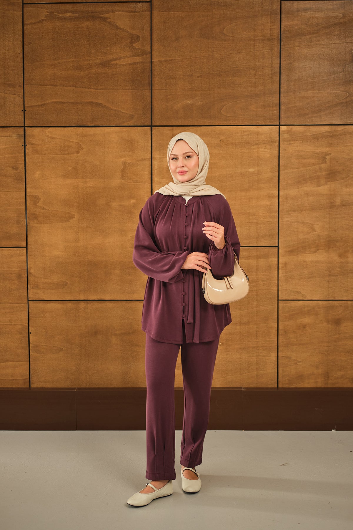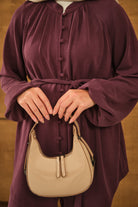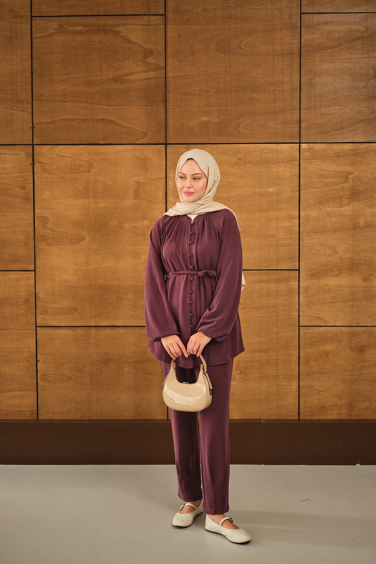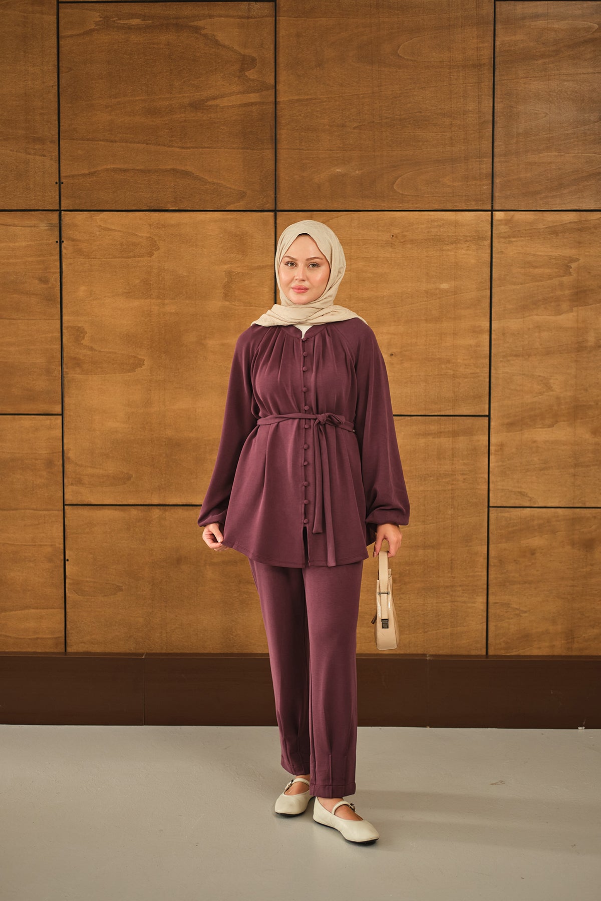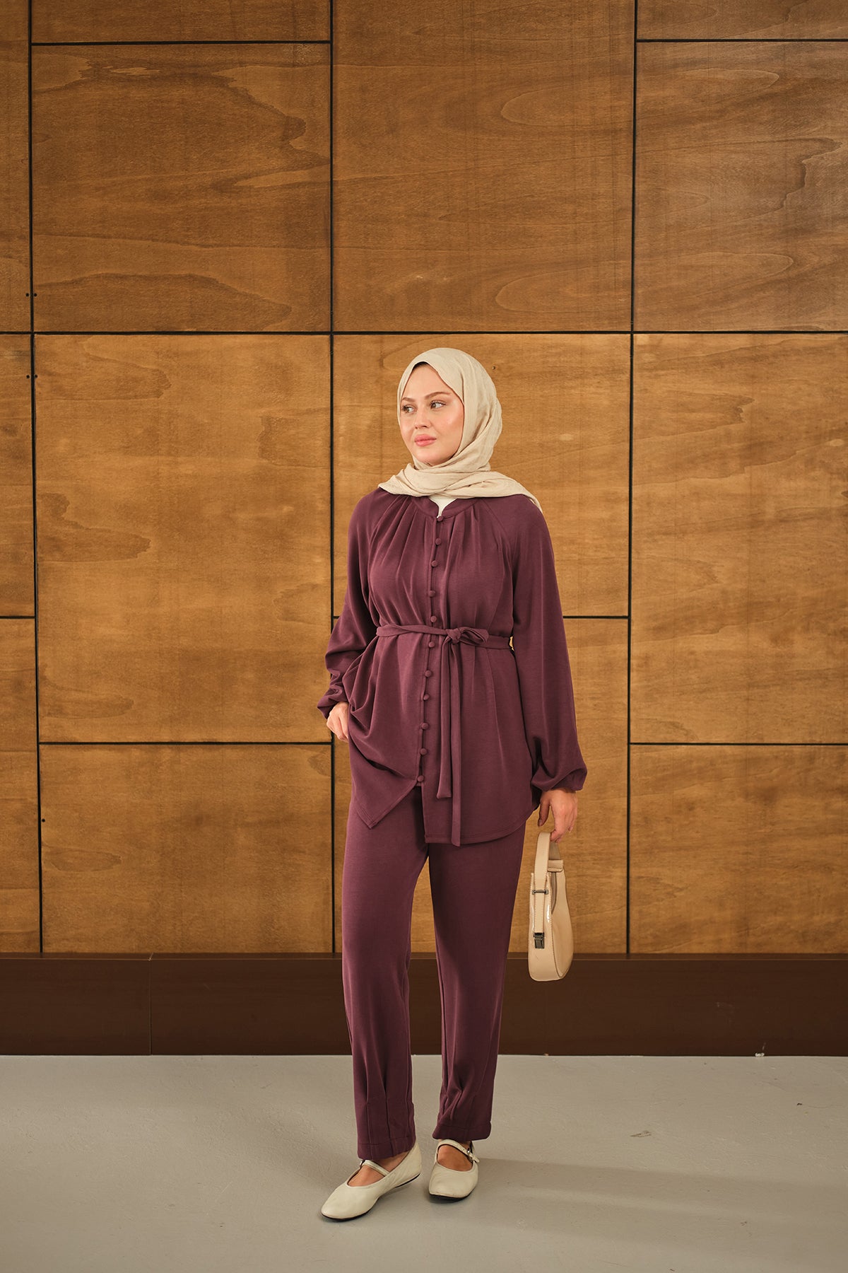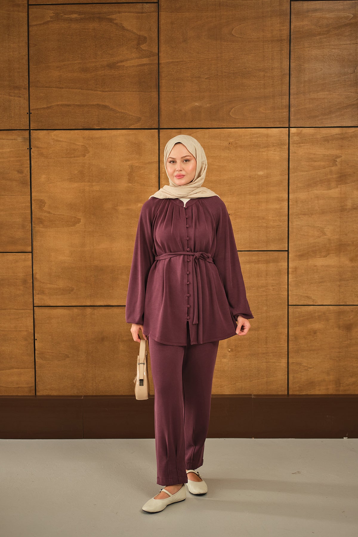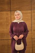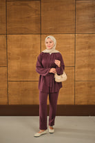 Düğme Detaylı Bel Bağlamalı Takım Mürdüm