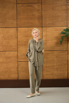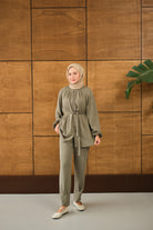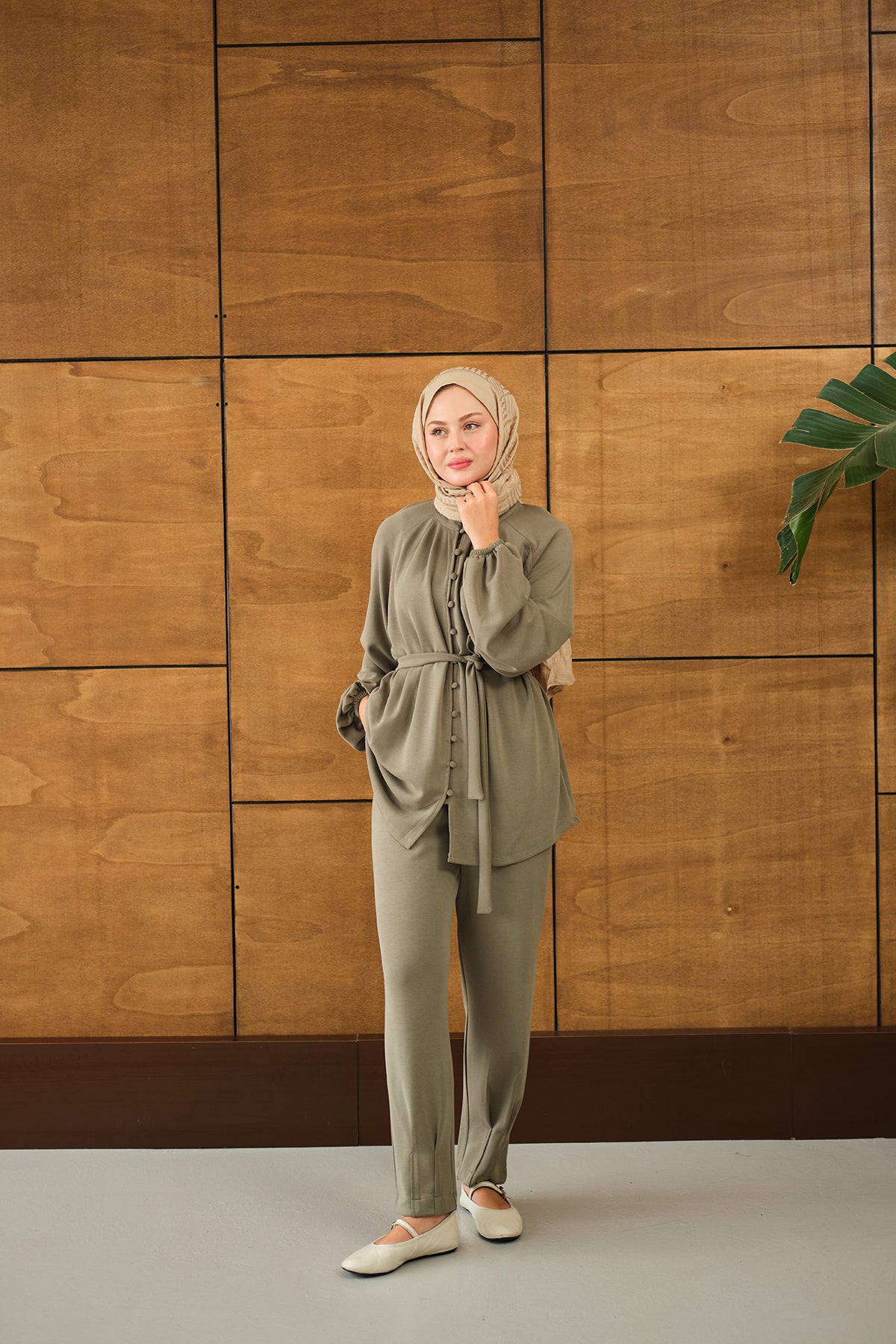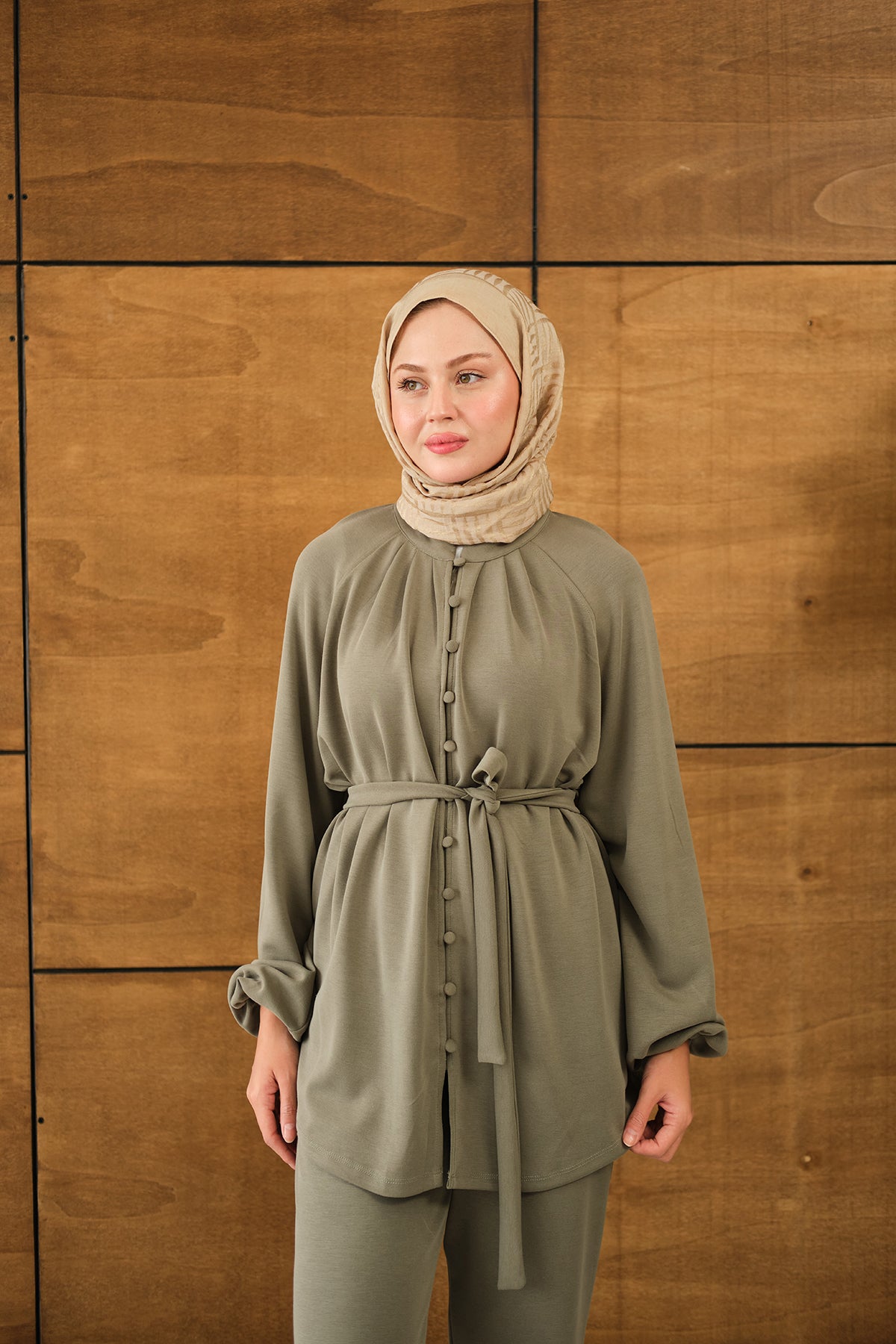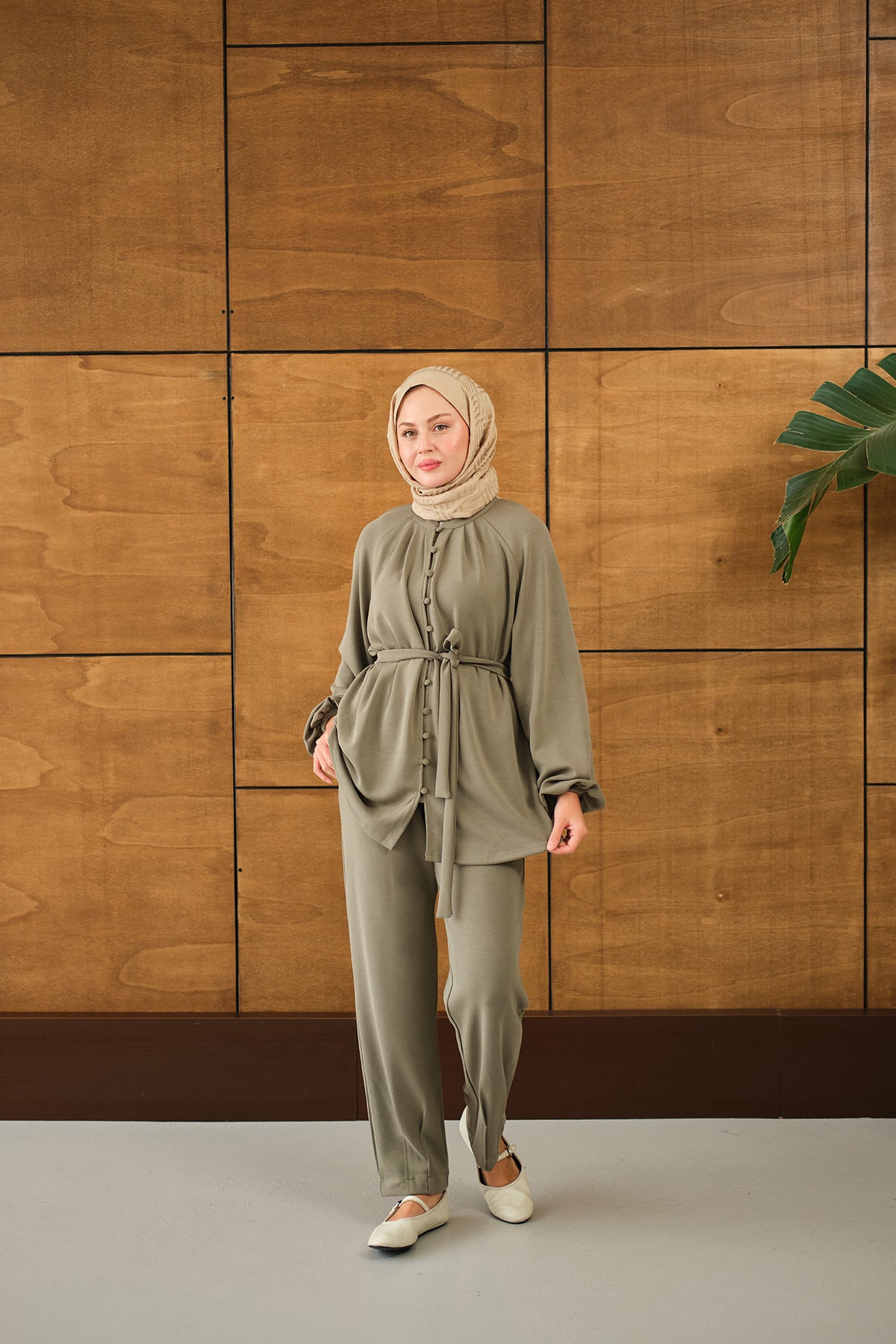 Düğme detaylı Bel Bağlamalı Takım Yeşil