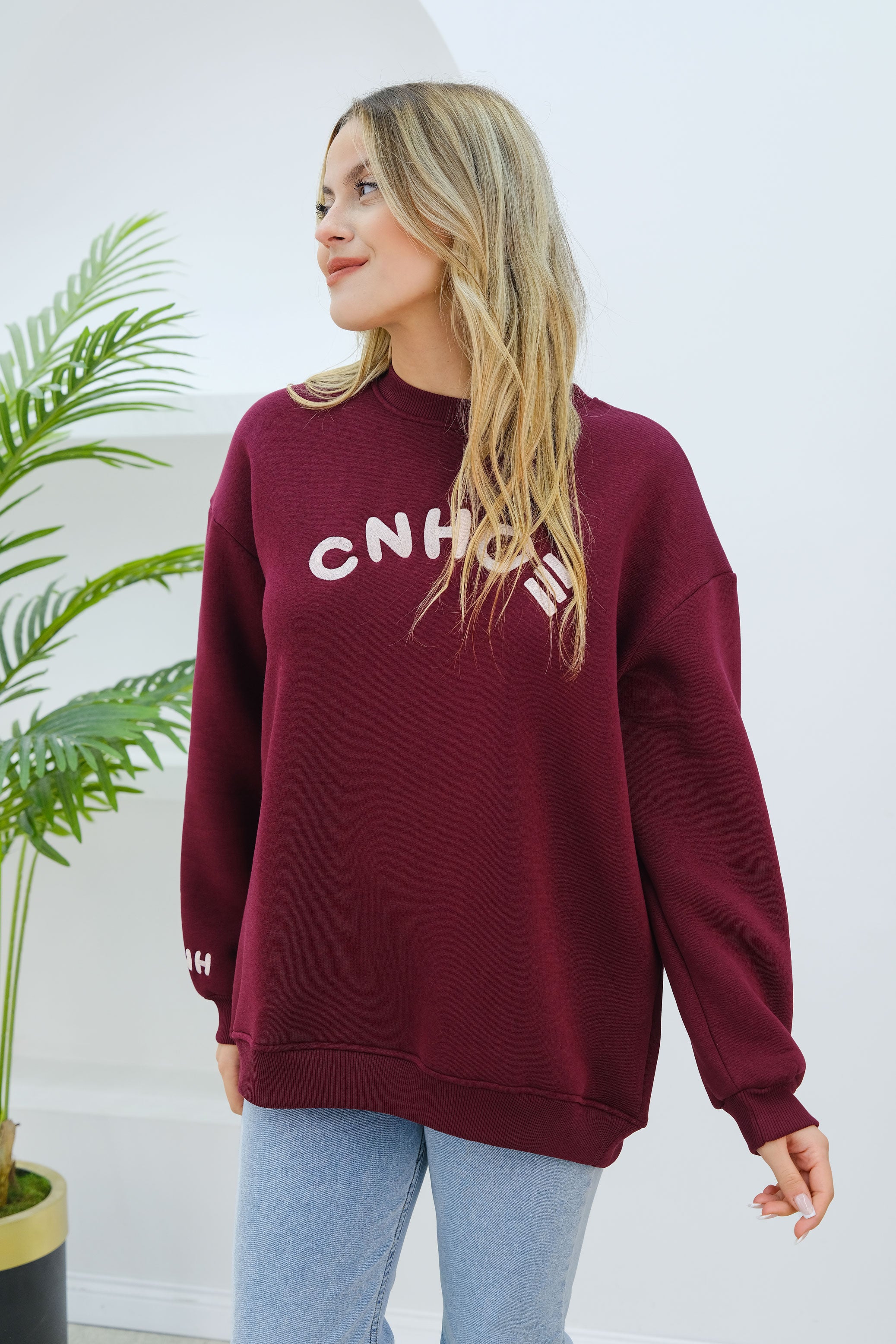 Embroidered Detail Oversize Sweatshirt Burgundy