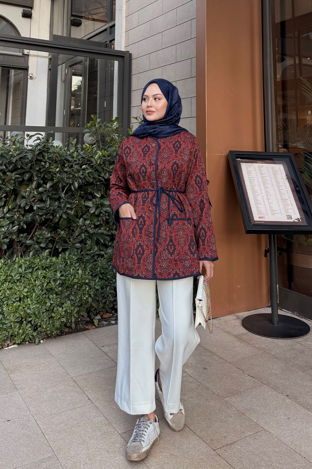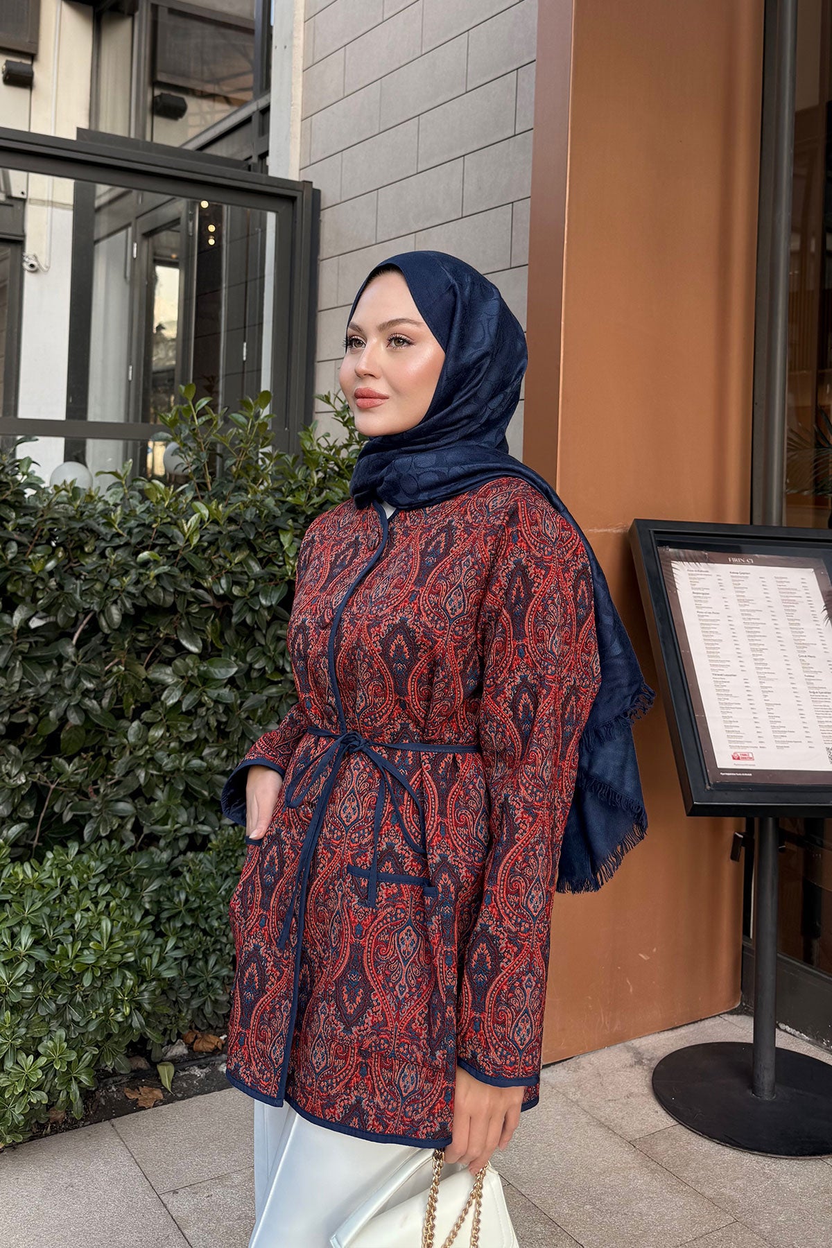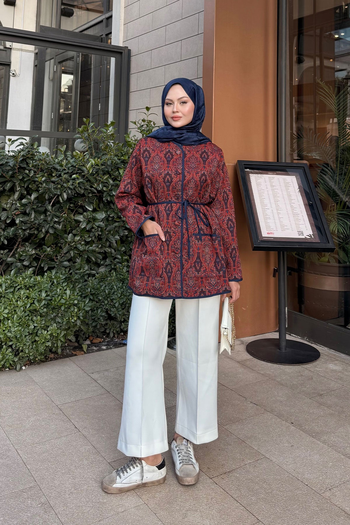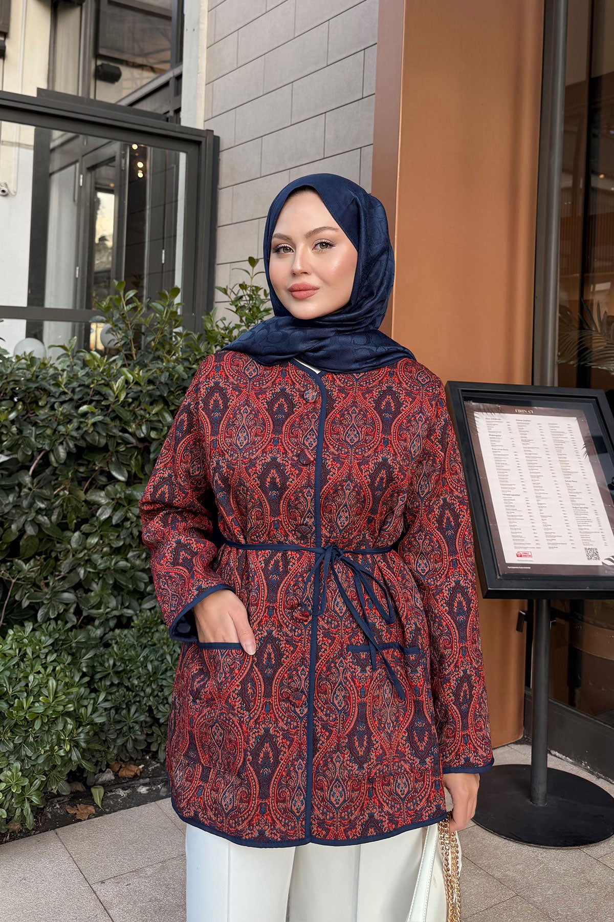 Etnik Desen Ceket Kiremit