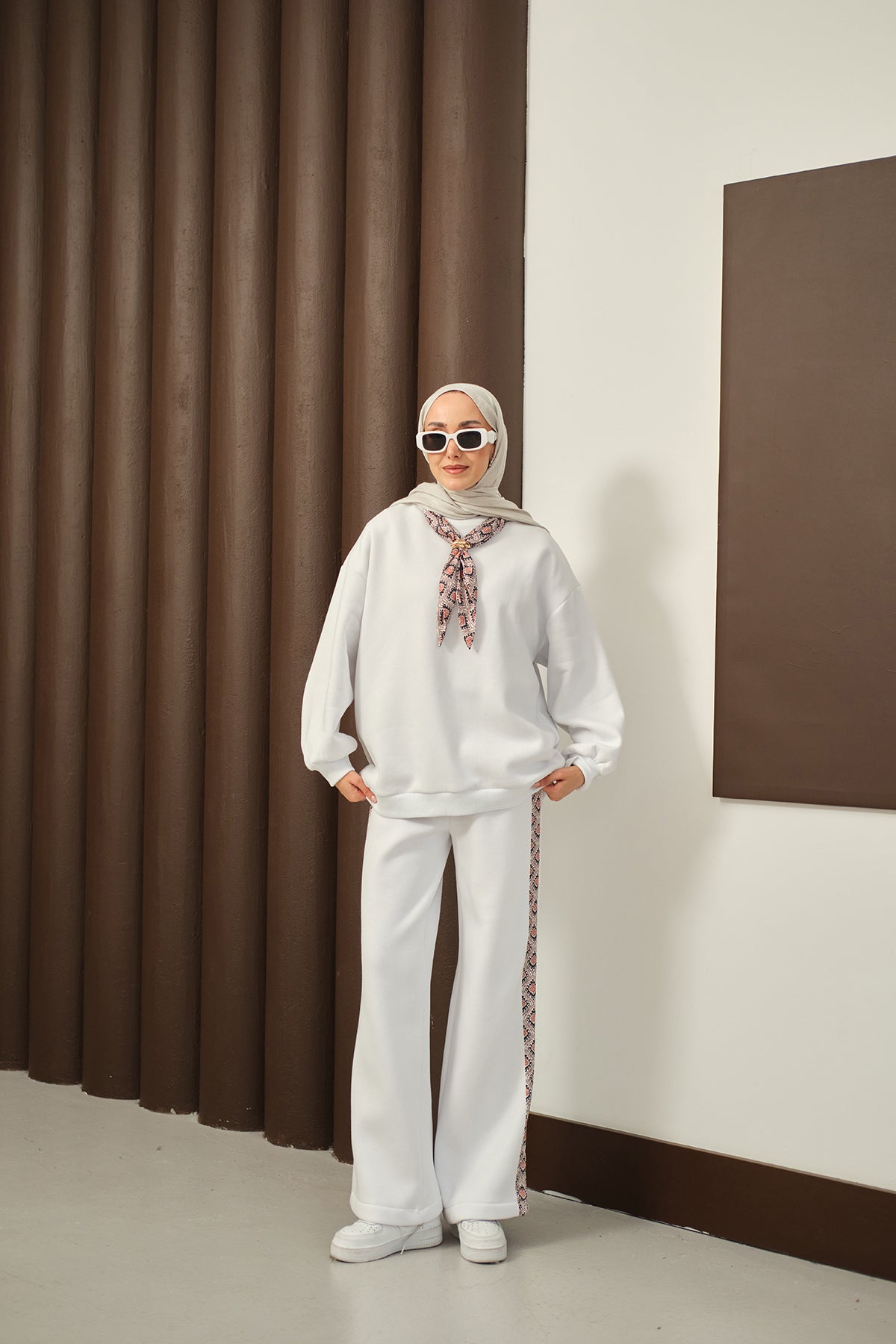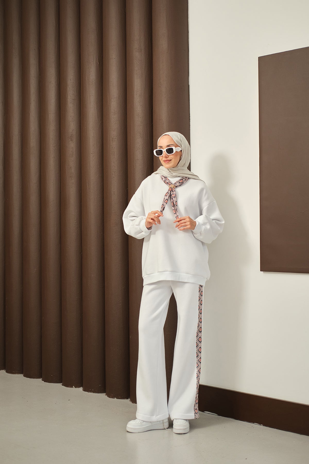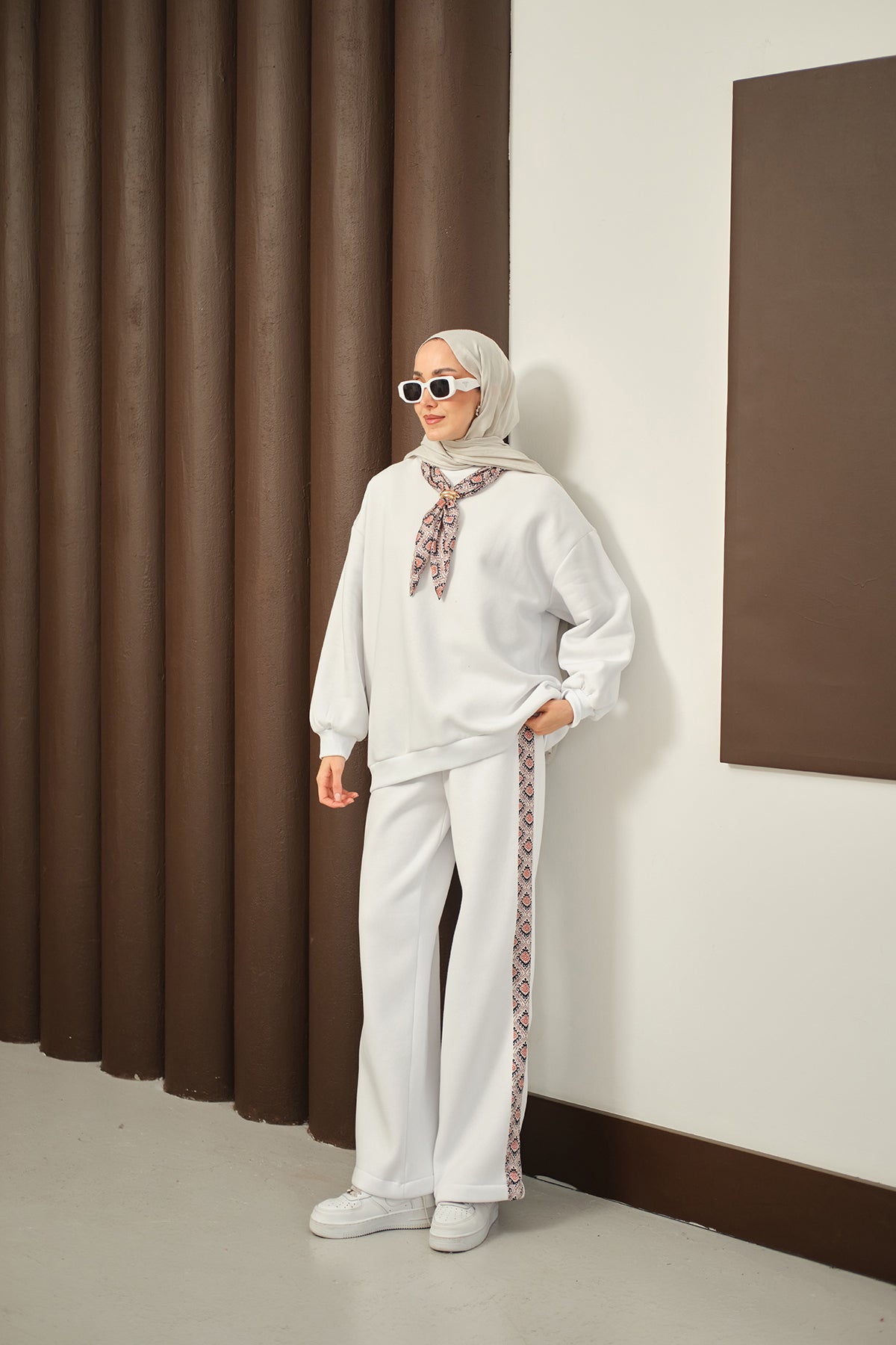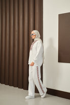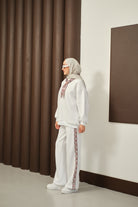 Etnik Desen İkili Takım Beyaz