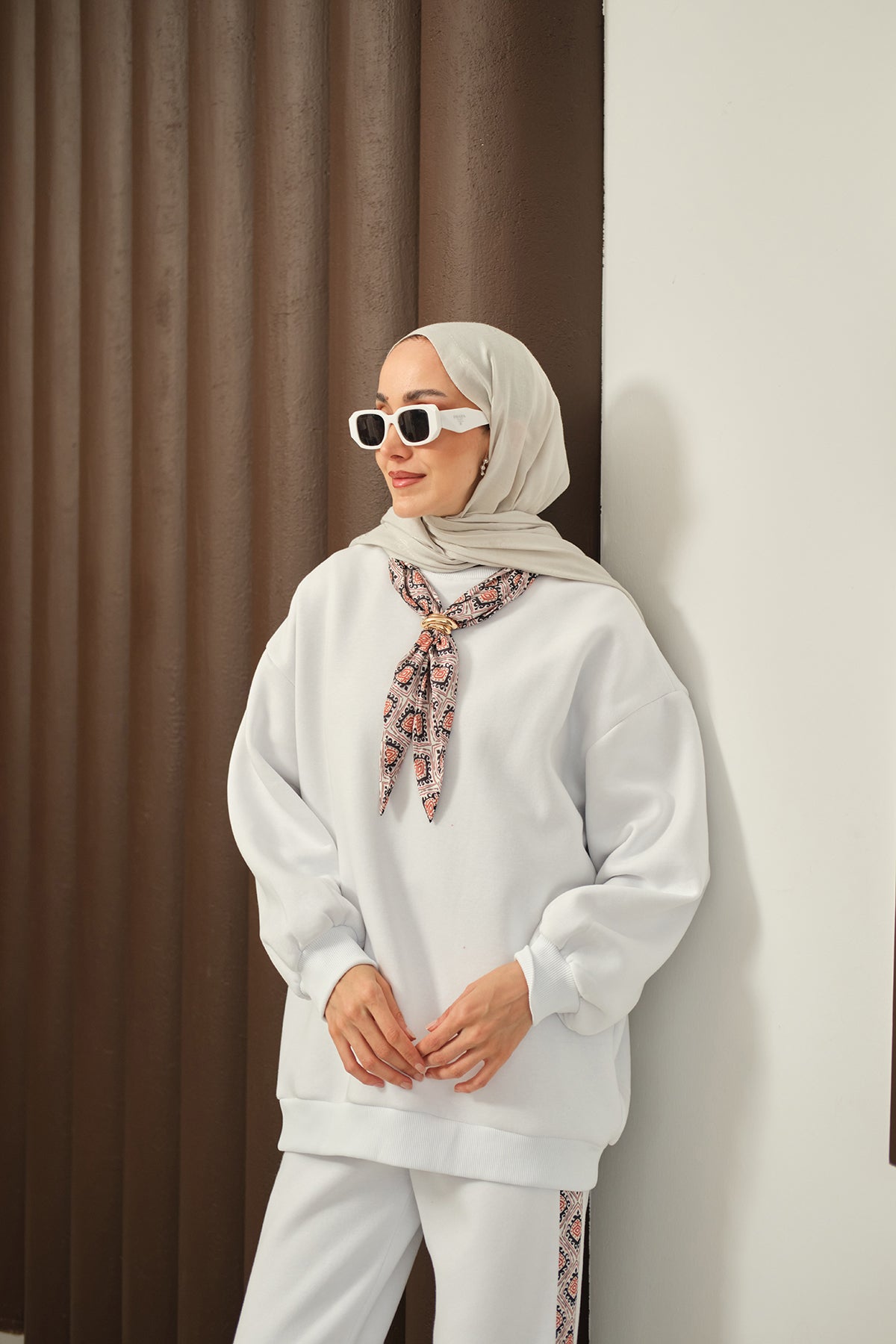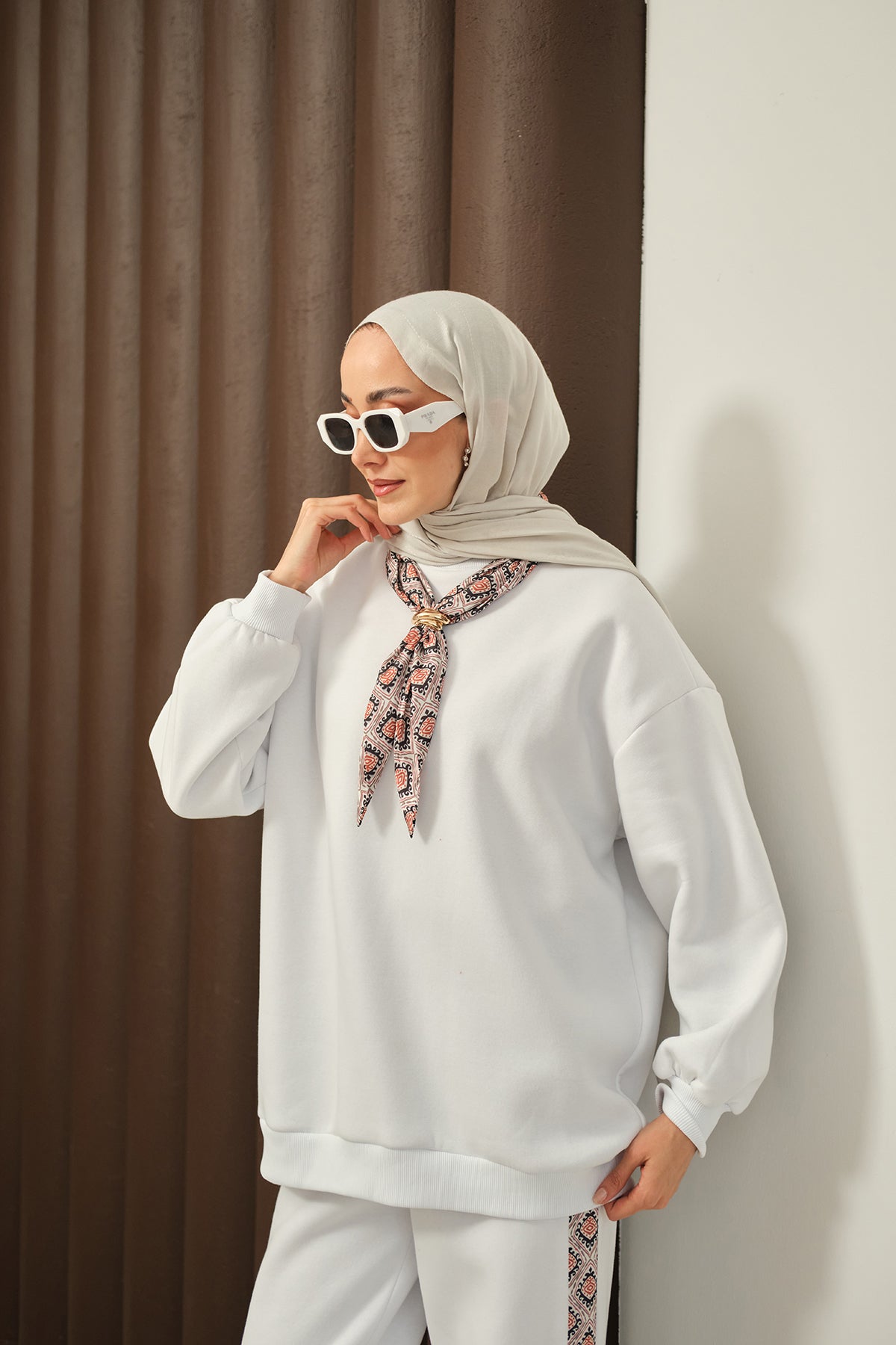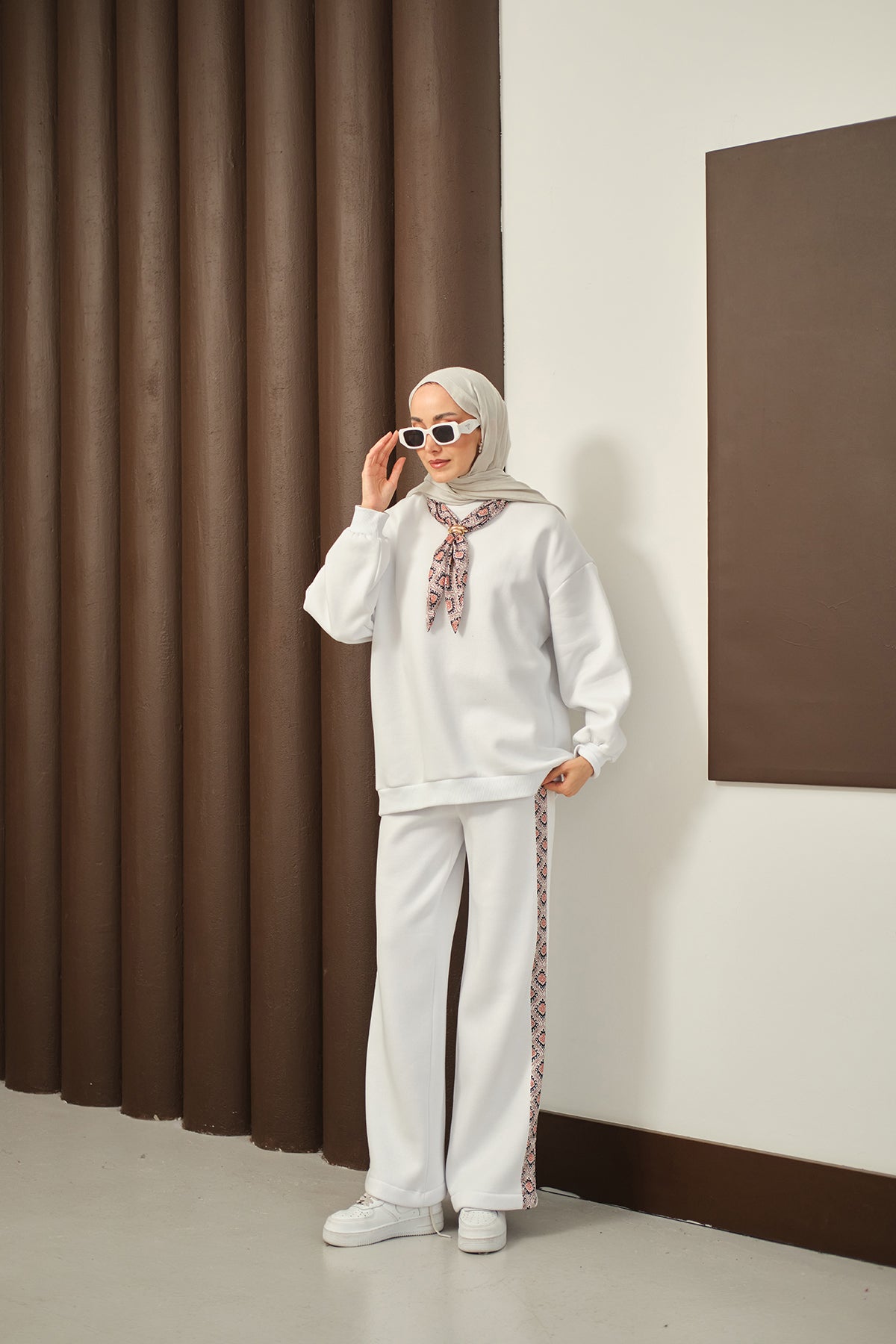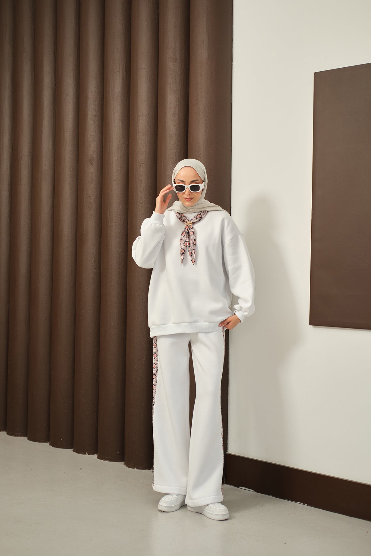 Etnik Desen İkili Takım Beyaz