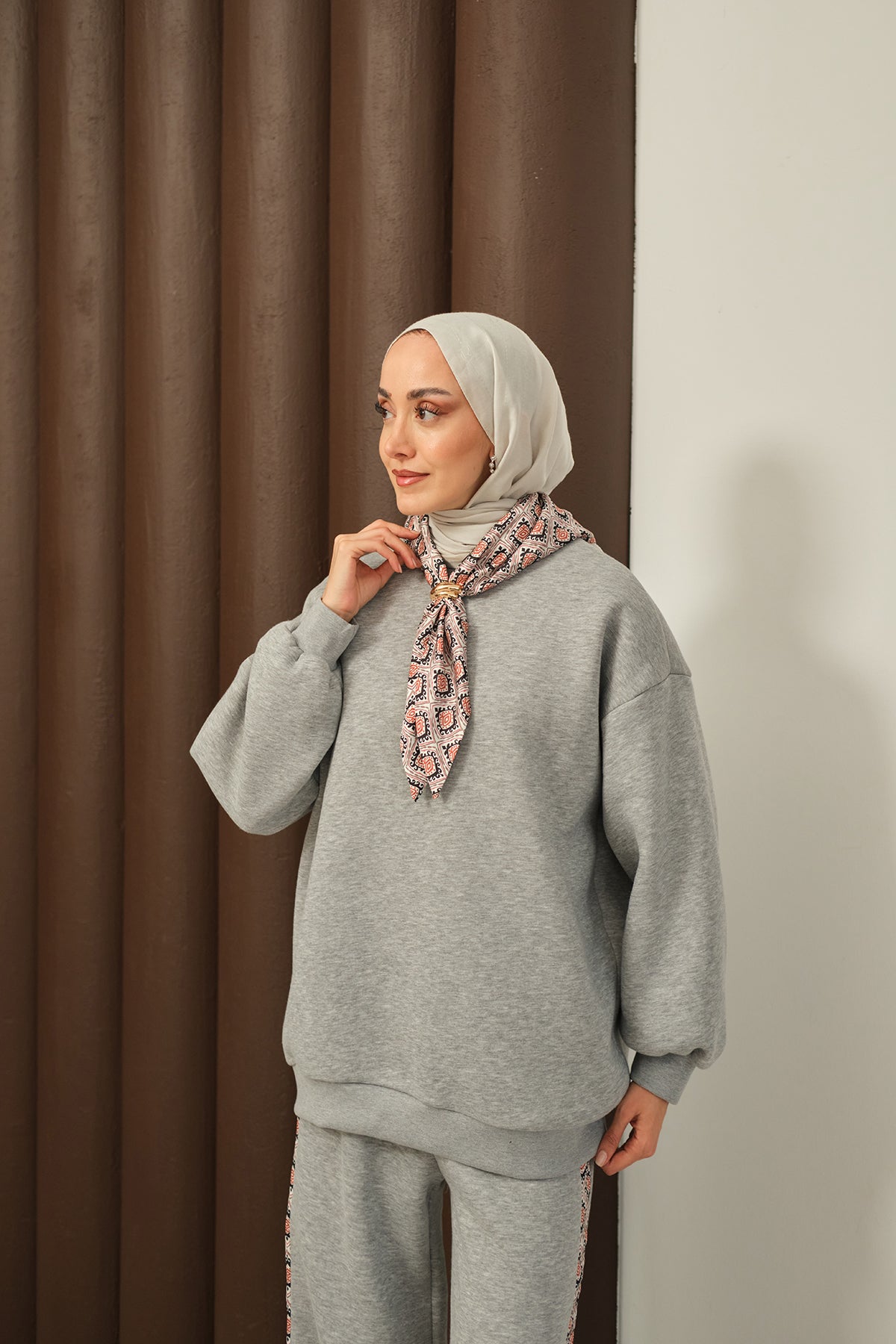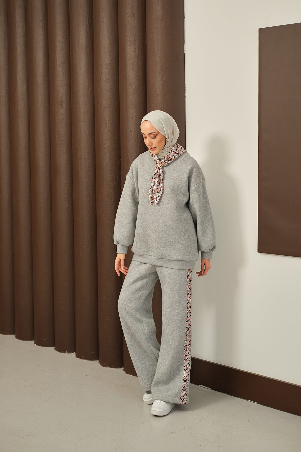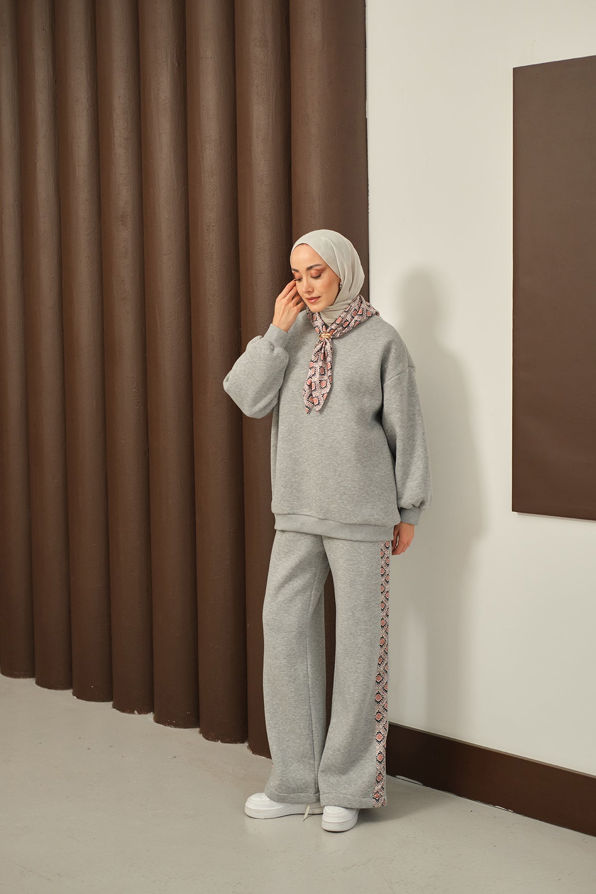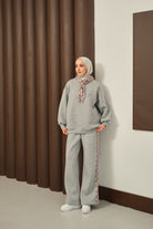 Etnik Desen İkili Takım Gri