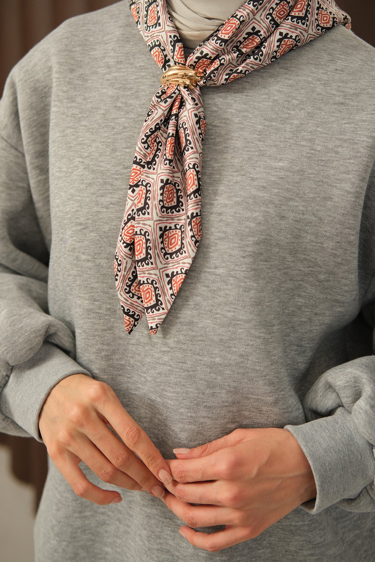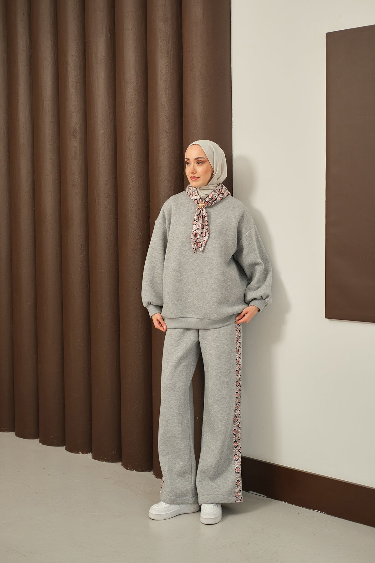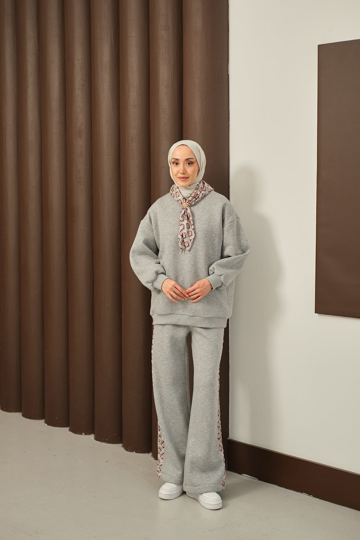 Etnik Desen İkili Takım Gri