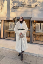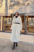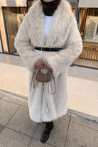 Fur Coat with Belt Detail - Stone