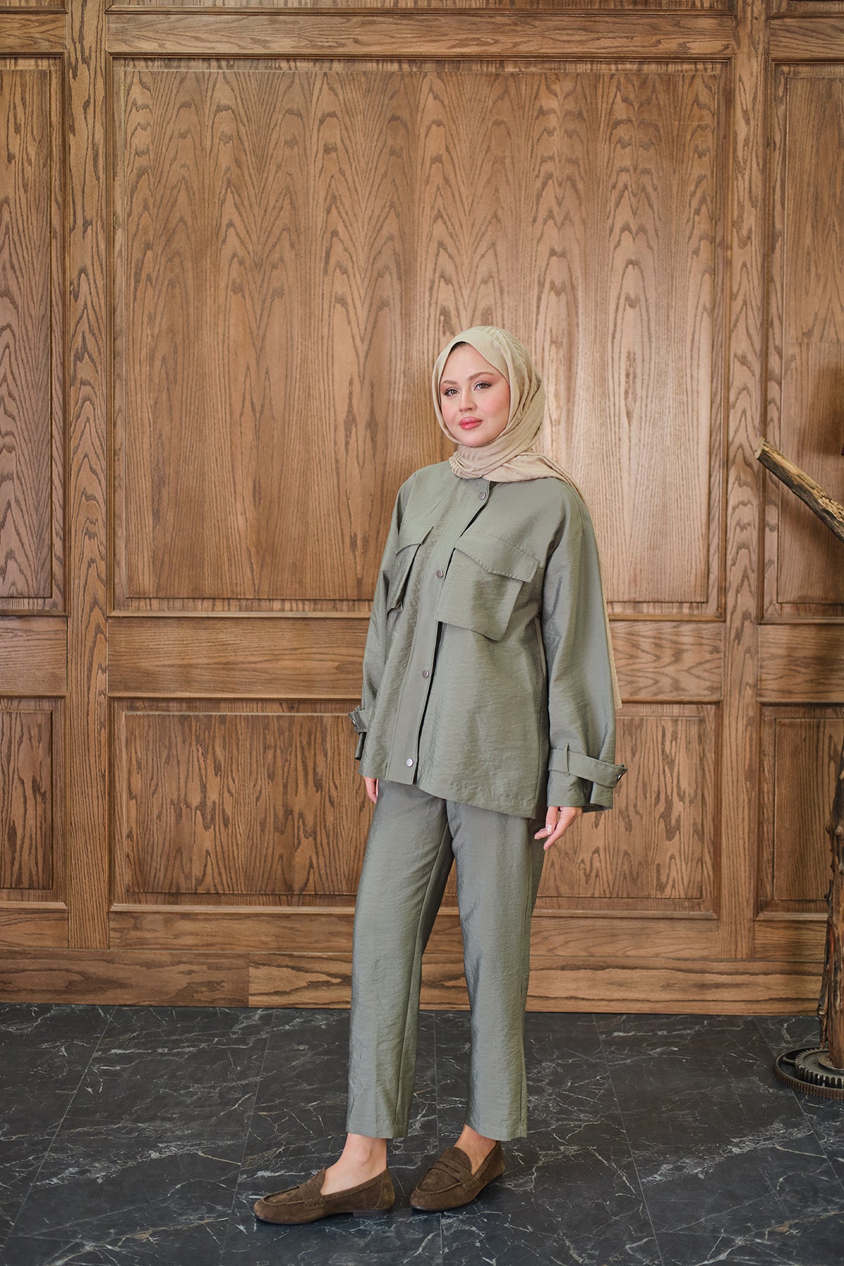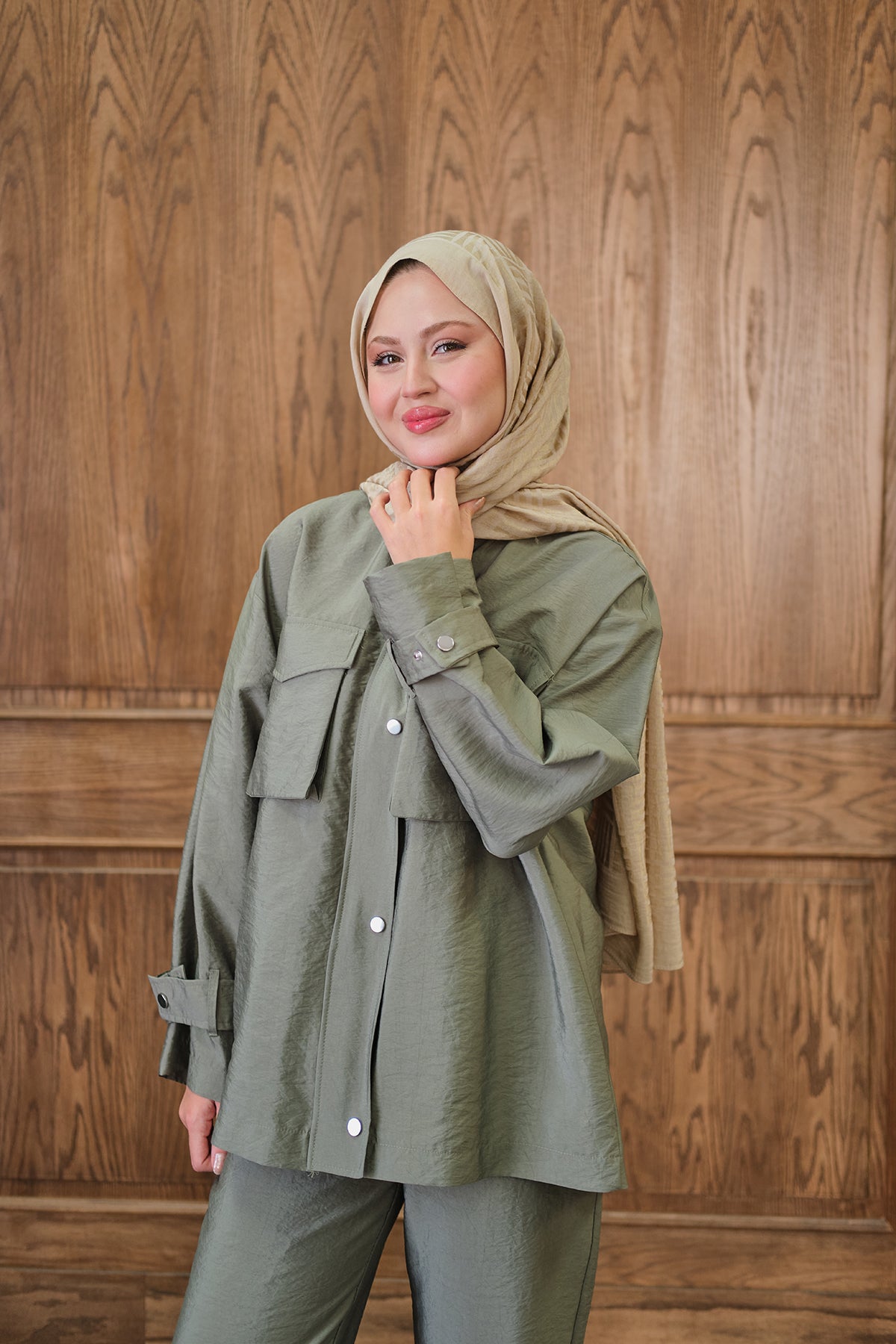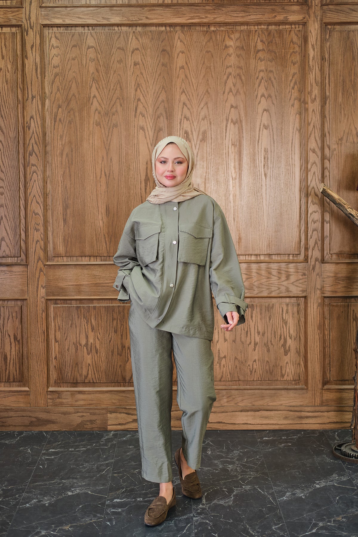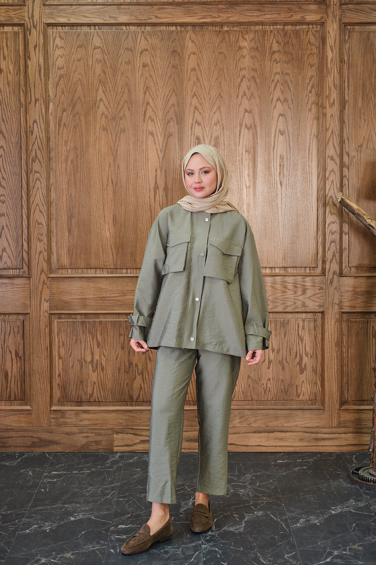 Gizli Fermuar Detaylı Takım Fıstık Yeşil