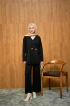 Gold Düğme Detay Takım Siyah