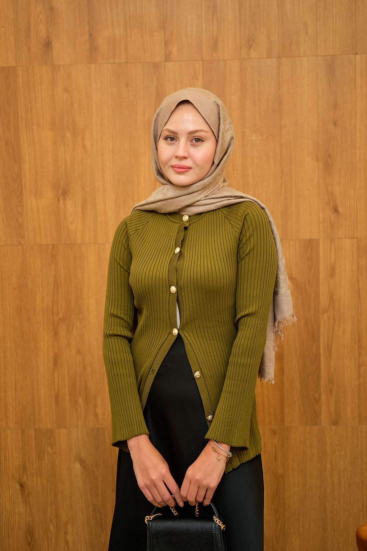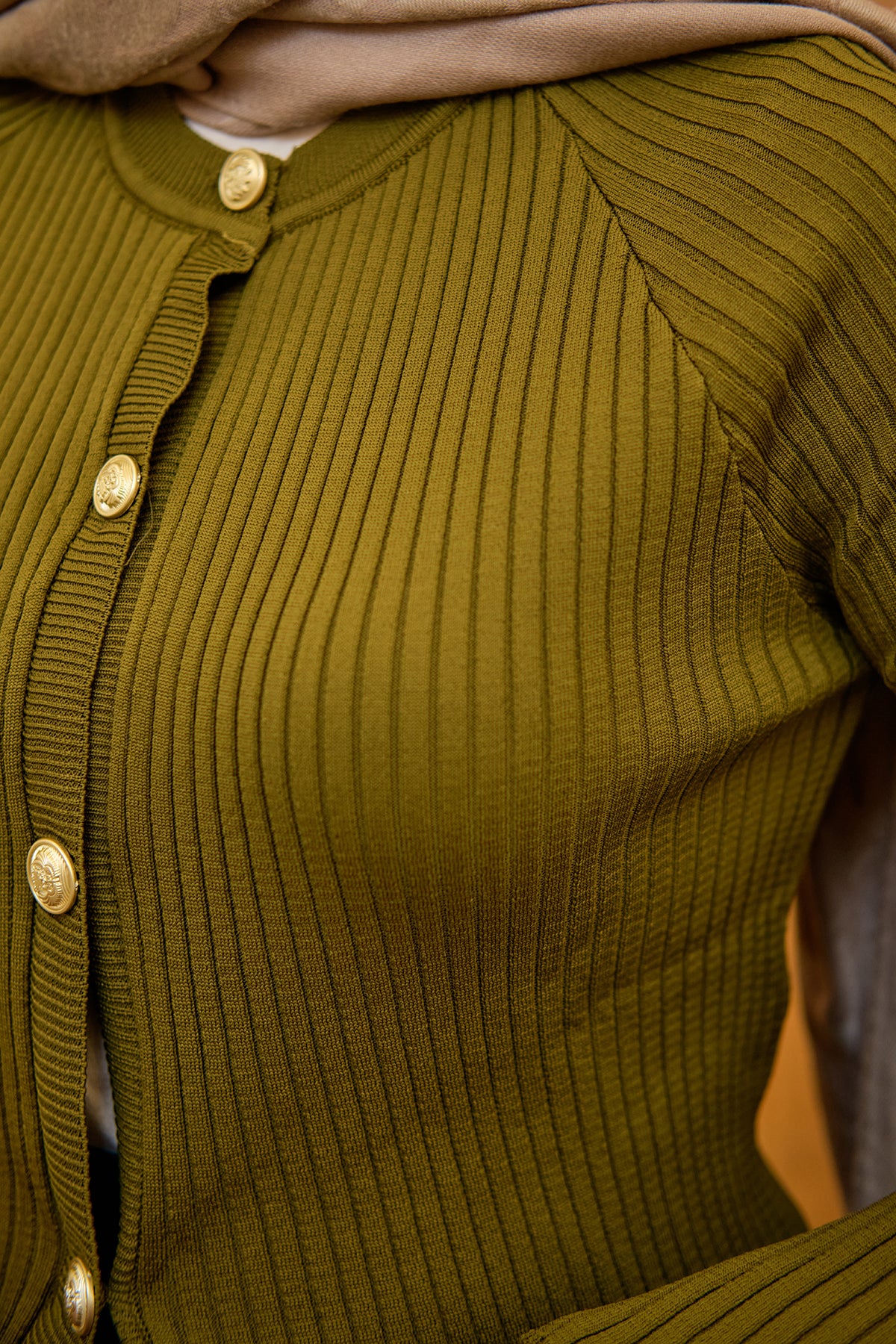 Kabartma Çizgi Detaylı Hırka Yağ Yeşil