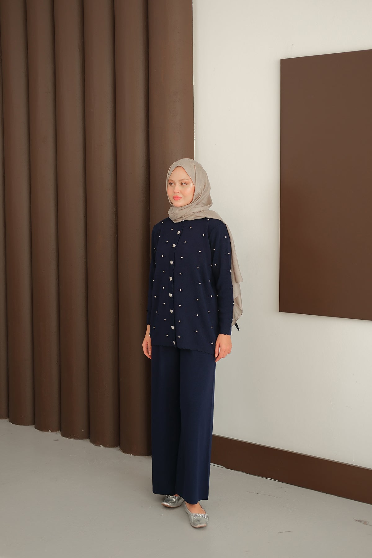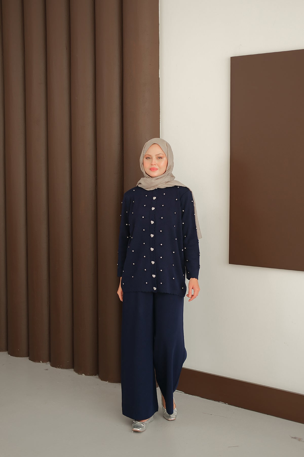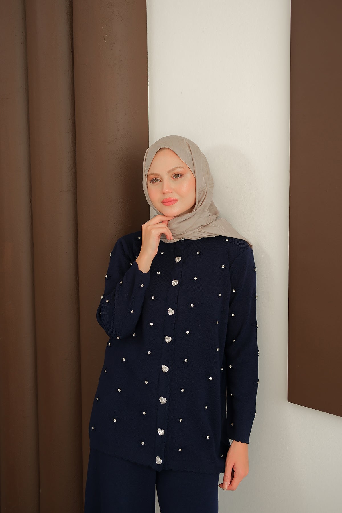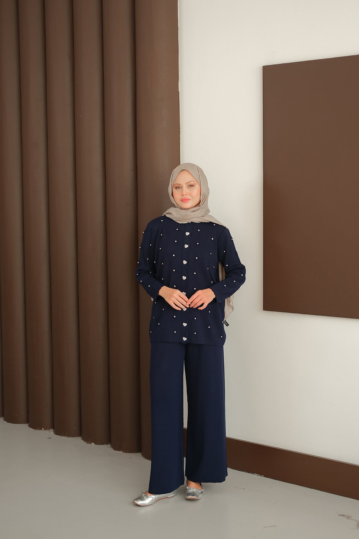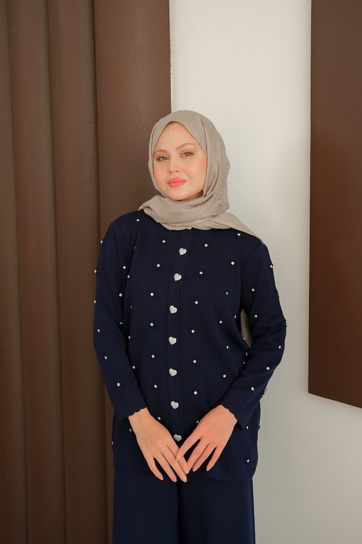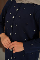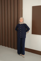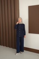 Kalp Düğme Detay Triko Takım Lacivert