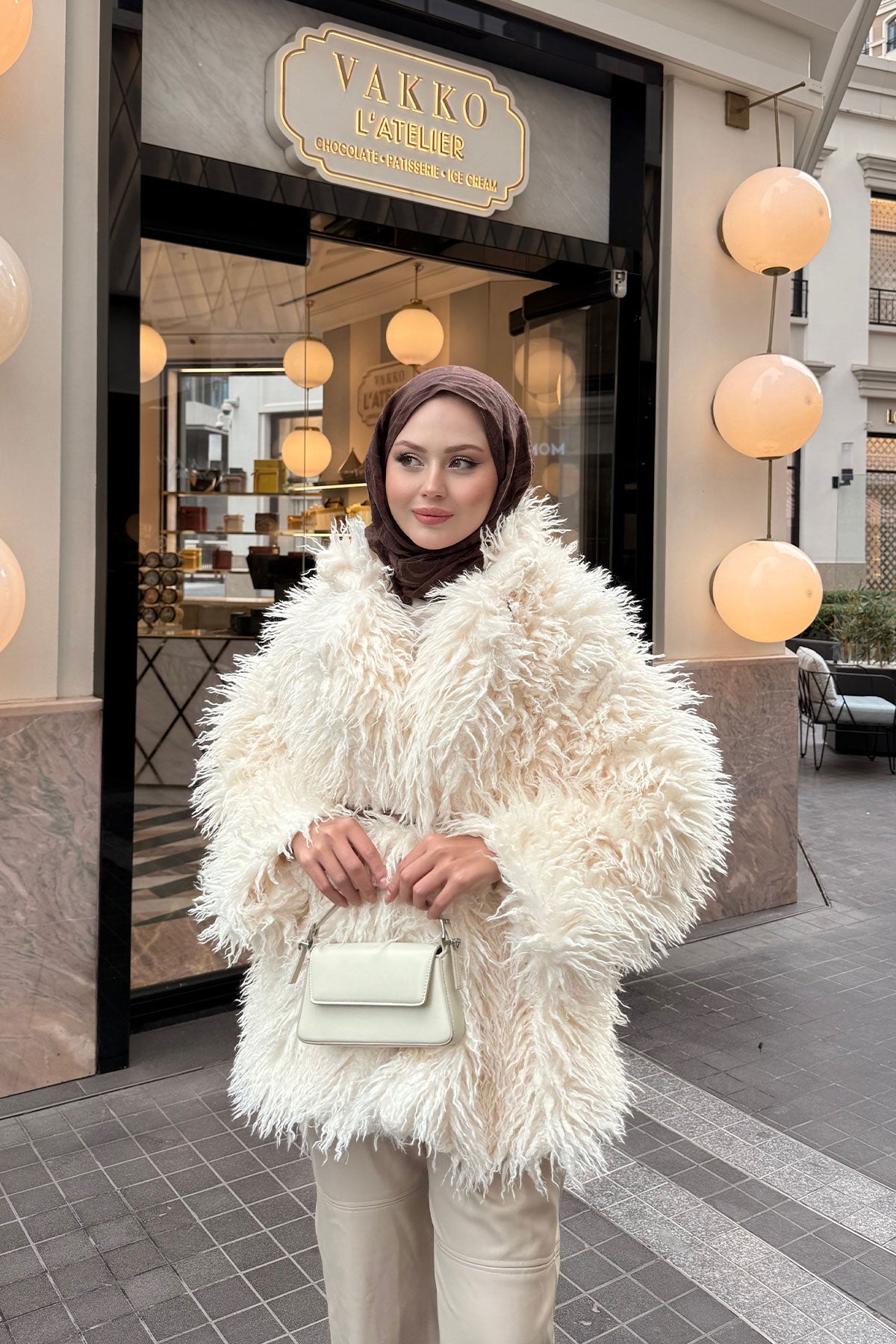 Kemer Detay Kısa Kürk Kaban Krem
