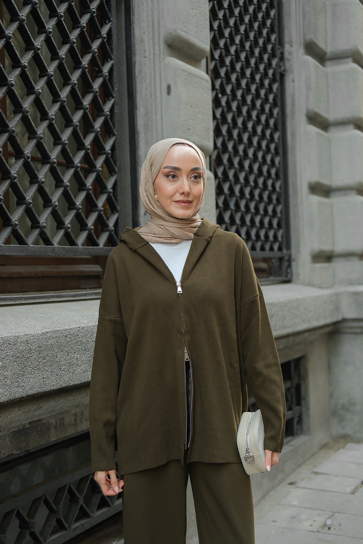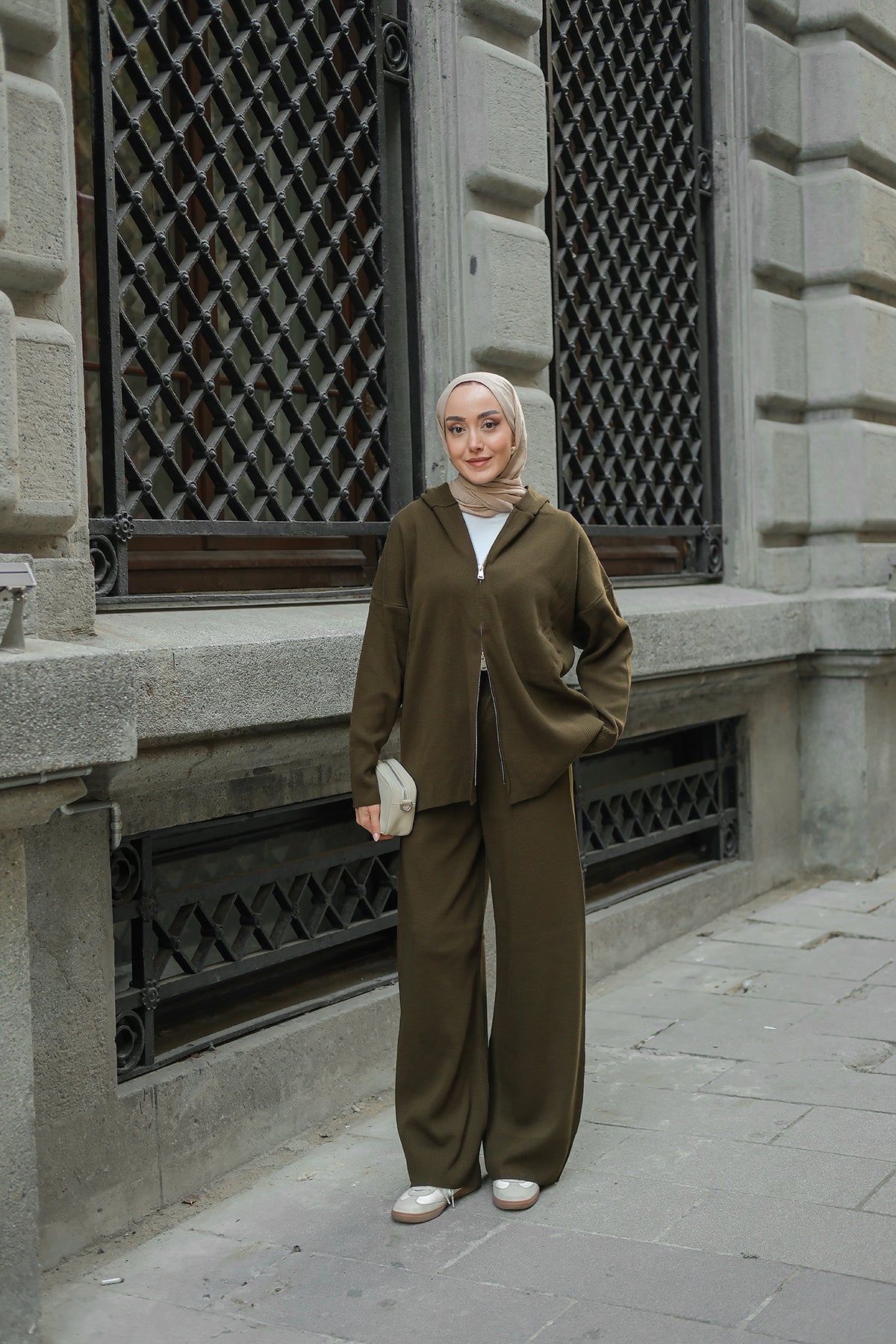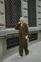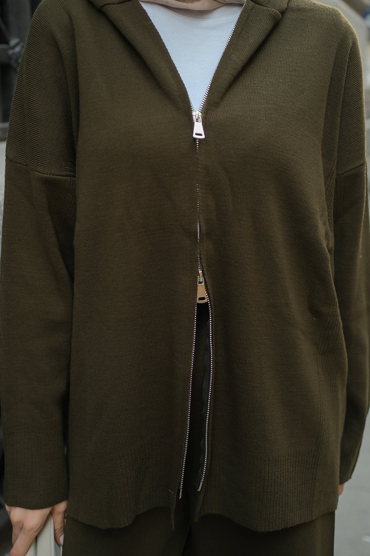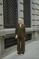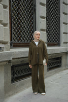 Kendinden Desenli Triko Takım Haki Yeşil
