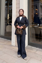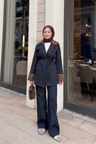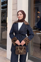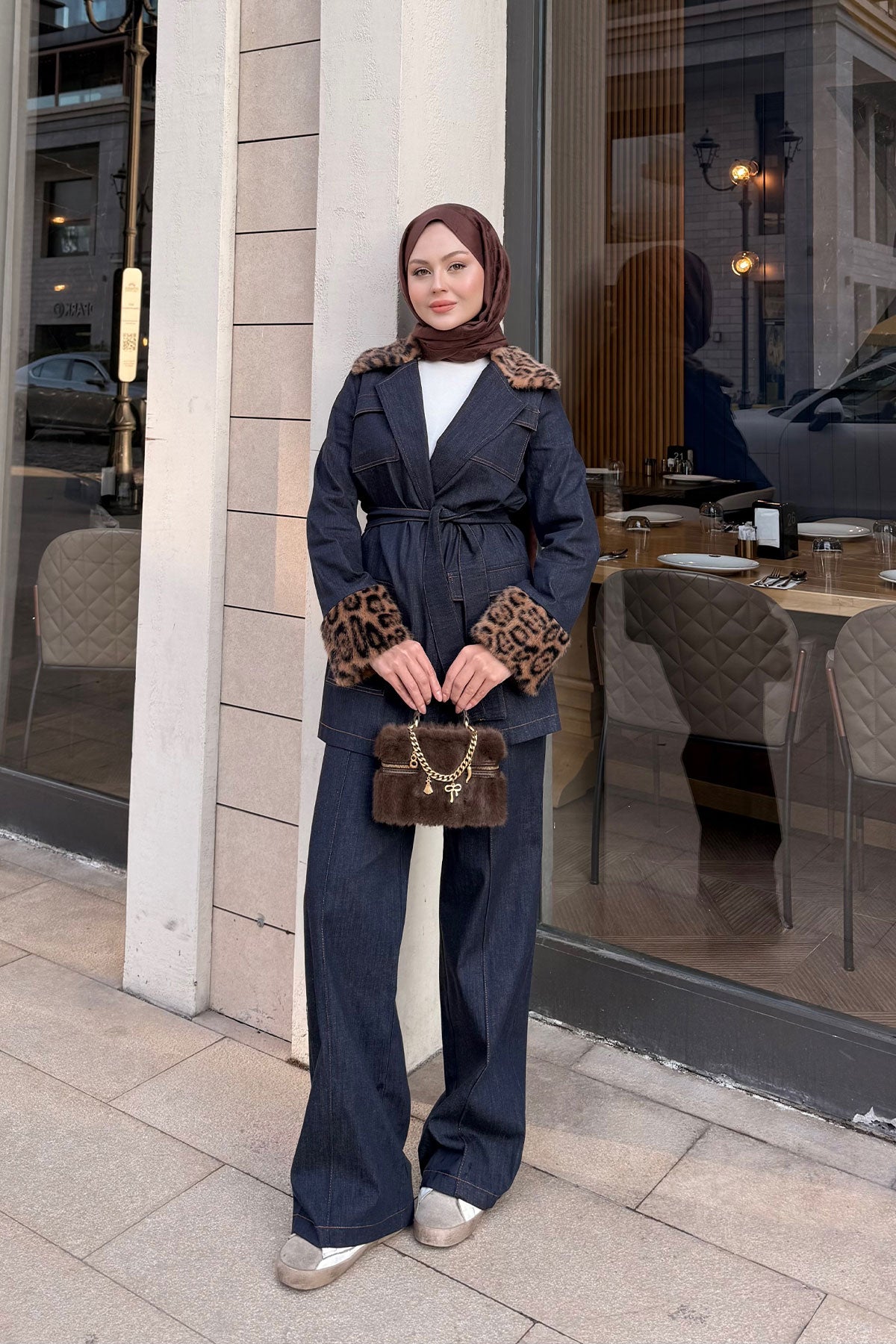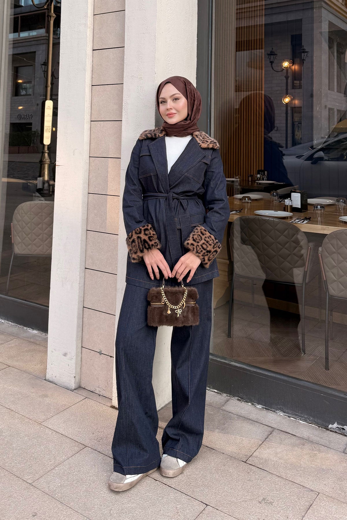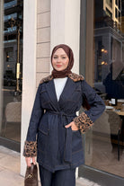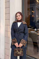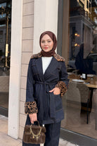 Kolları Ve Yaka Leopar Desen Takım Lacivert