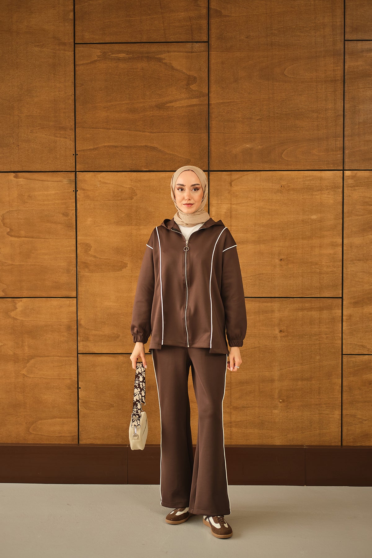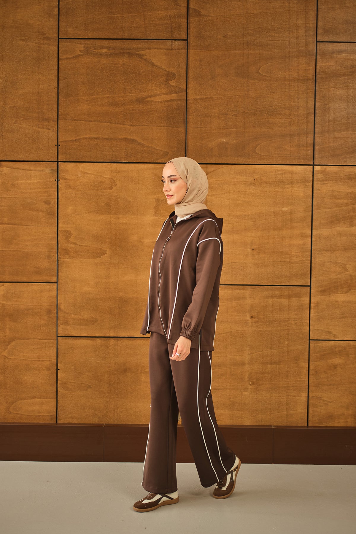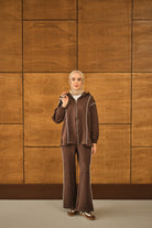 Kup Detay Biyeli Takım Kahverengi