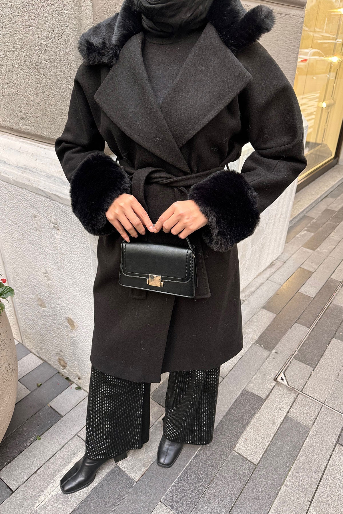 Kürk Detay Kaban Siyah