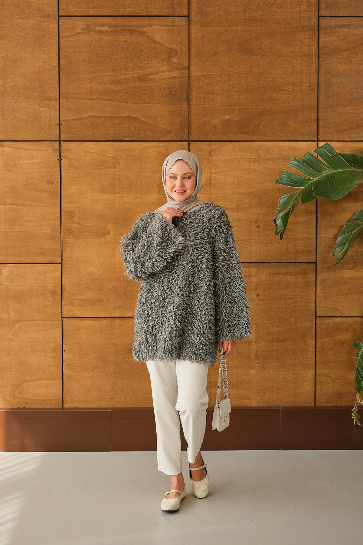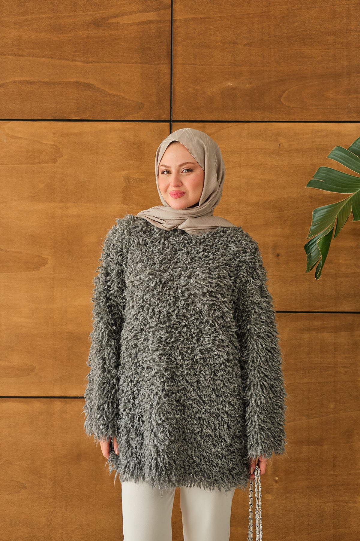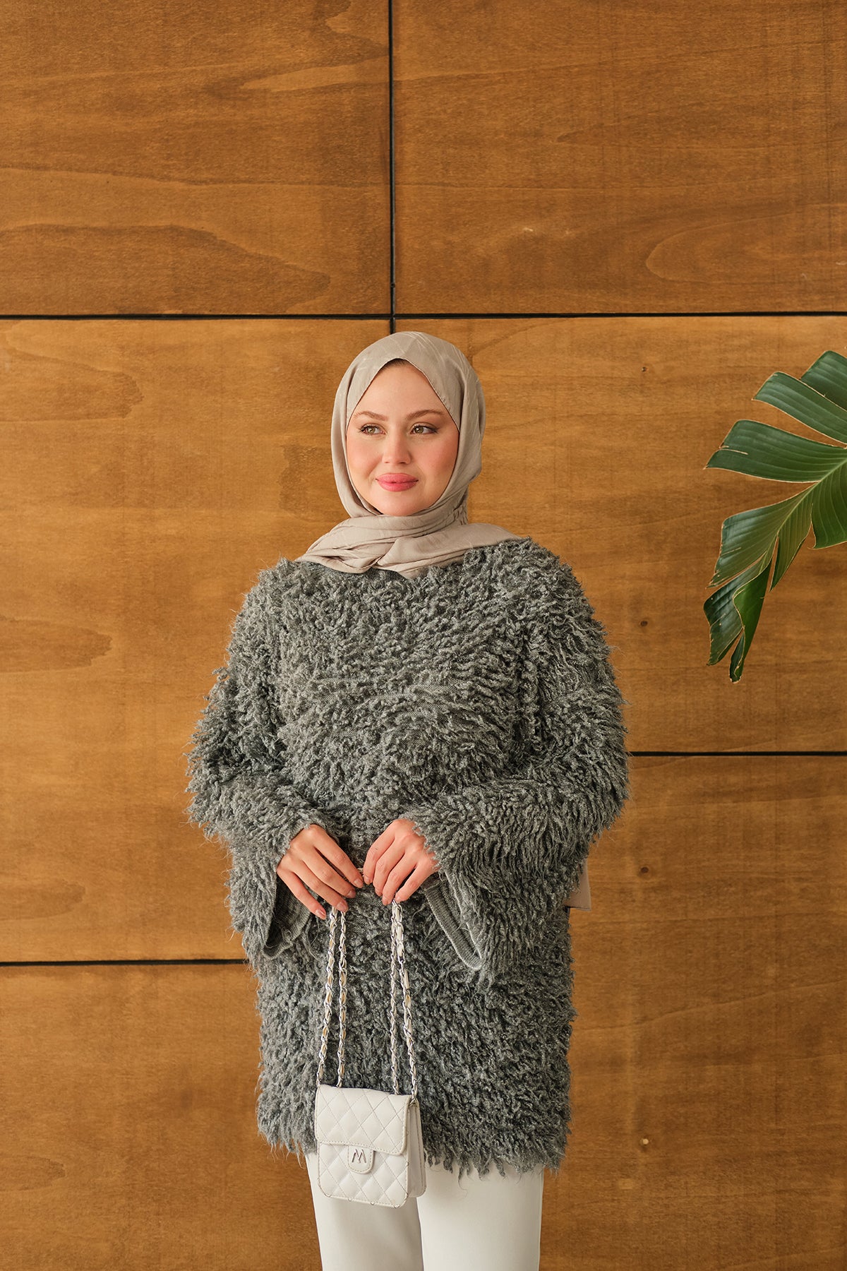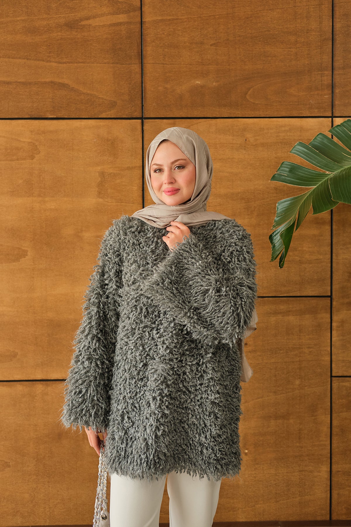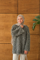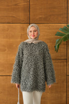 Kürk Detay Kazak Gri