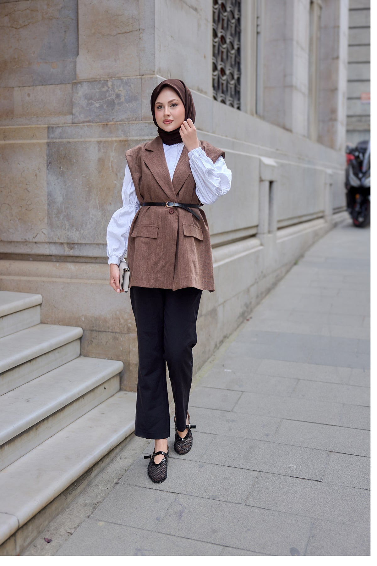 Shoulders With Padding Detail Linen Vest Brown