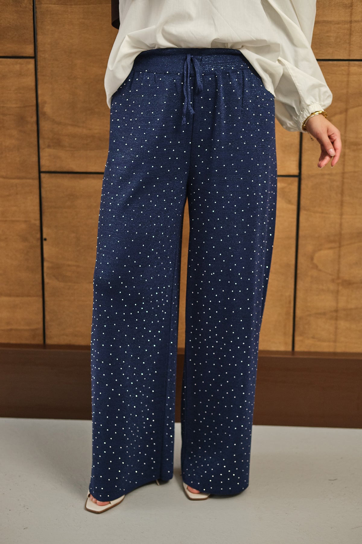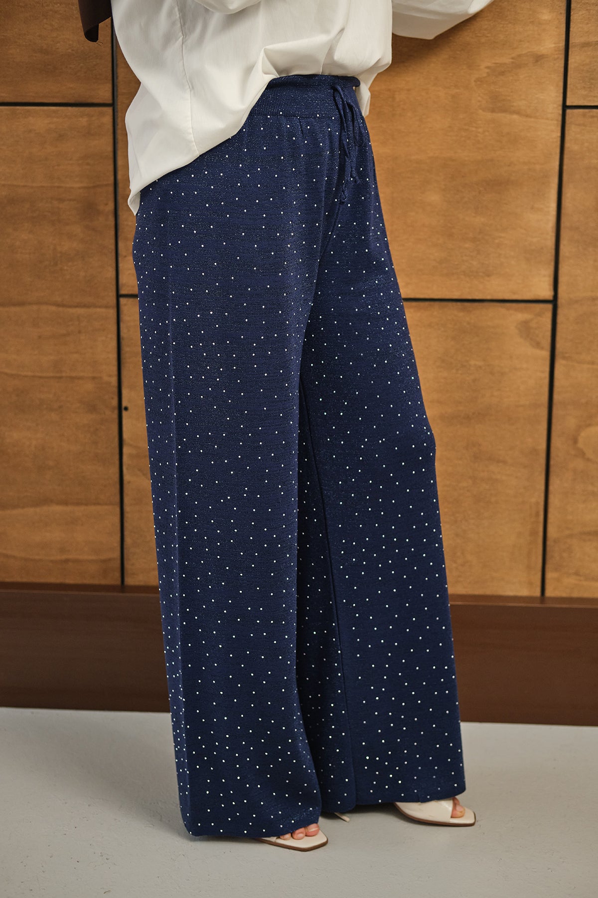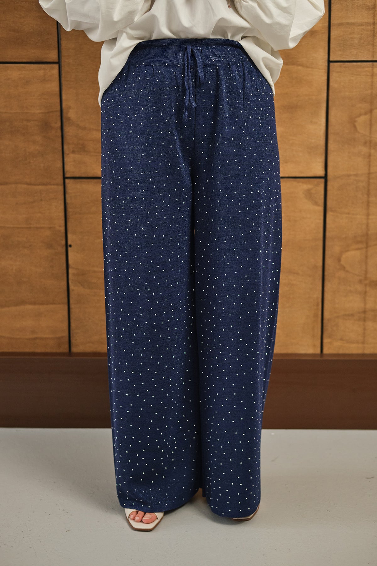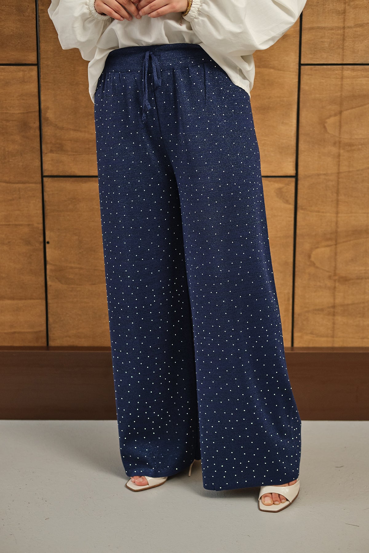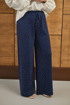 Sim Detay Taşlı Triko Pantolon Lacivert