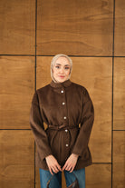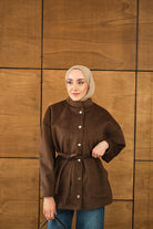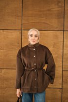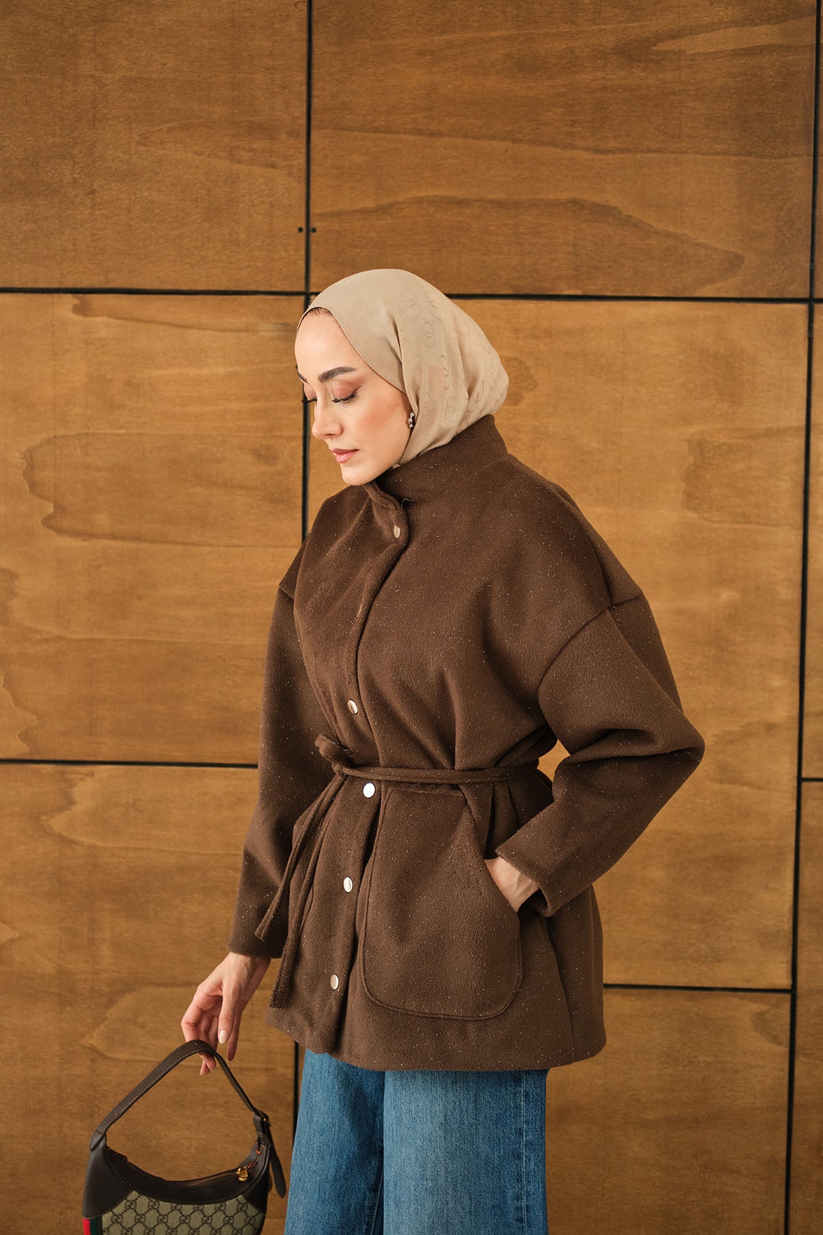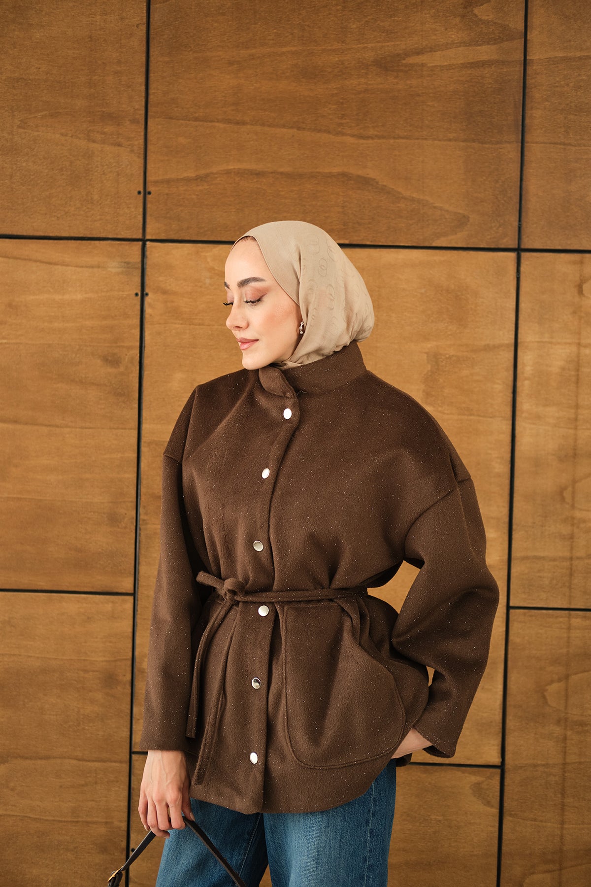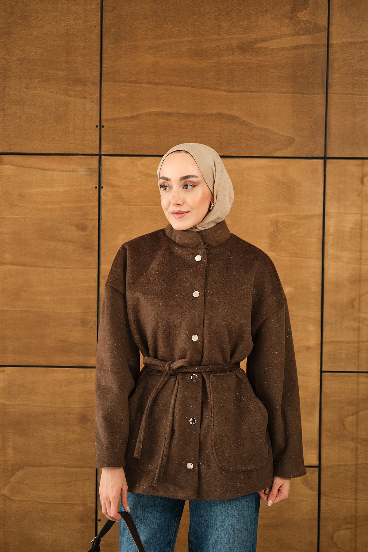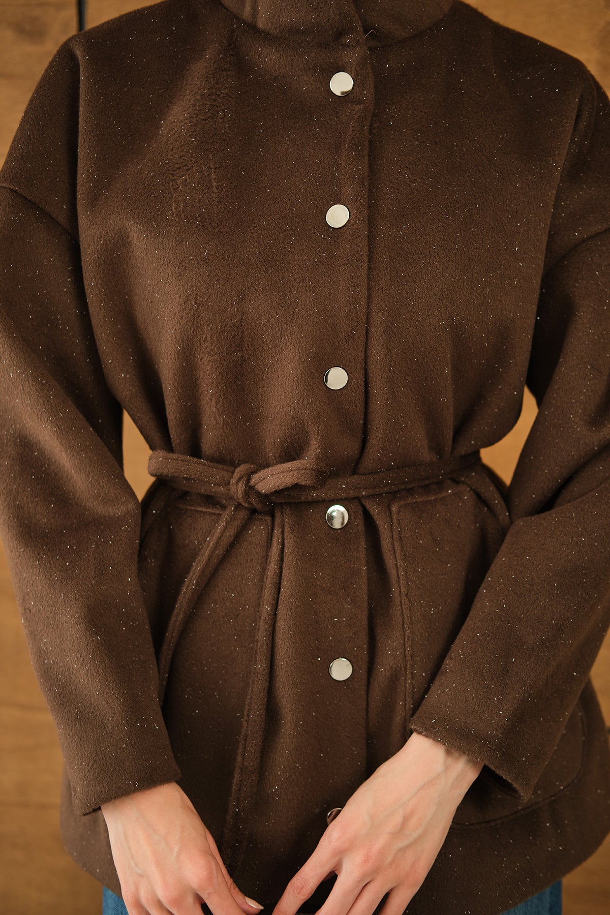 Simli Kaşe Çıtçıtlı Ceket Kahverengi