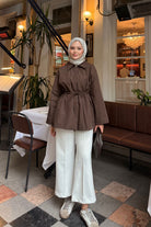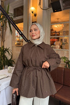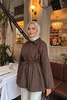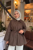 Taş Detay Bel Bağlamalı Trenç Kahverengi