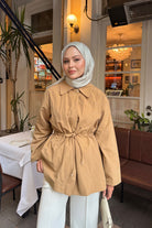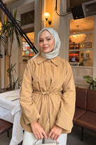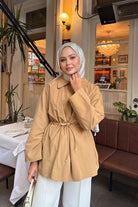 Taş Detay Bel Bağlamalı Trenç Vizon