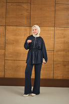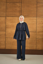 Taş Detay Kapüşonlu Takım Lacivert