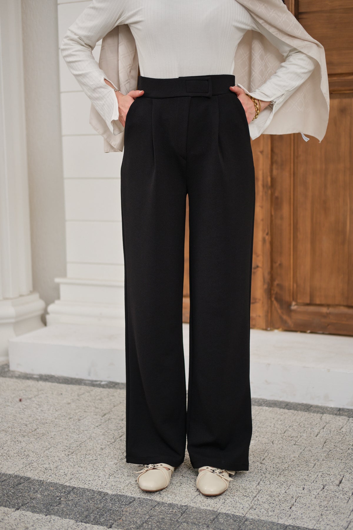 Velcro Detail Fabric Pants - Black