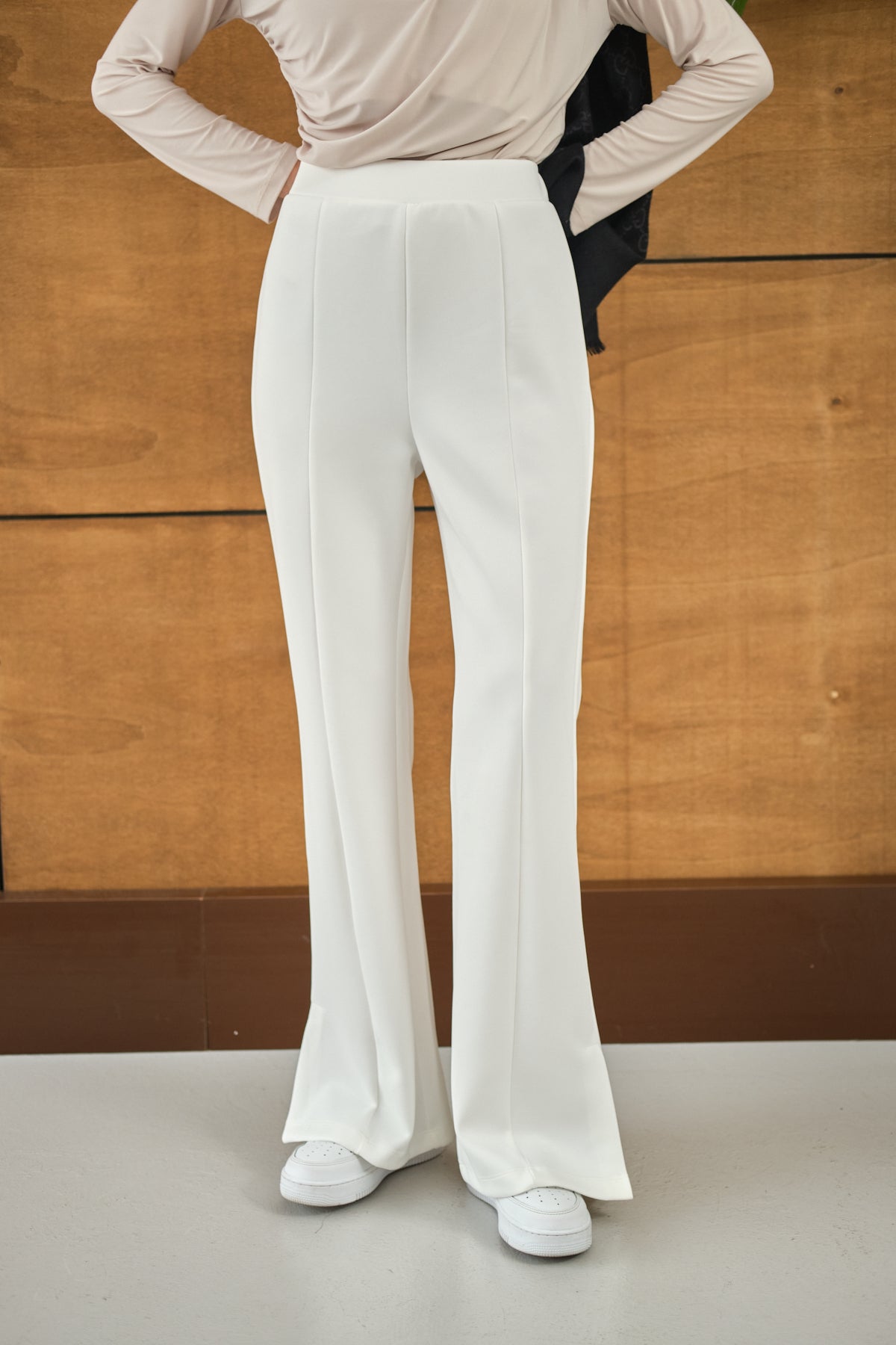 Yandan Yırtmaçlı Scuba Pantolon Beyaz