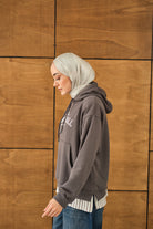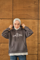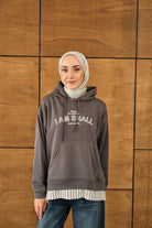 Yazı Baskılı Kapüşonlu Sweat Gri