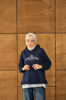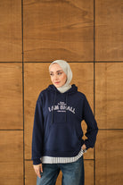 Yazı Baskılı Kapüşonlu Sweat Lacivert