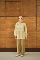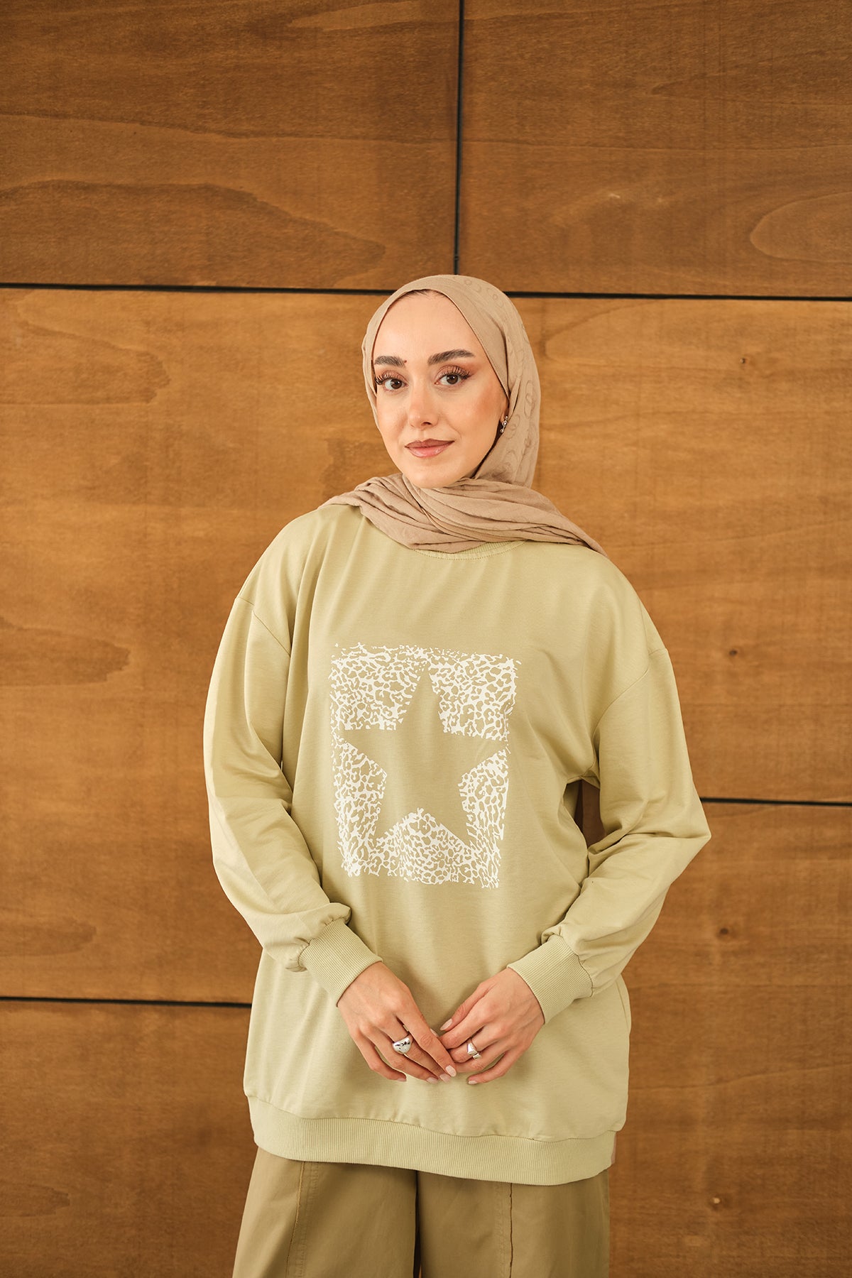 Yıldız Baskılı Sweatshirt Su Yeşil