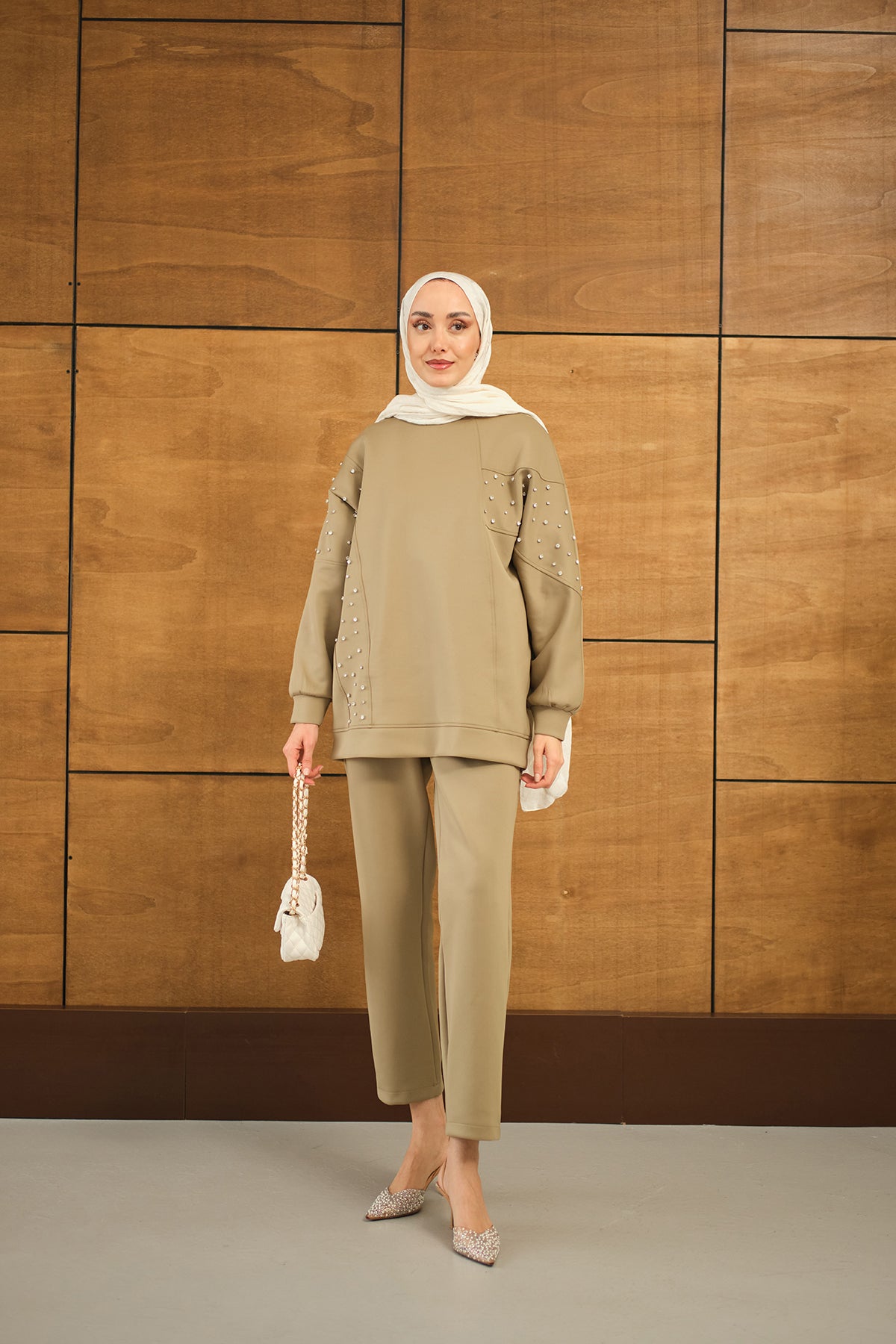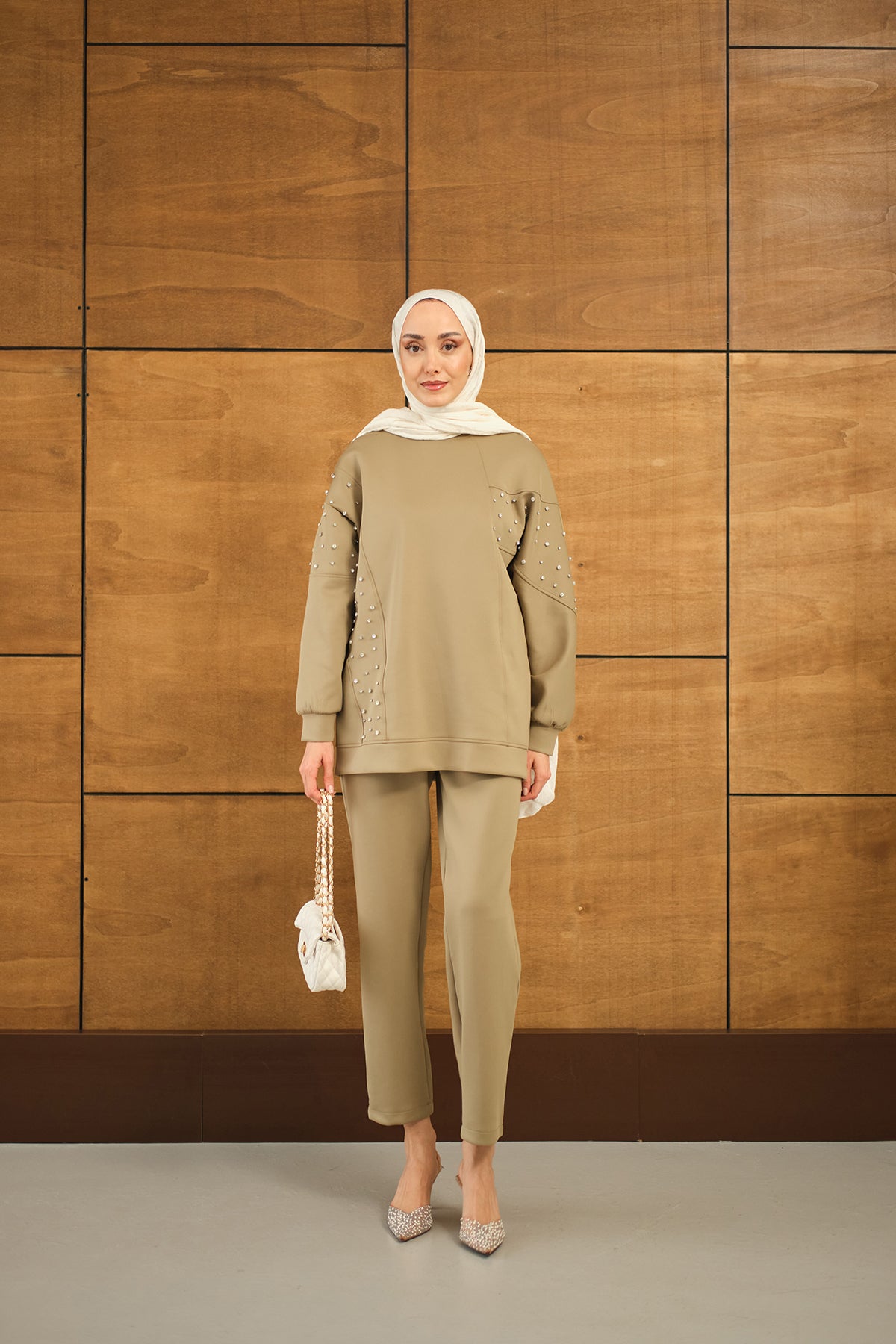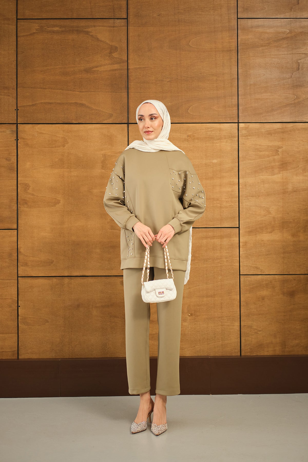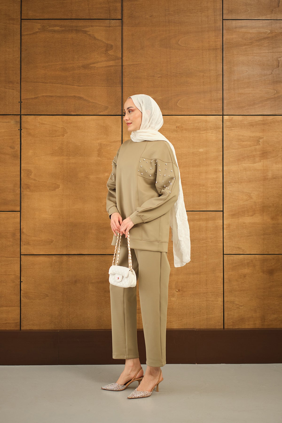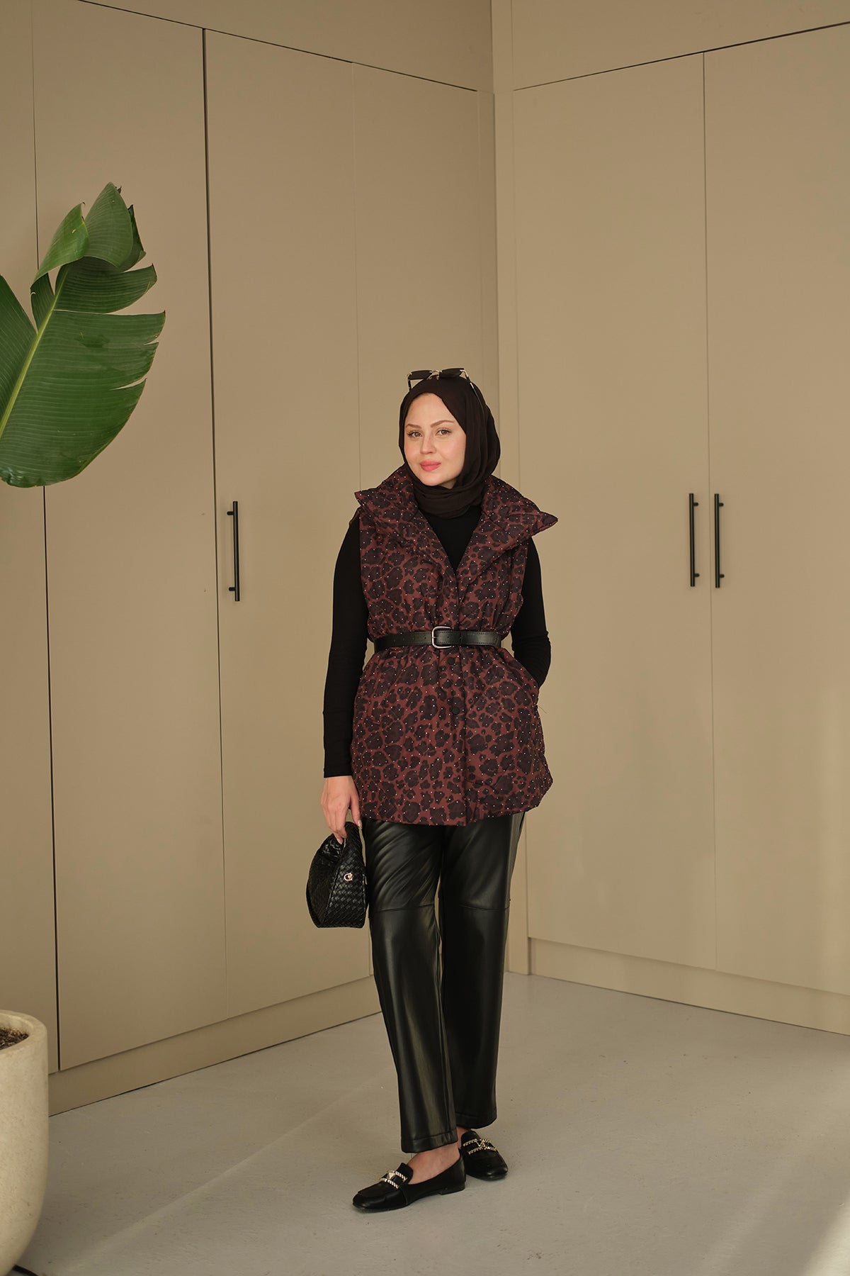 Taş Detaylı Kapitone Yelek Haki Yeşil