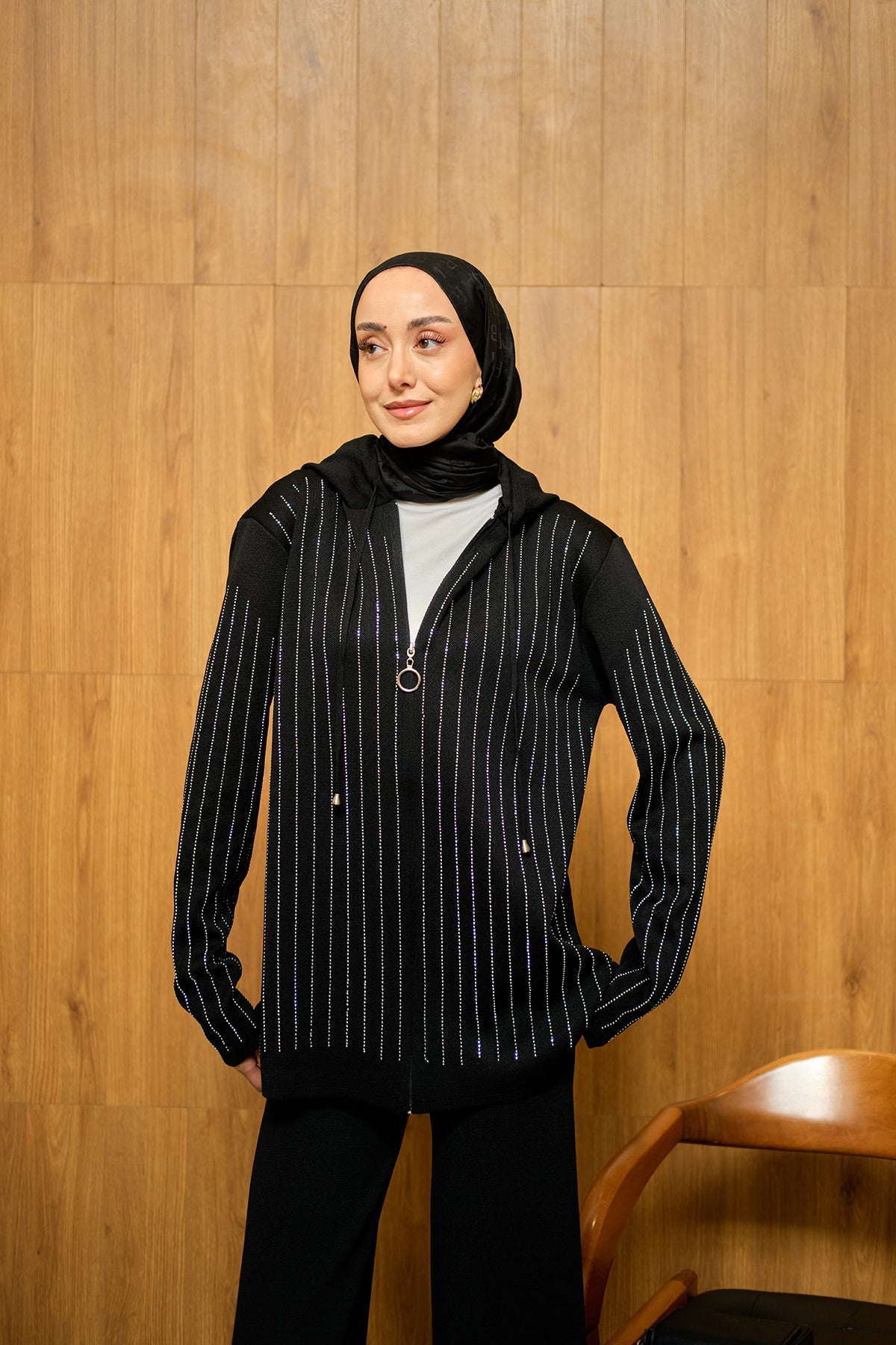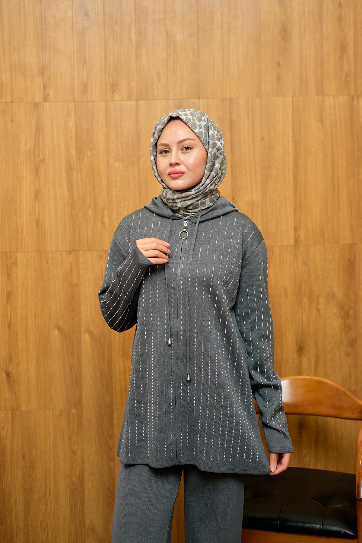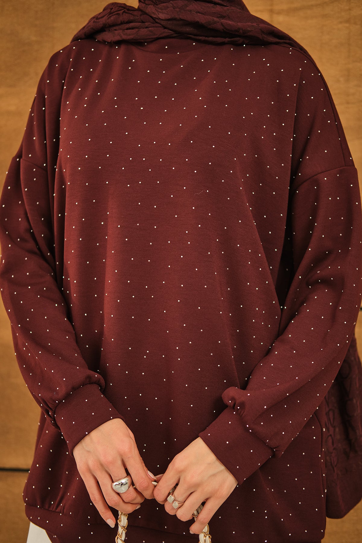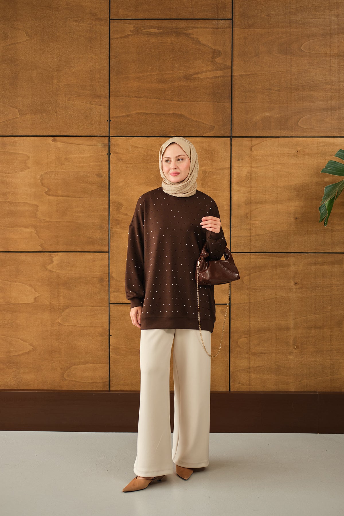 Taşlı Çiçek Düğmeli Hırka Kahverengi