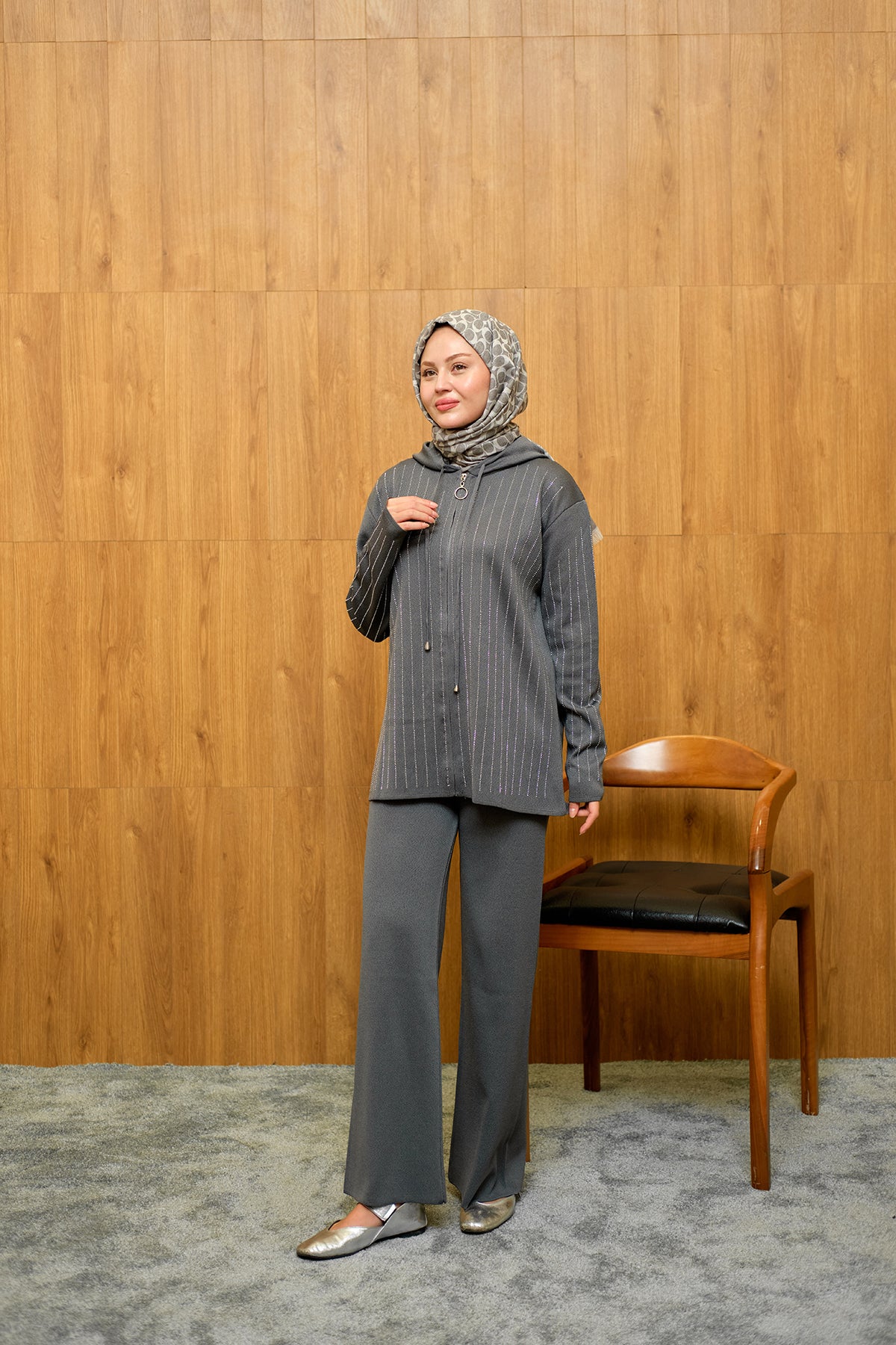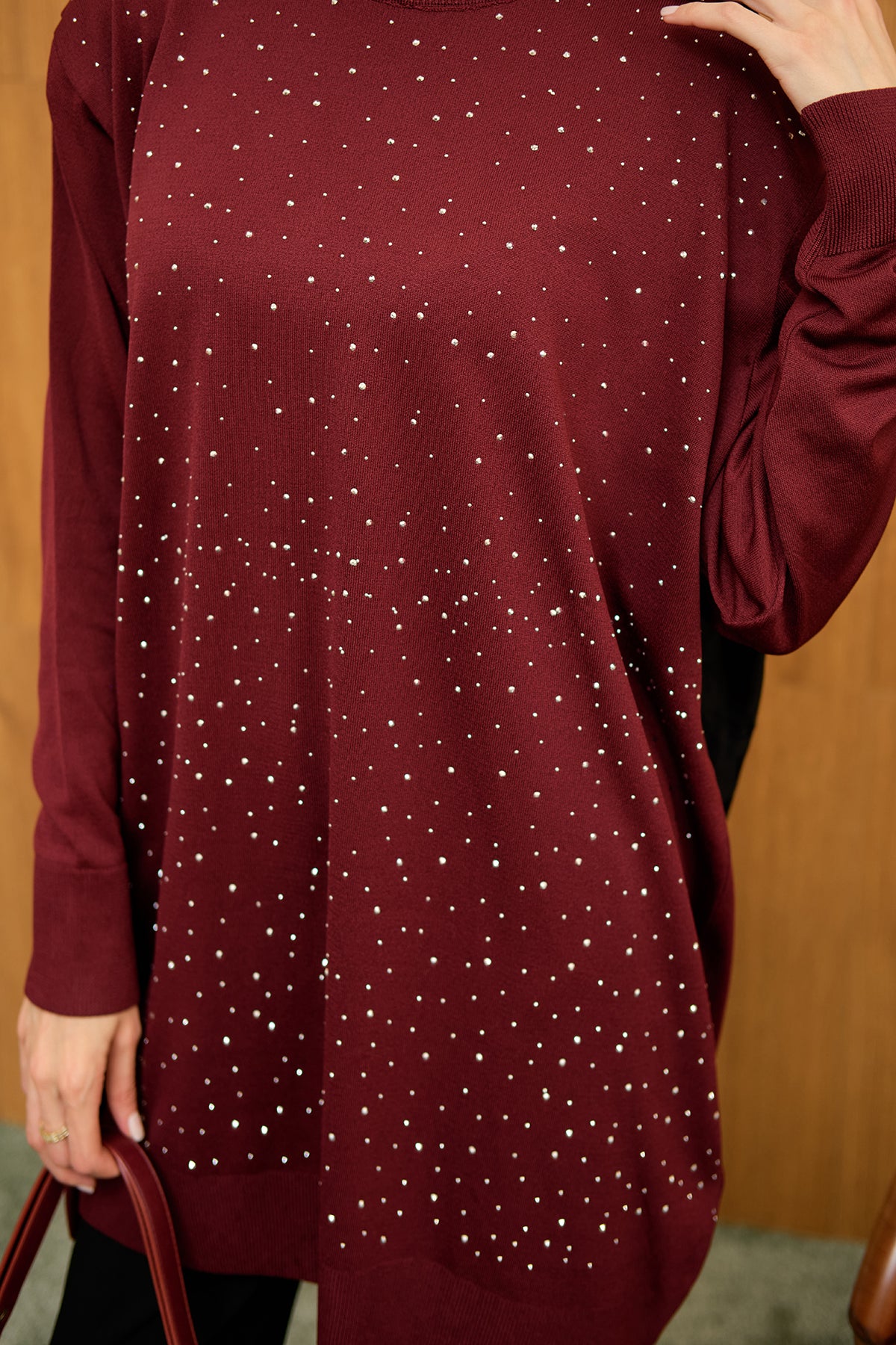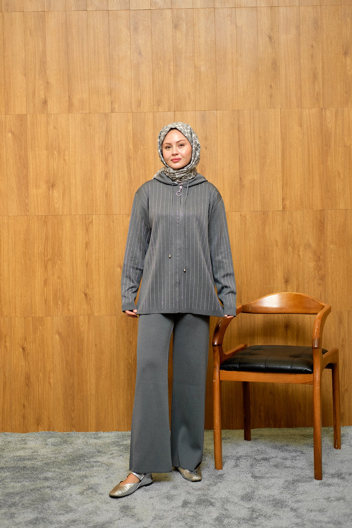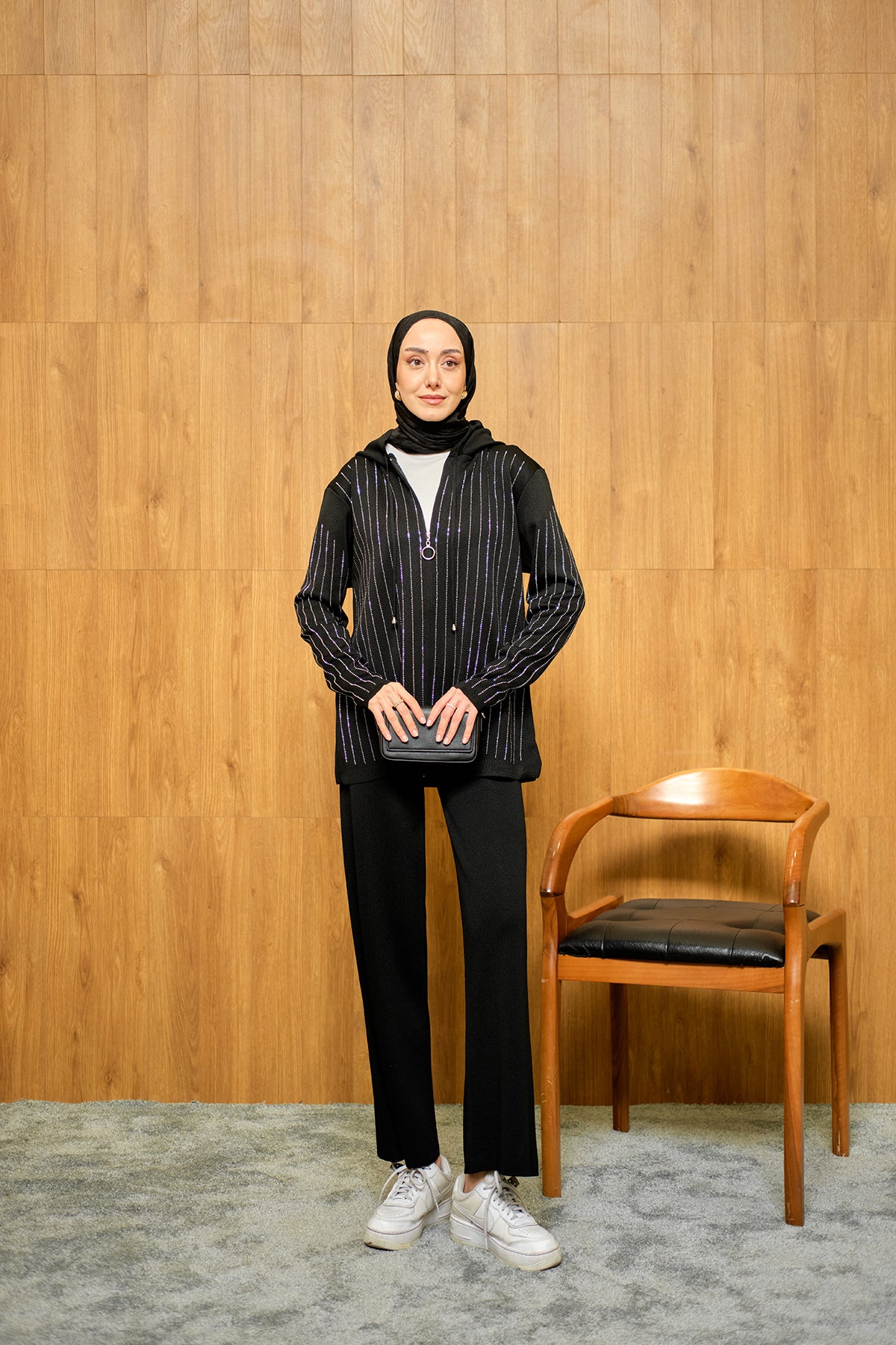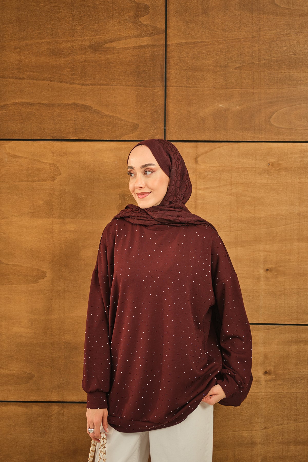 Taşlı Çiçek Düğmeli Hırka Kahverengi