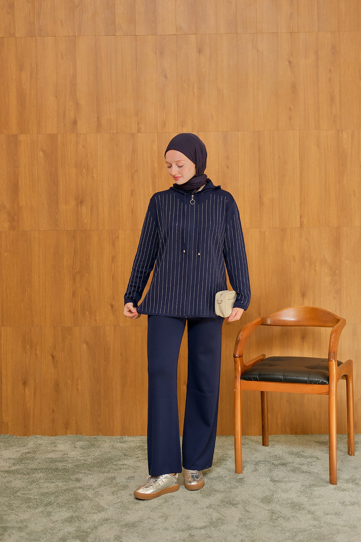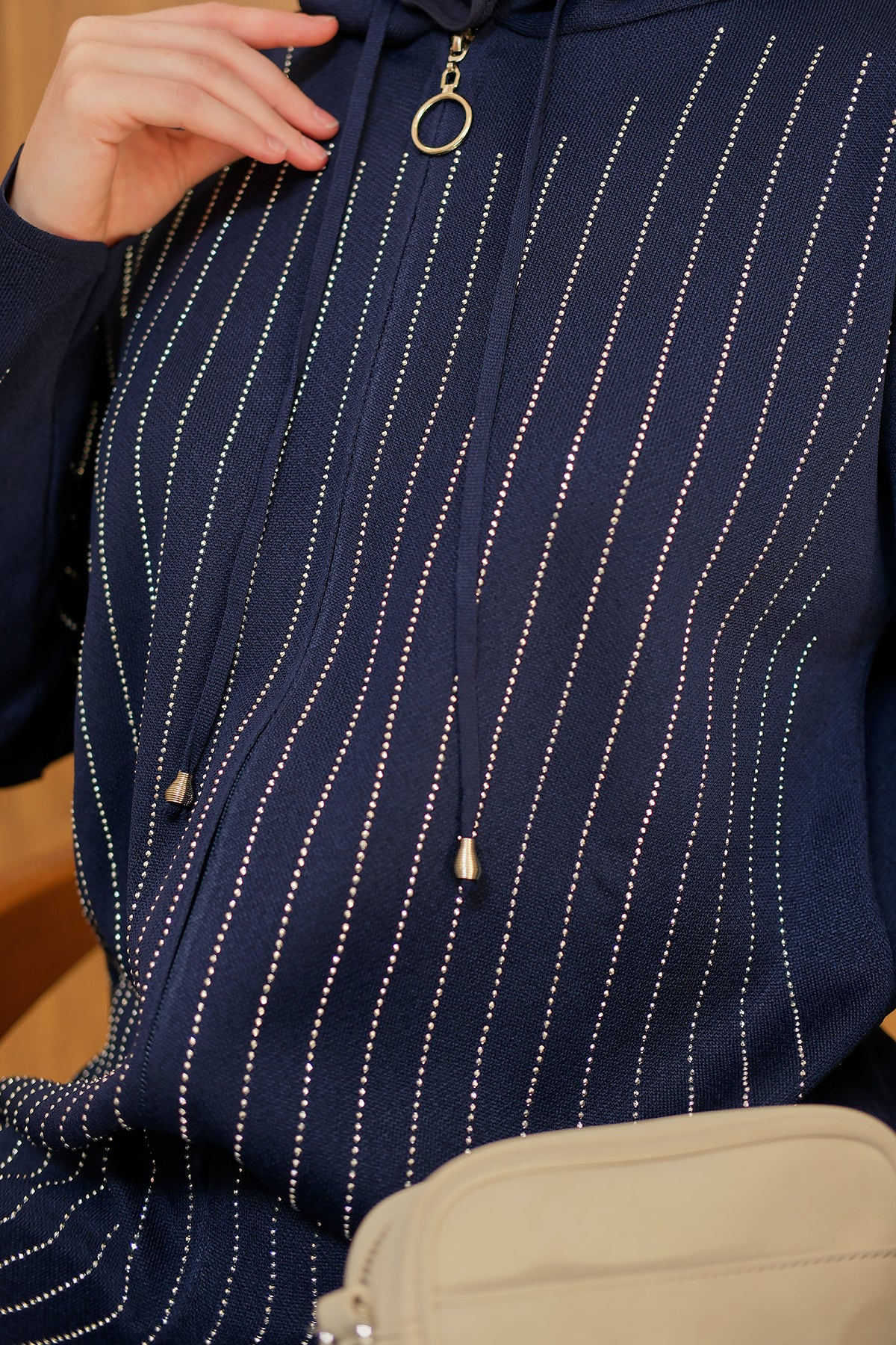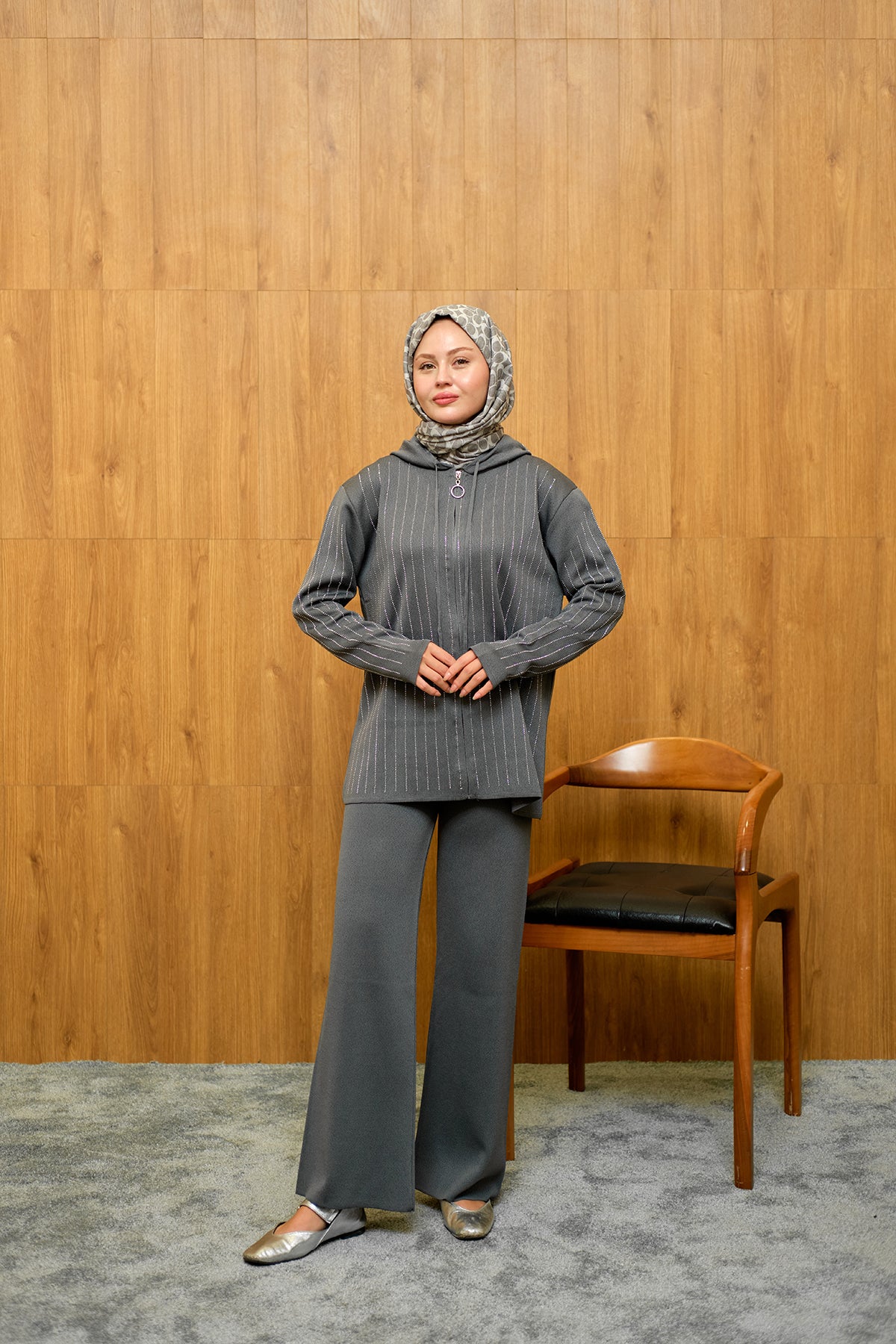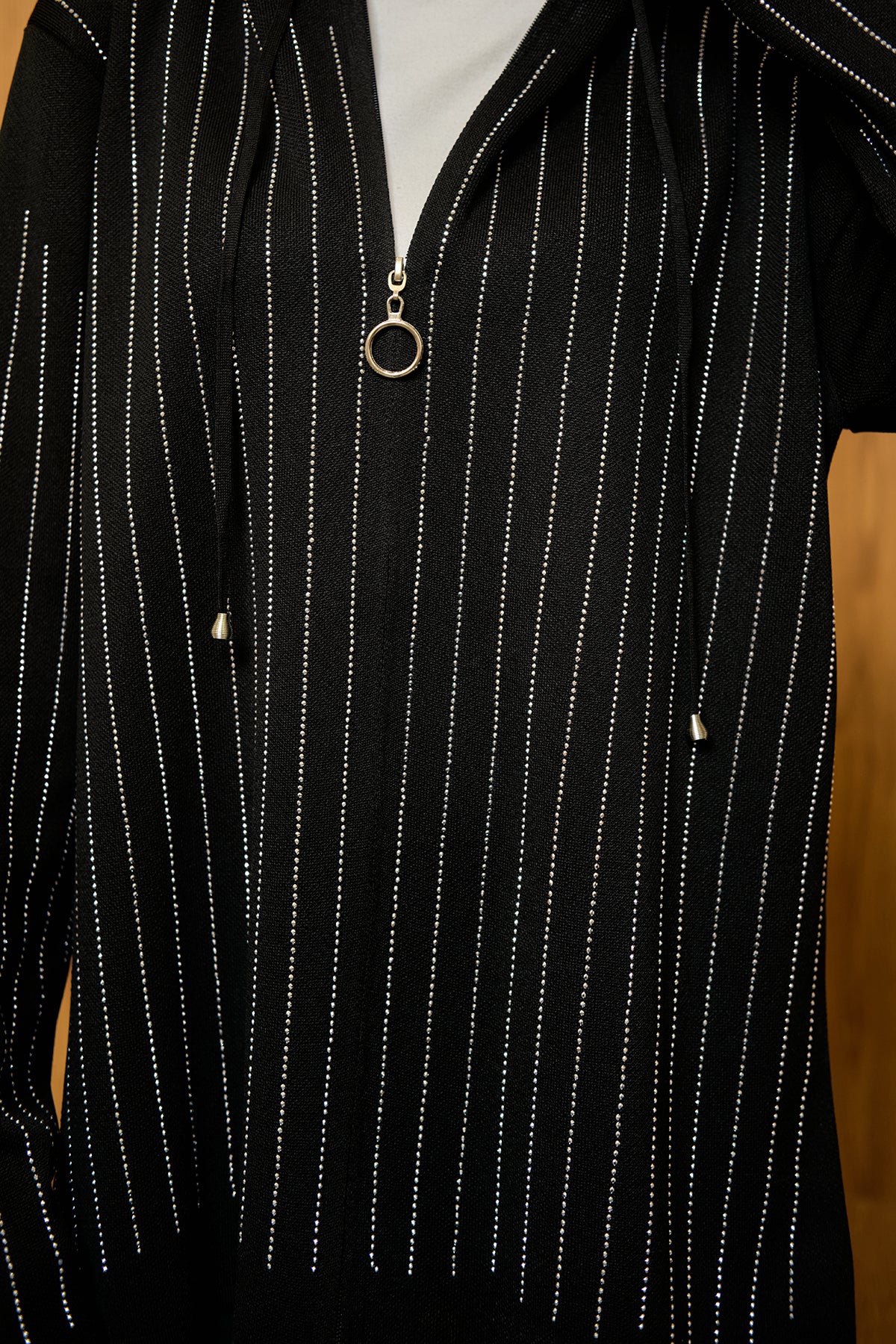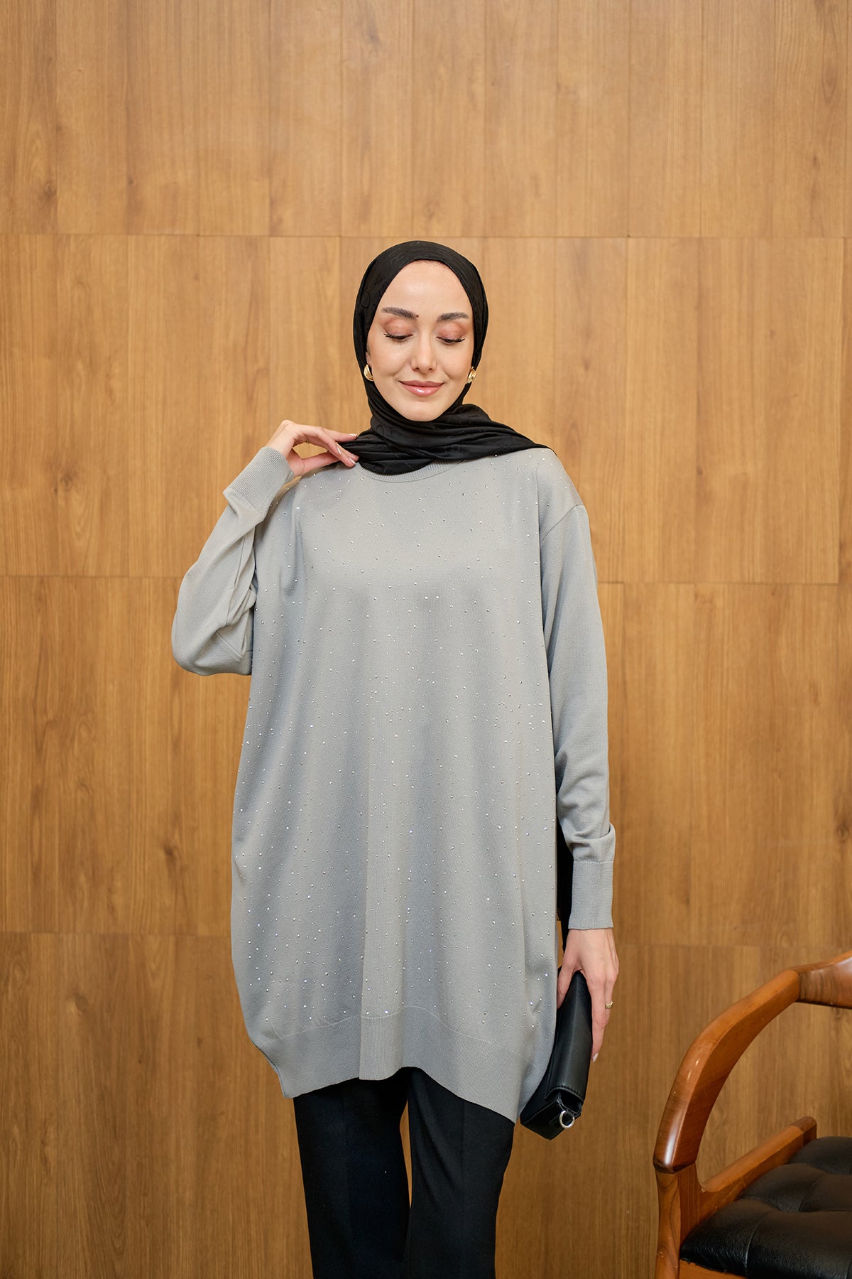 Taşlı Çiçek Düğmeli Hırka Kahverengi
