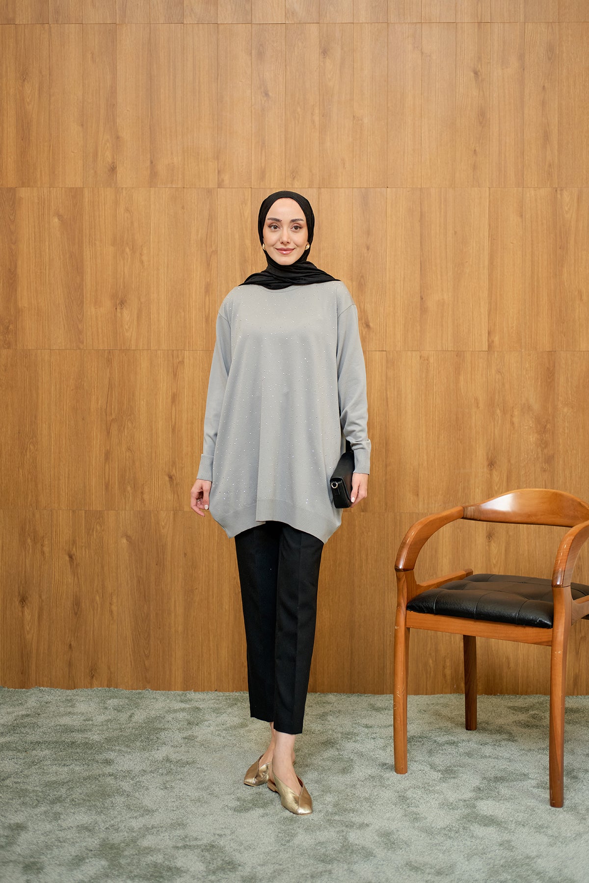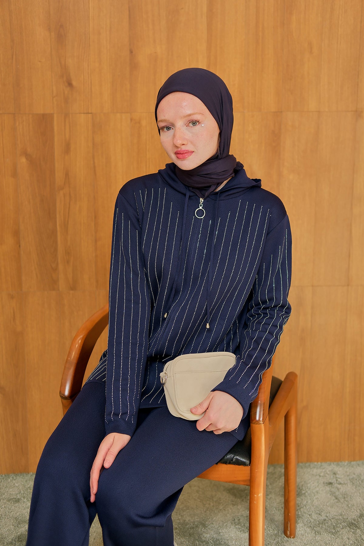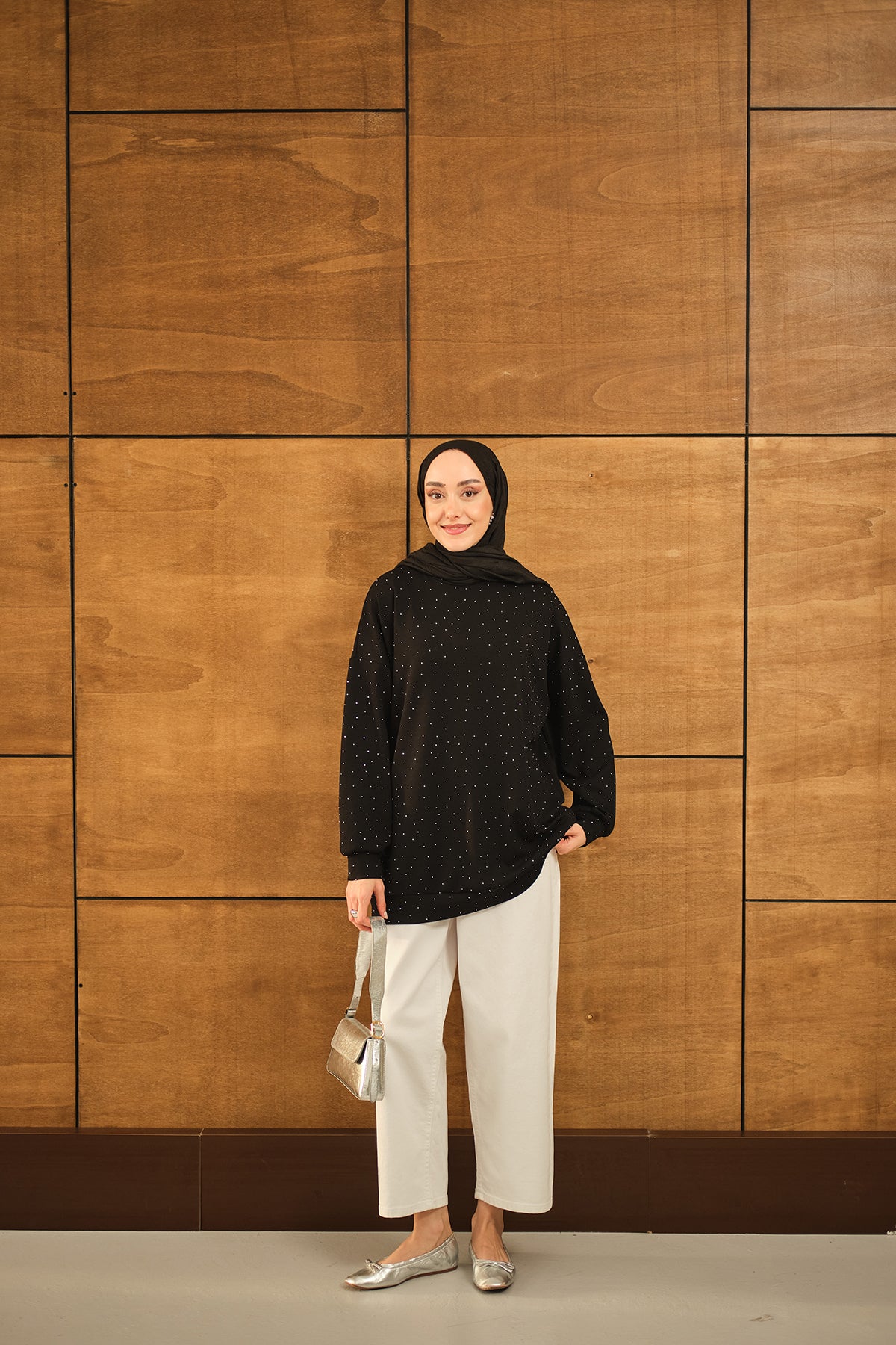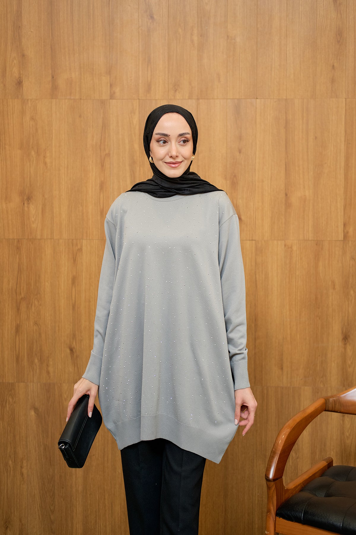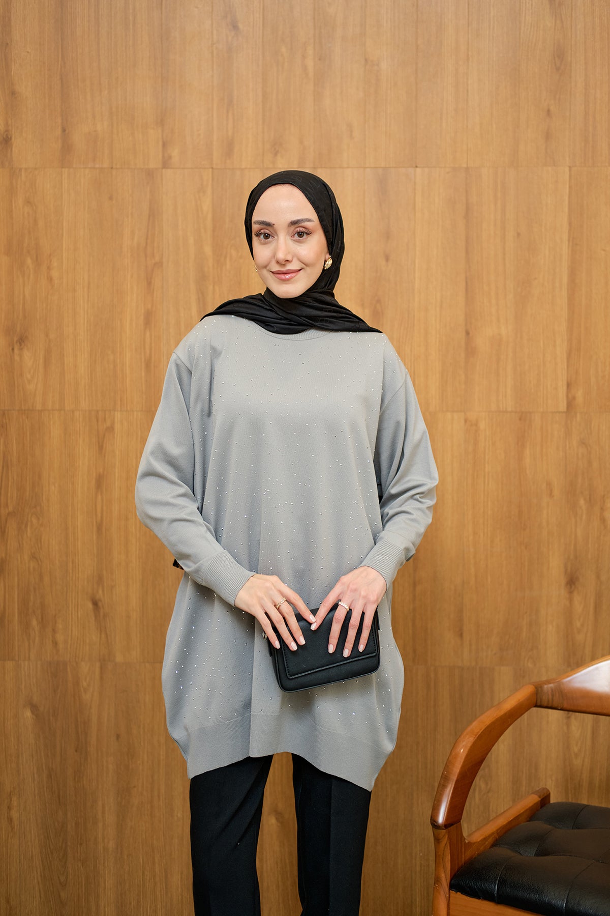 Taşlı Çiçek Düğmeli Hırka Kahverengi