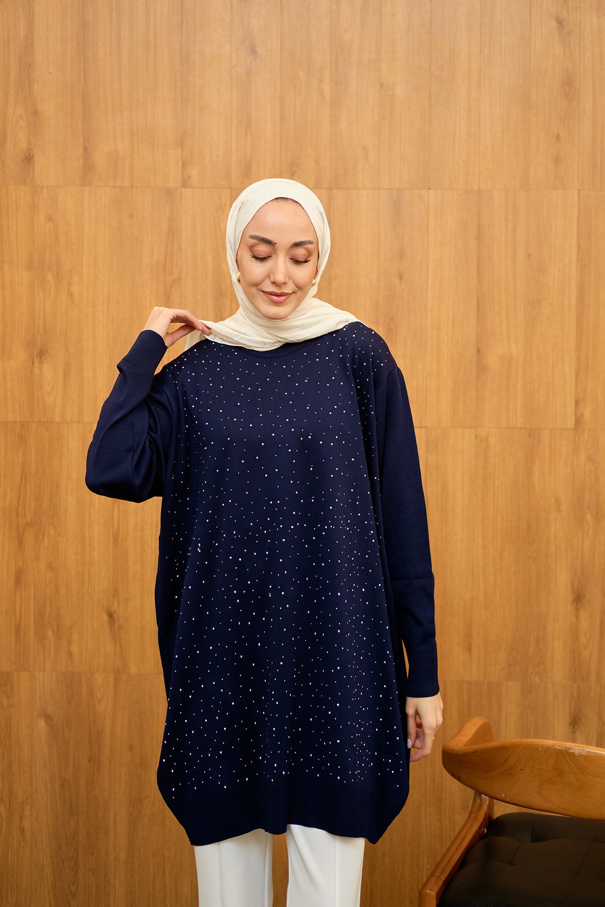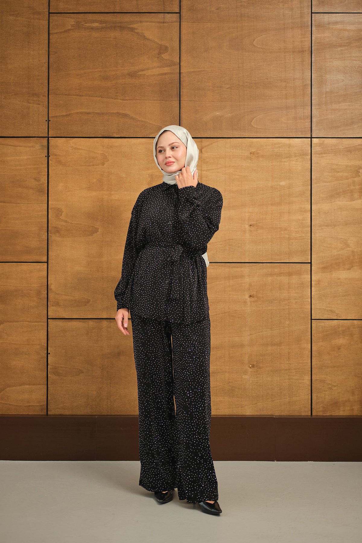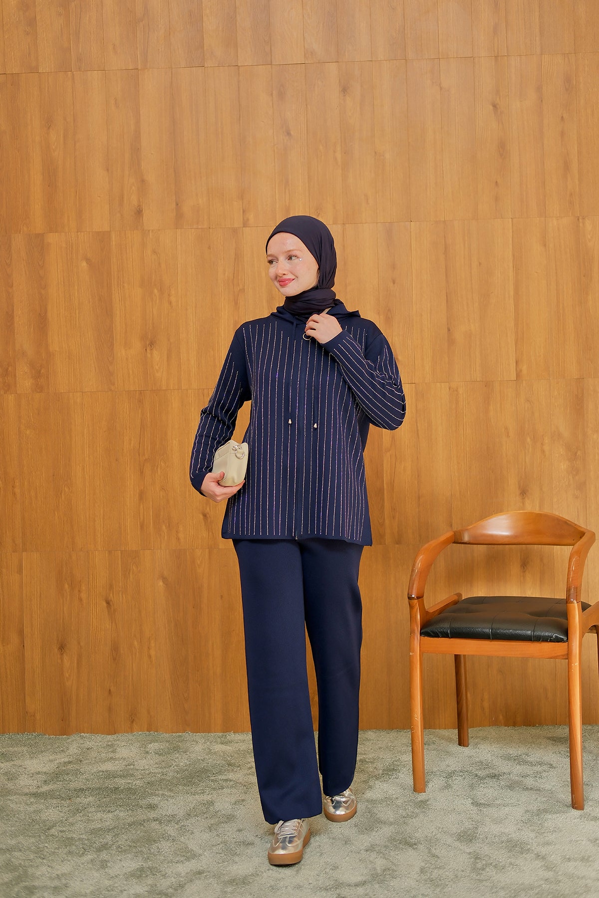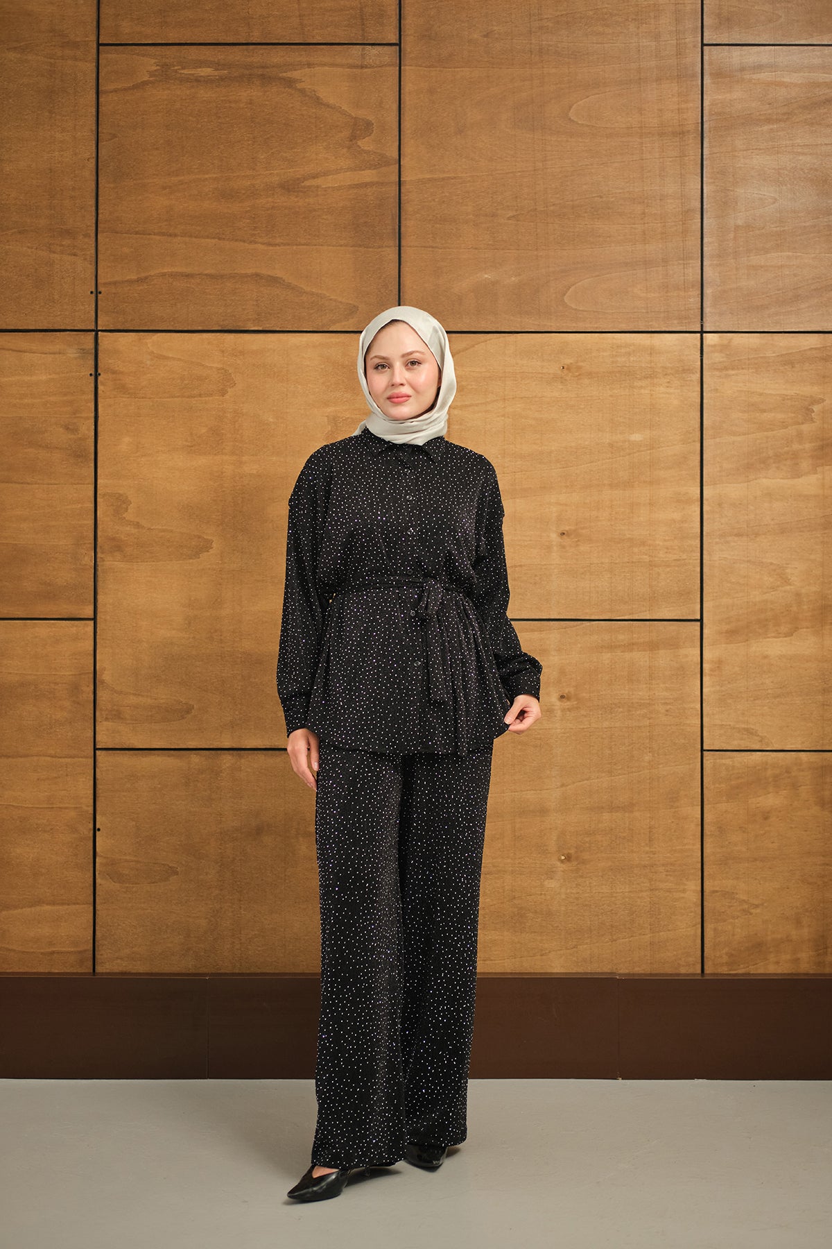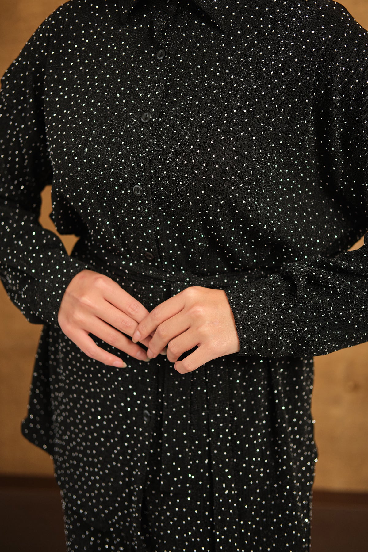 Taşlı Çiçek Düğmeli Hırka Kahverengi