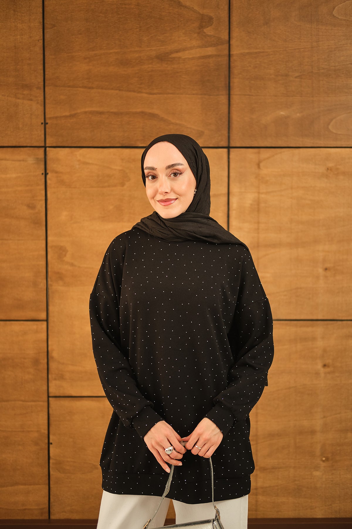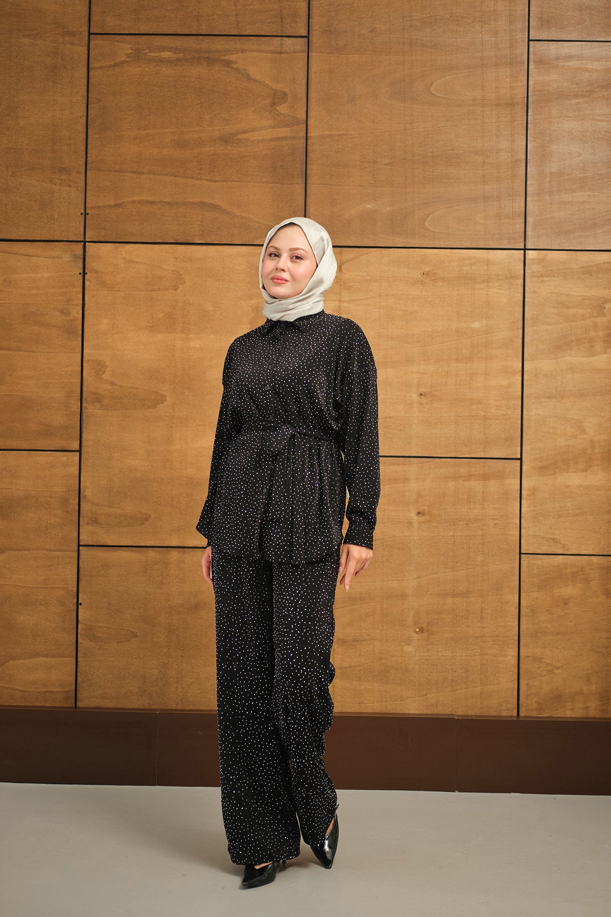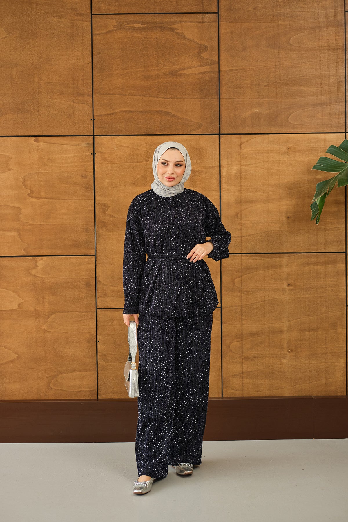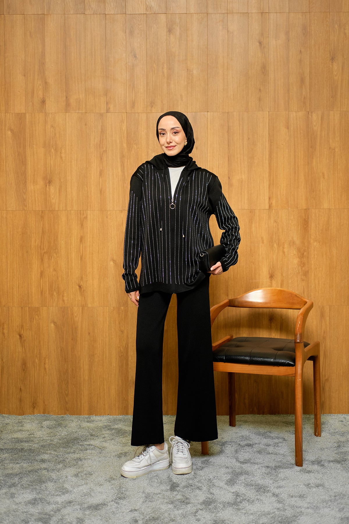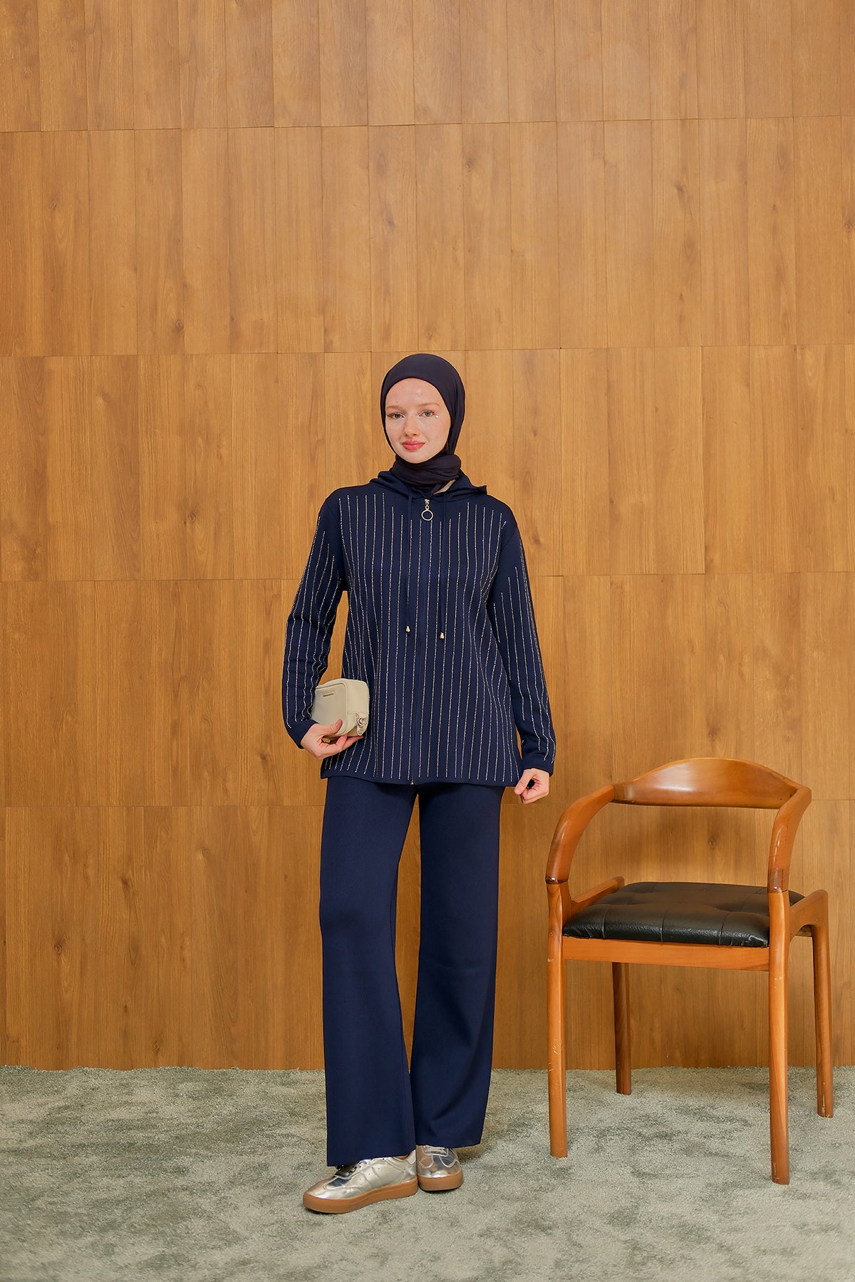 Taşlı Çiçek Düğmeli Hırka Kahverengi