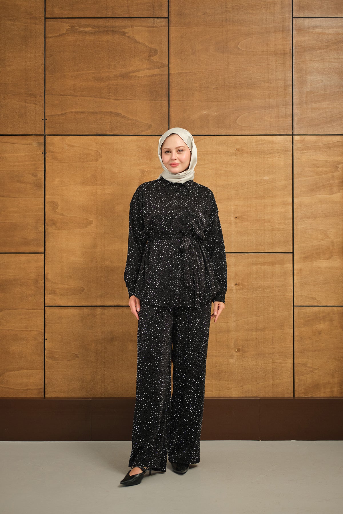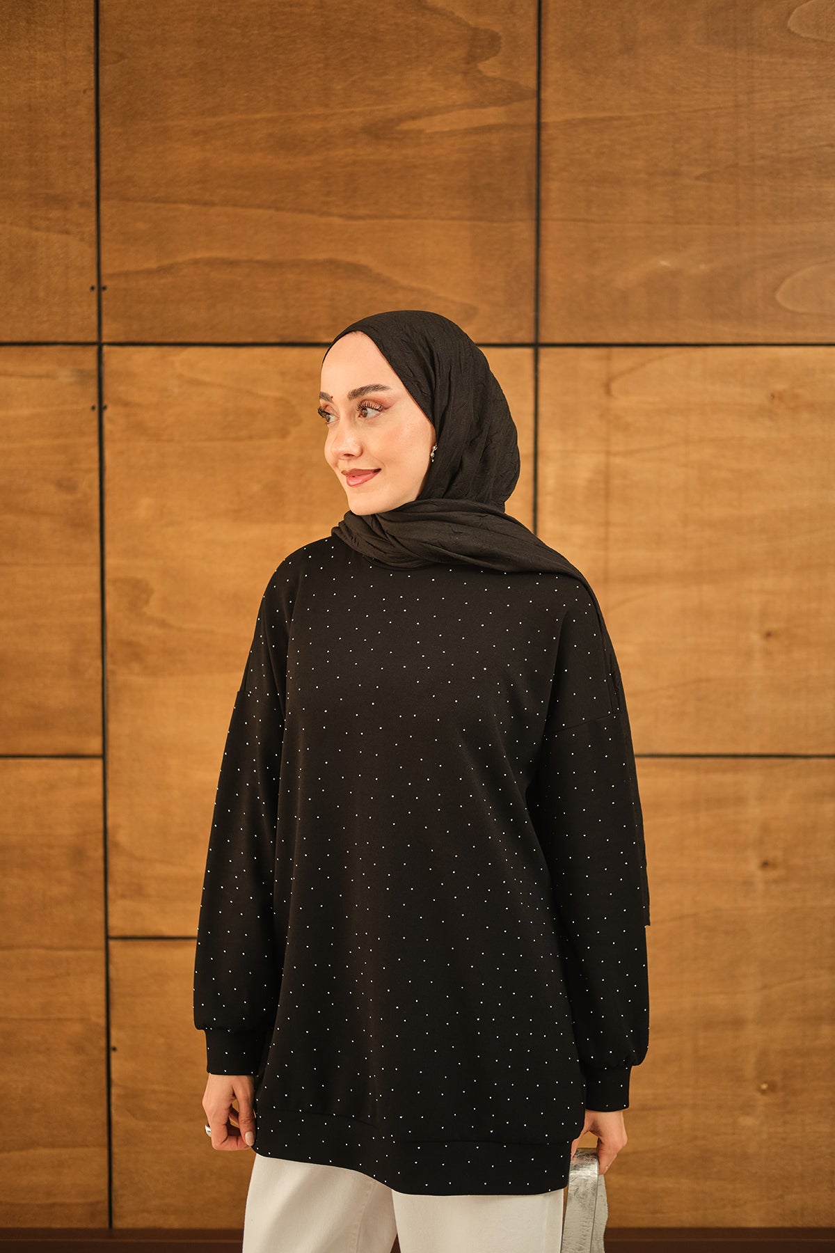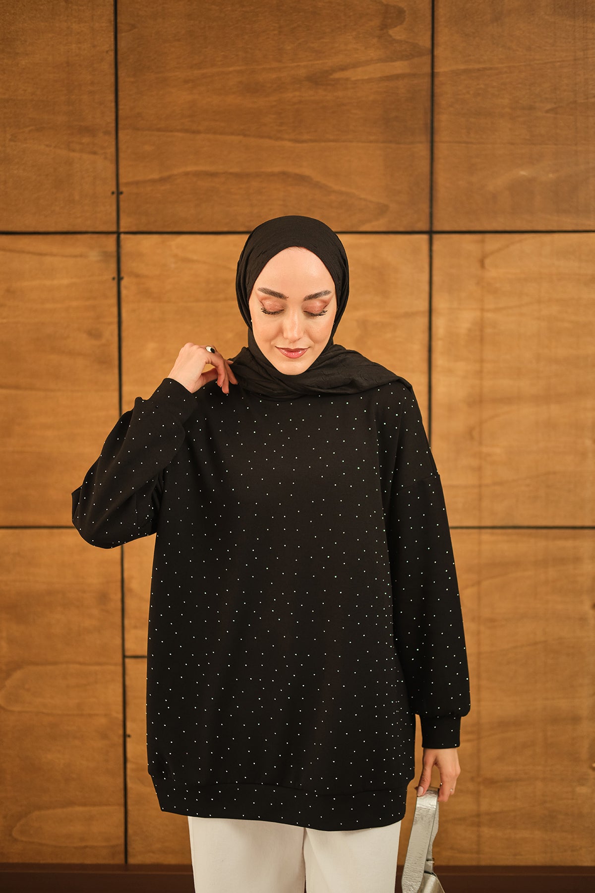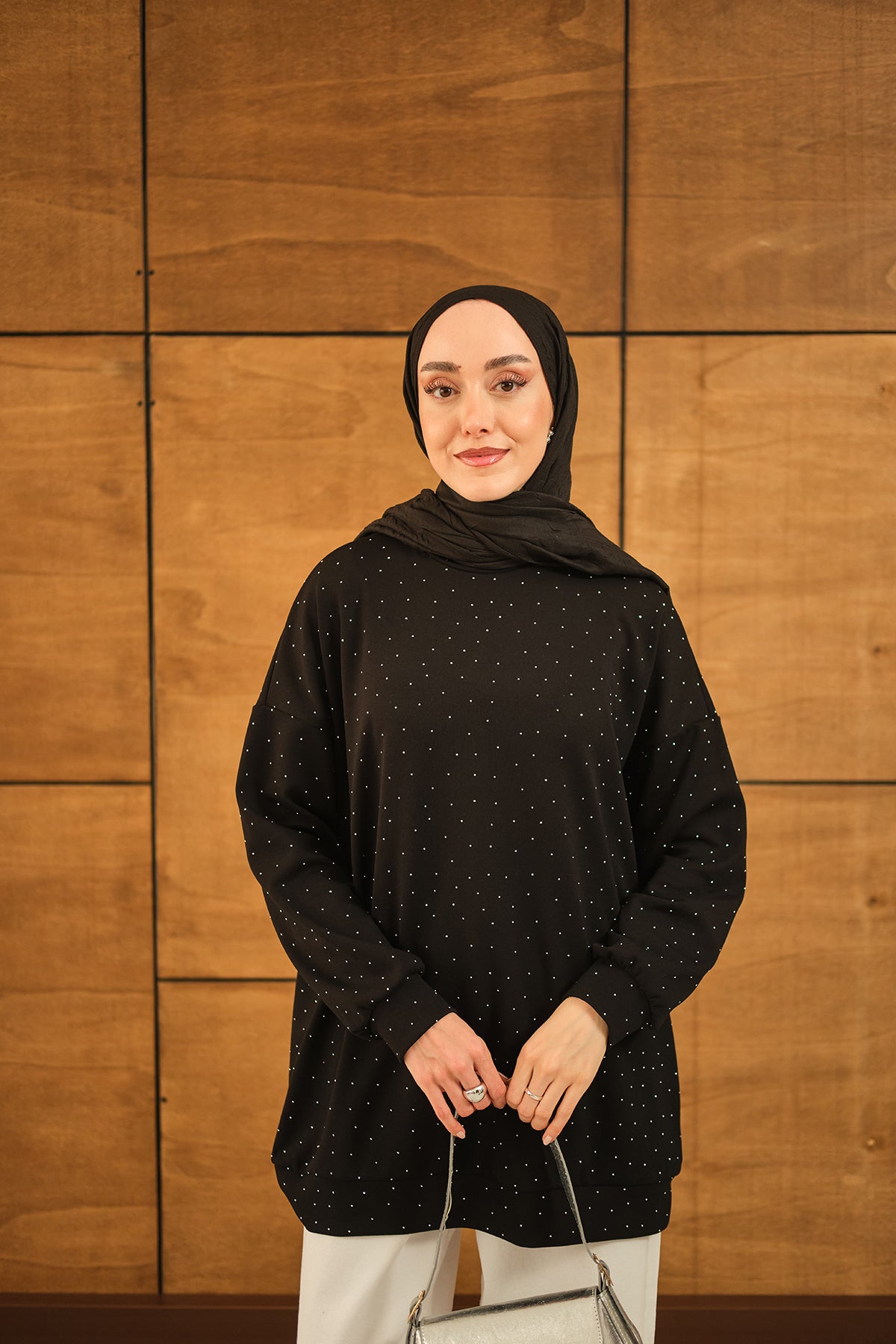 Taşlı Çiçek Düğmeli Hırka Kahverengi