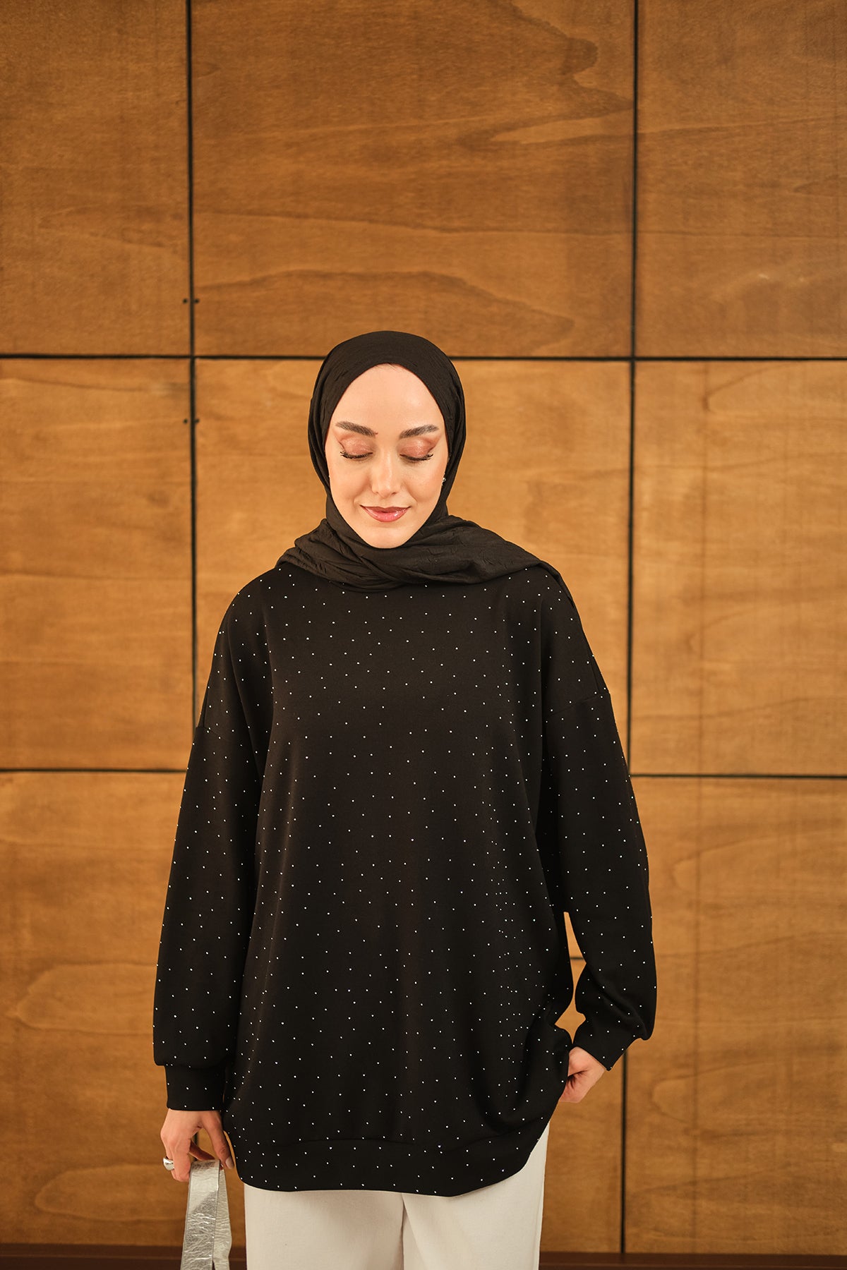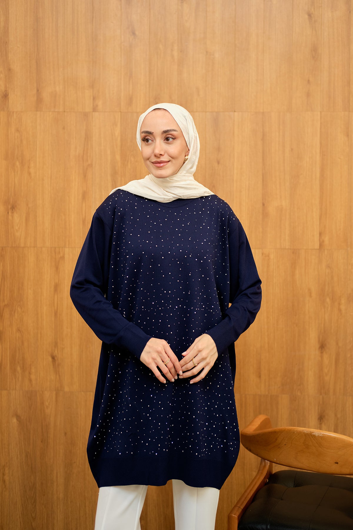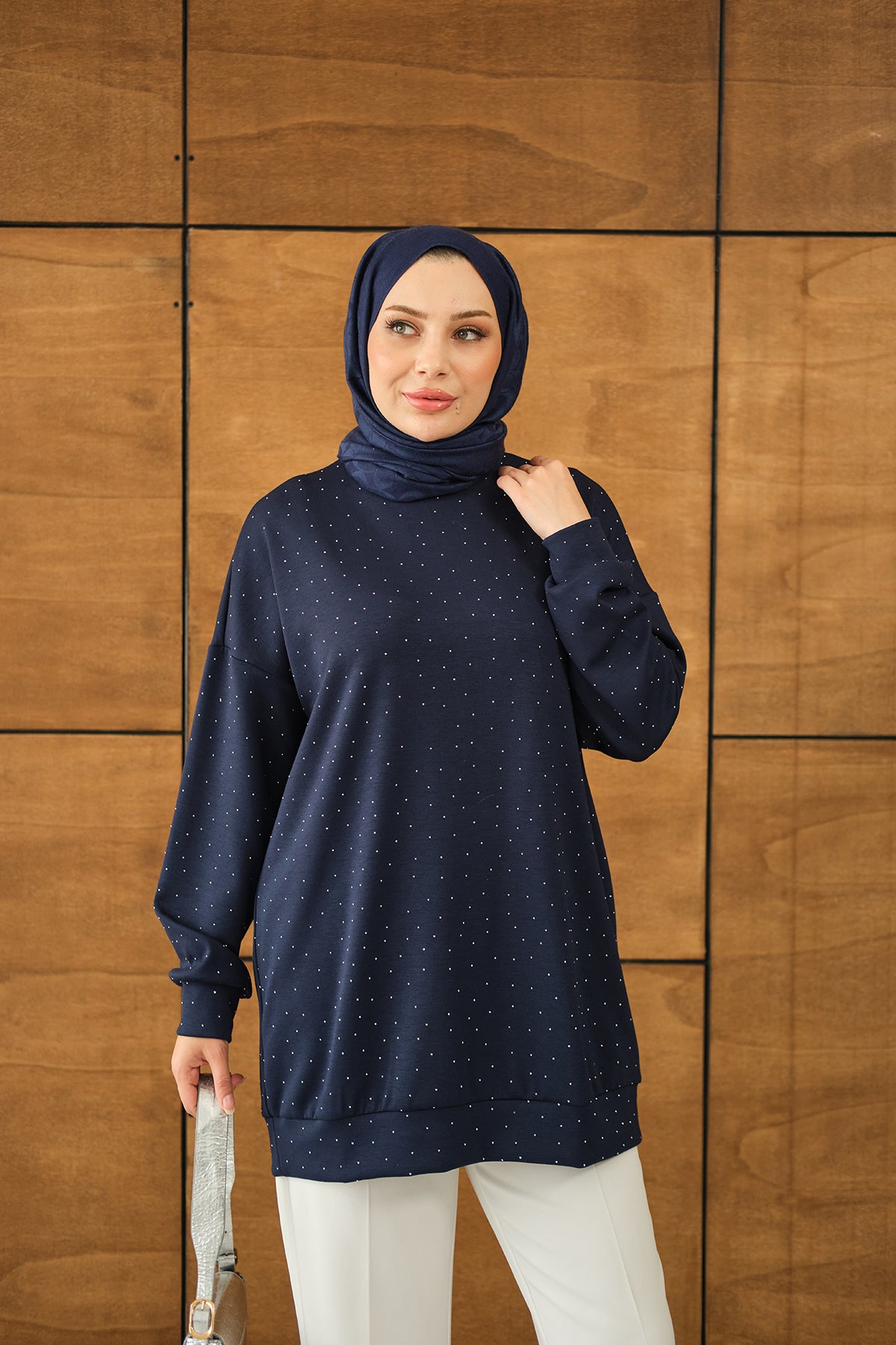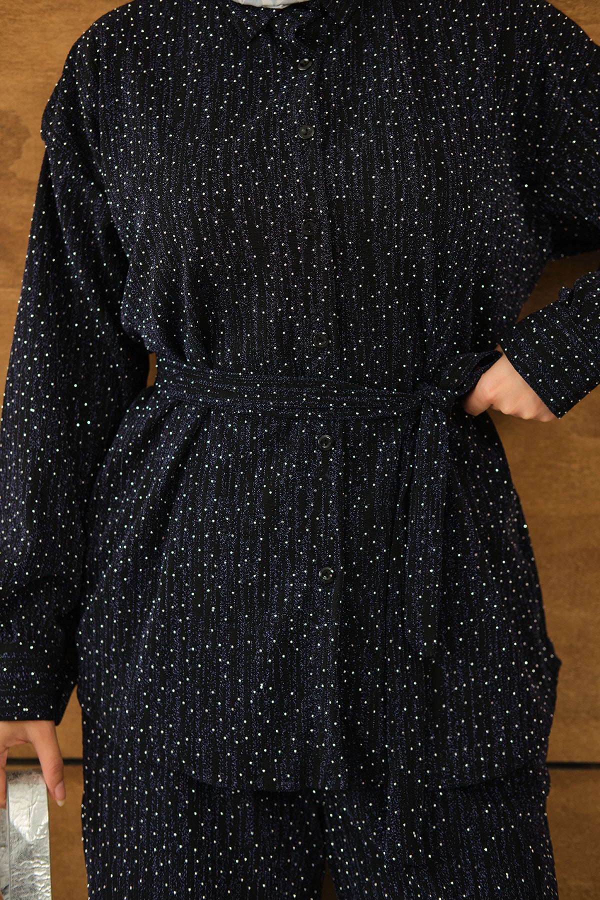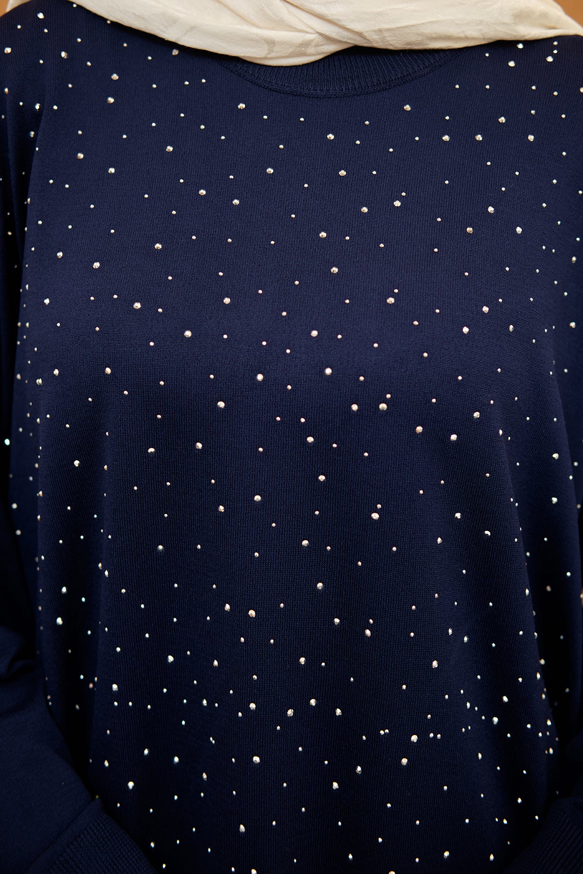 Taşlı Çiçek Düğmeli Hırka Kahverengi