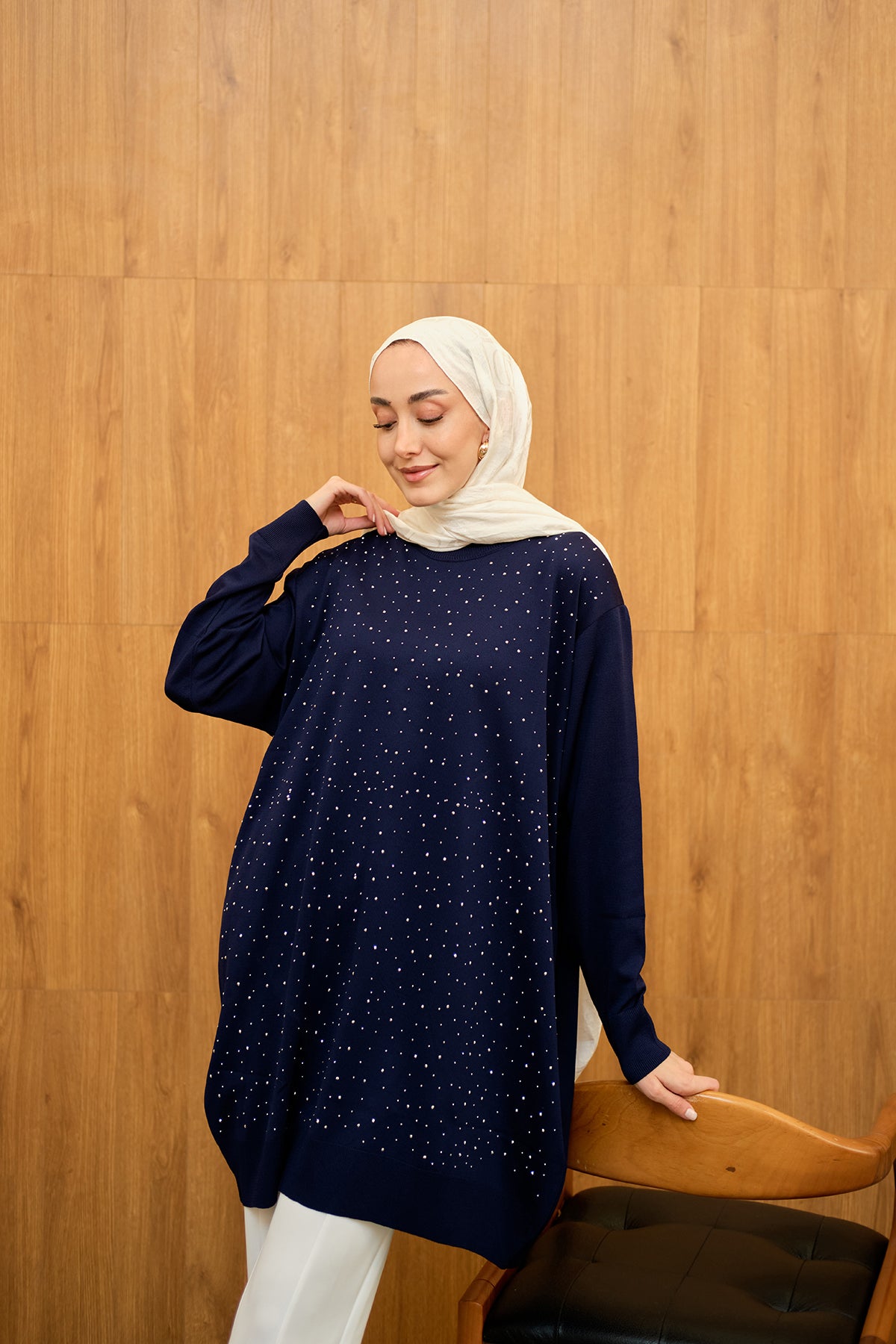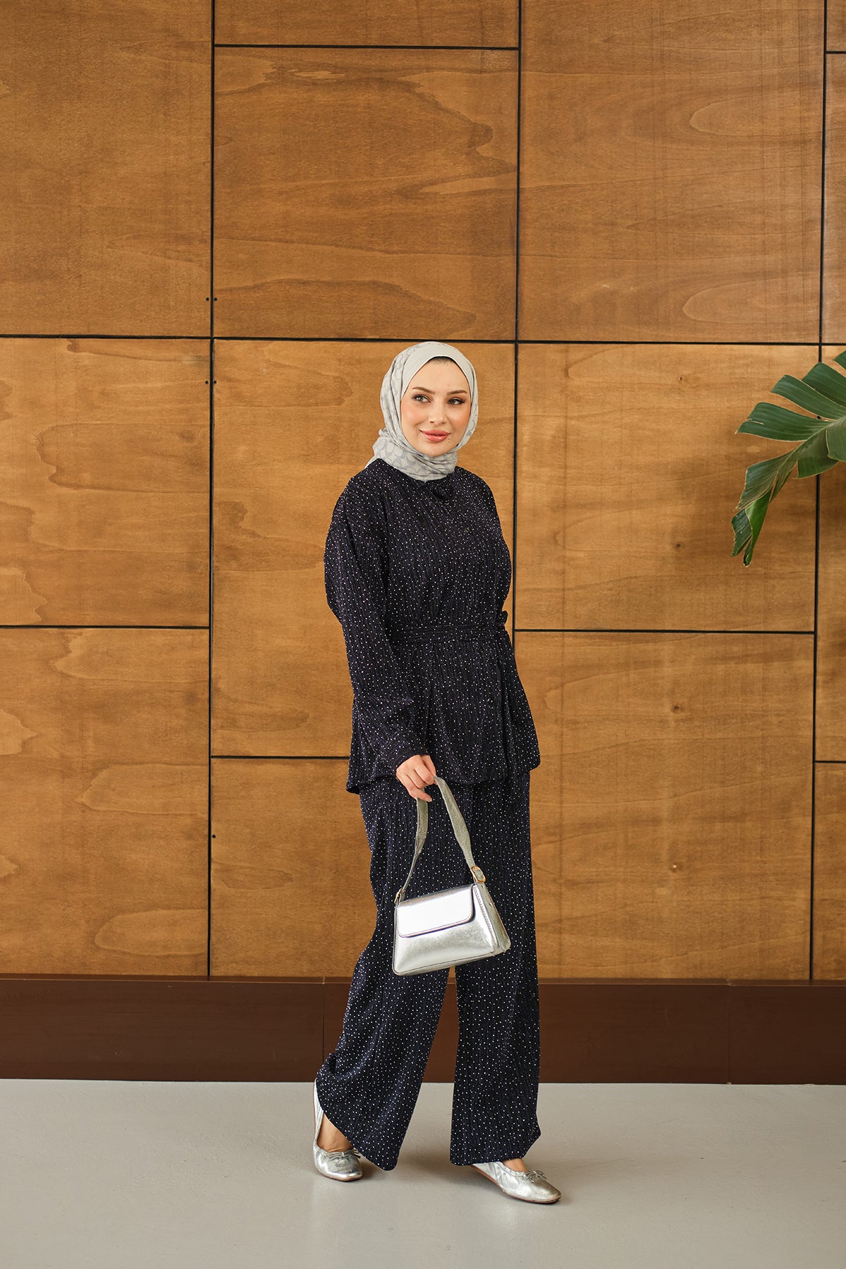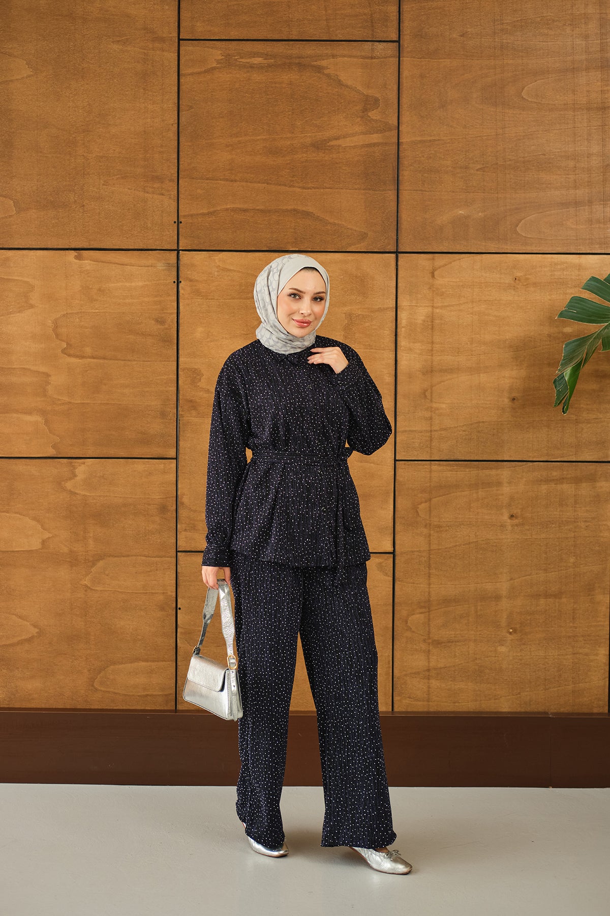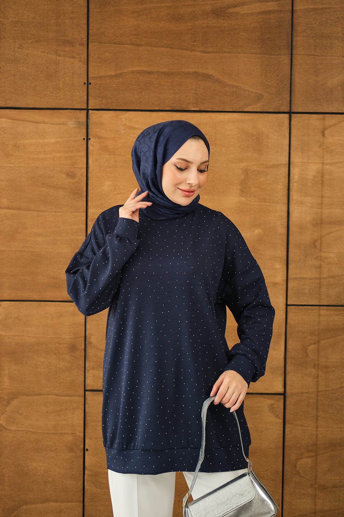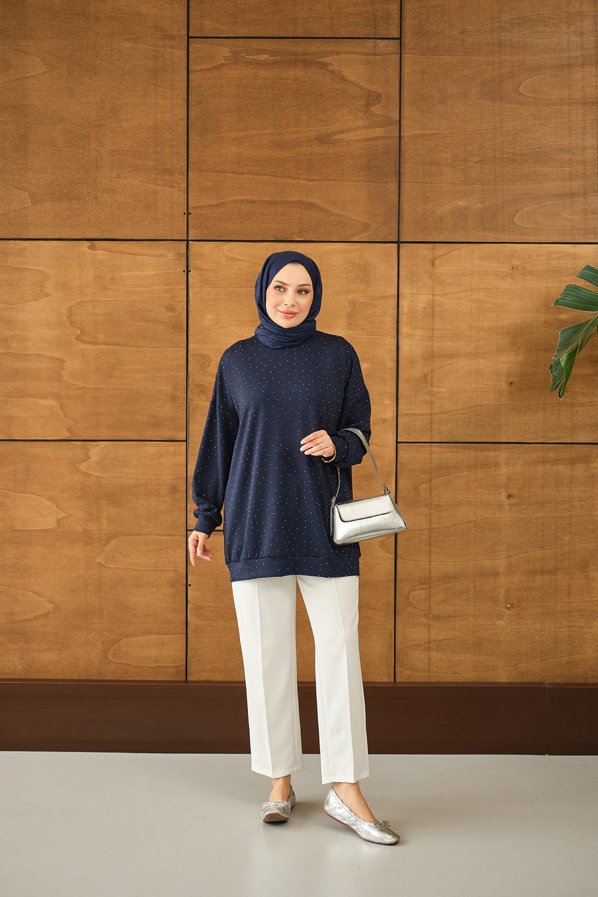Taşlı Çiçek Düğmeli Hırka Kahverengi