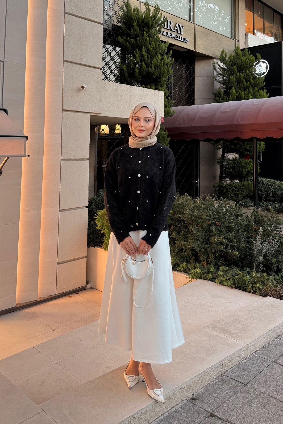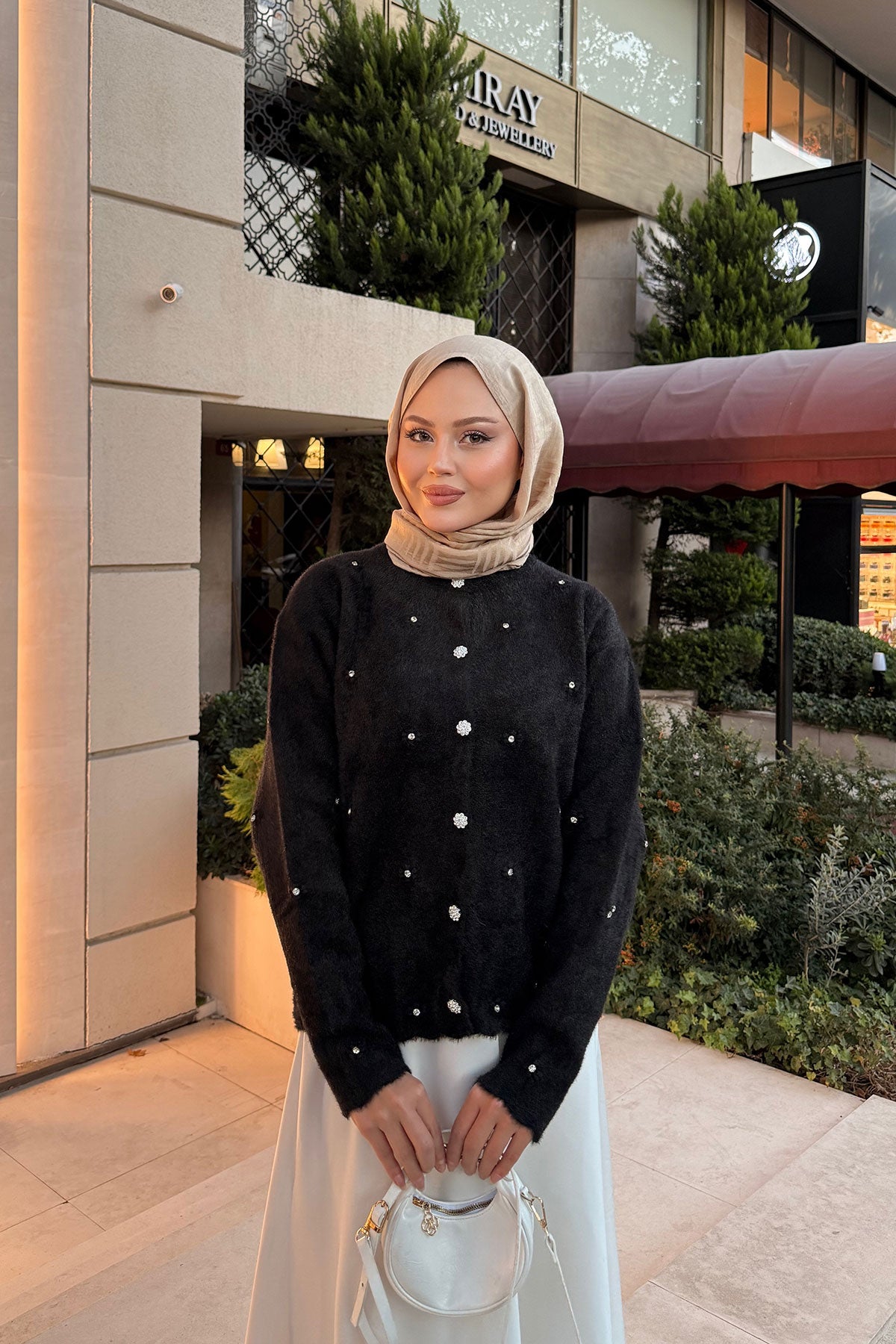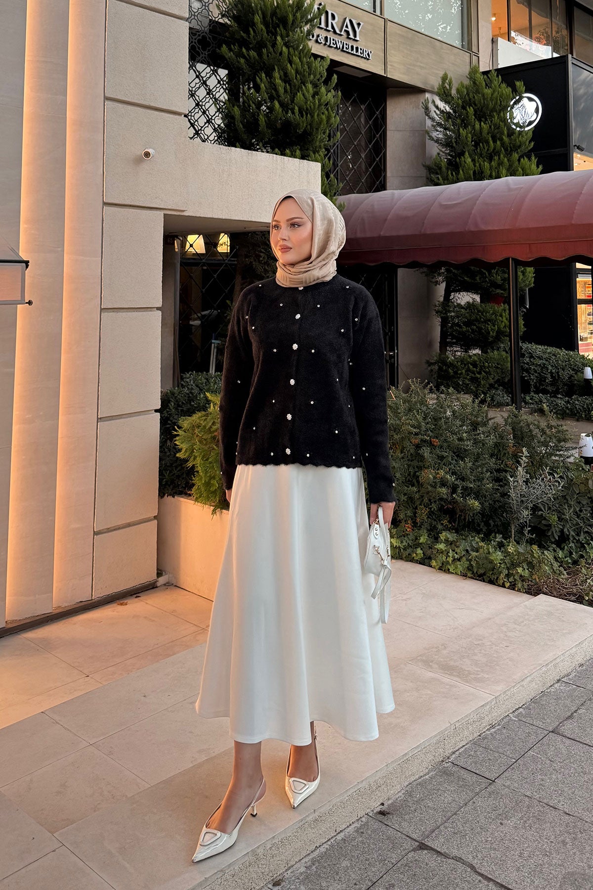 Taşlı Çiçek Düğmeli Hırka Siyah